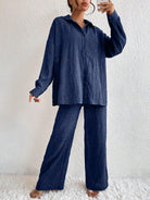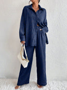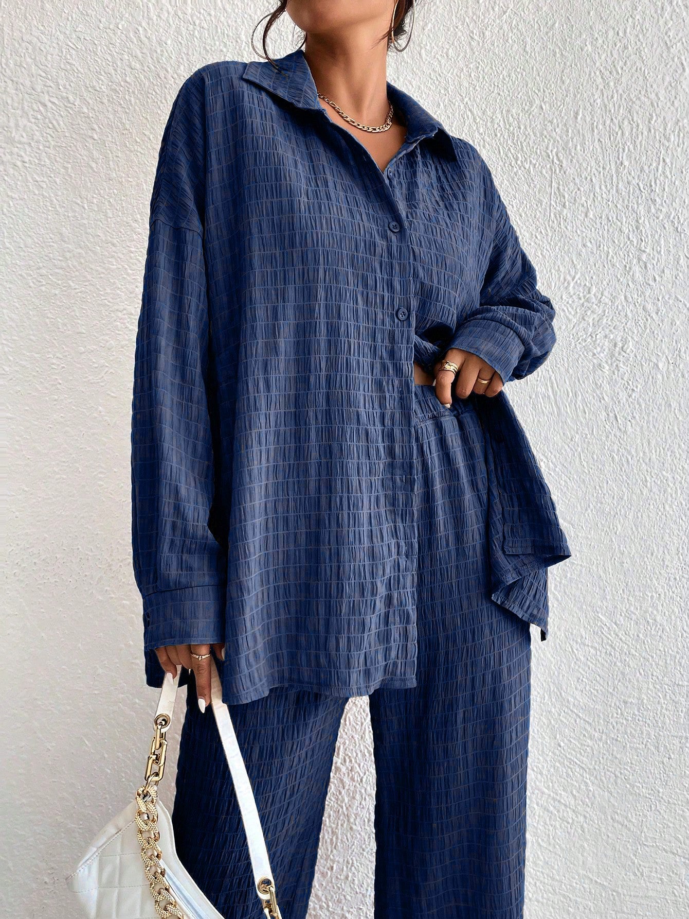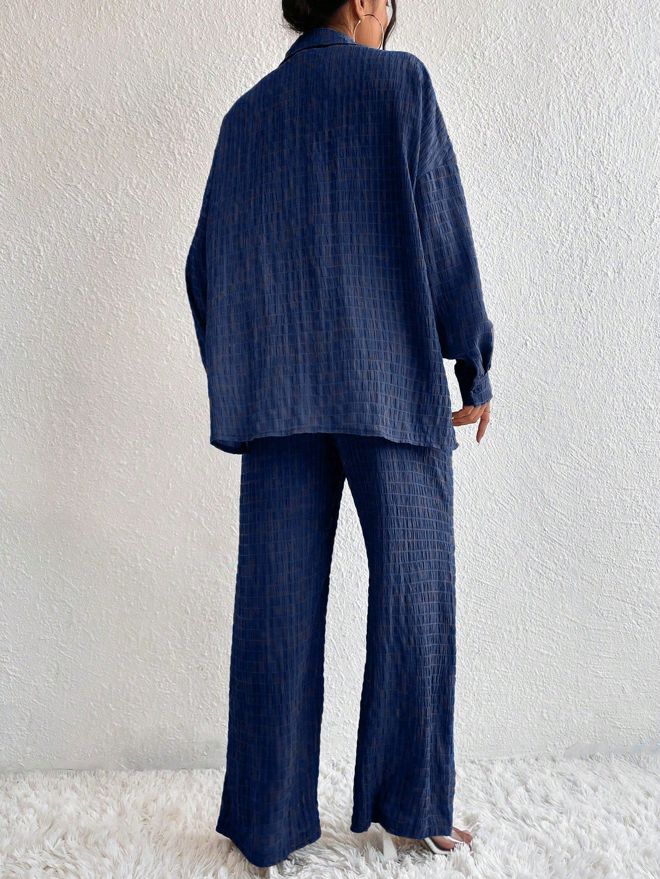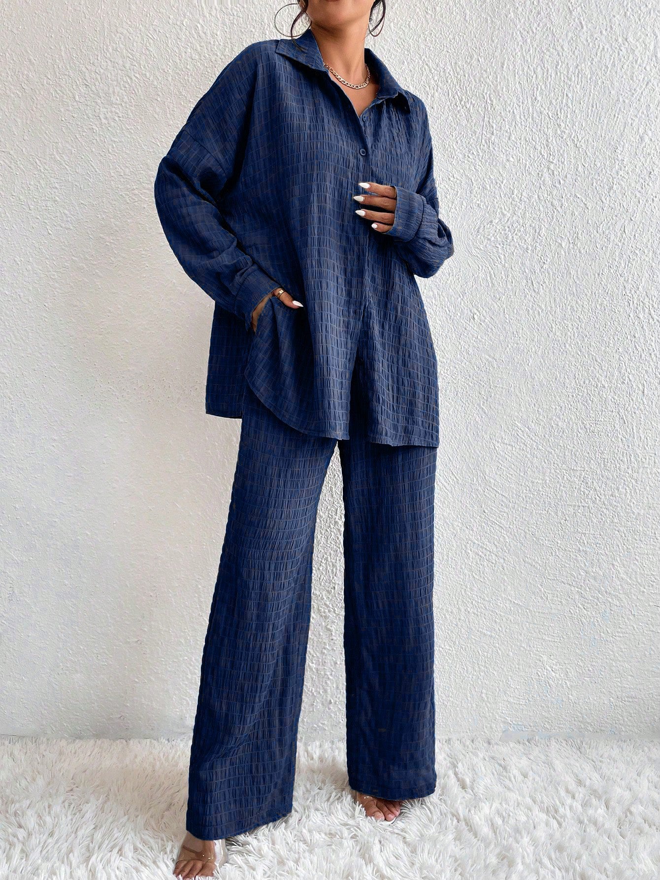 Chiquease Solid Drop Shoulder Shirt & Wide Leg Pants Fall Cloth For Women