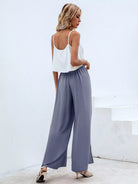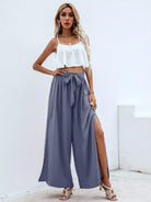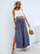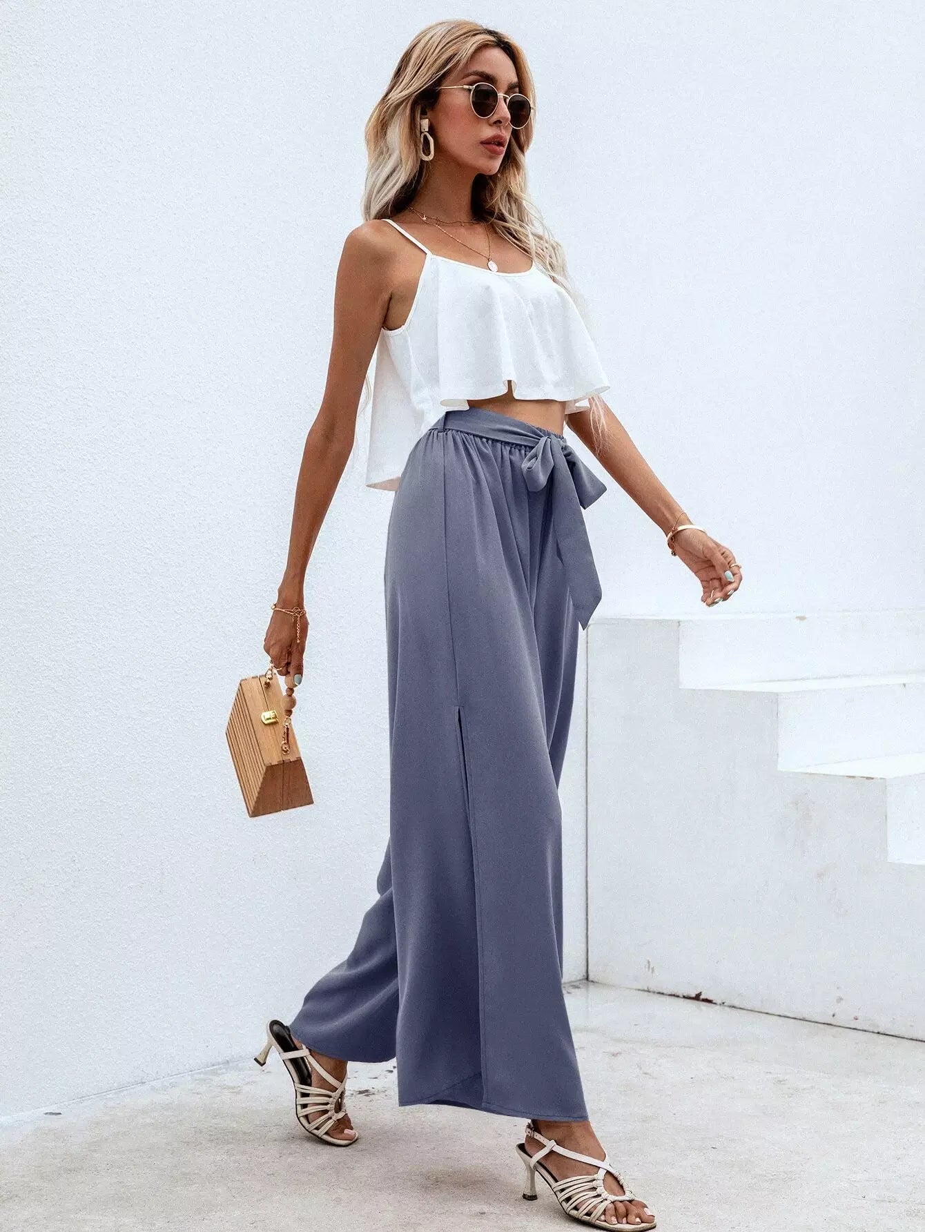 بلوزة قصيرة وسروال فخذ منقسم بدون حزام