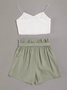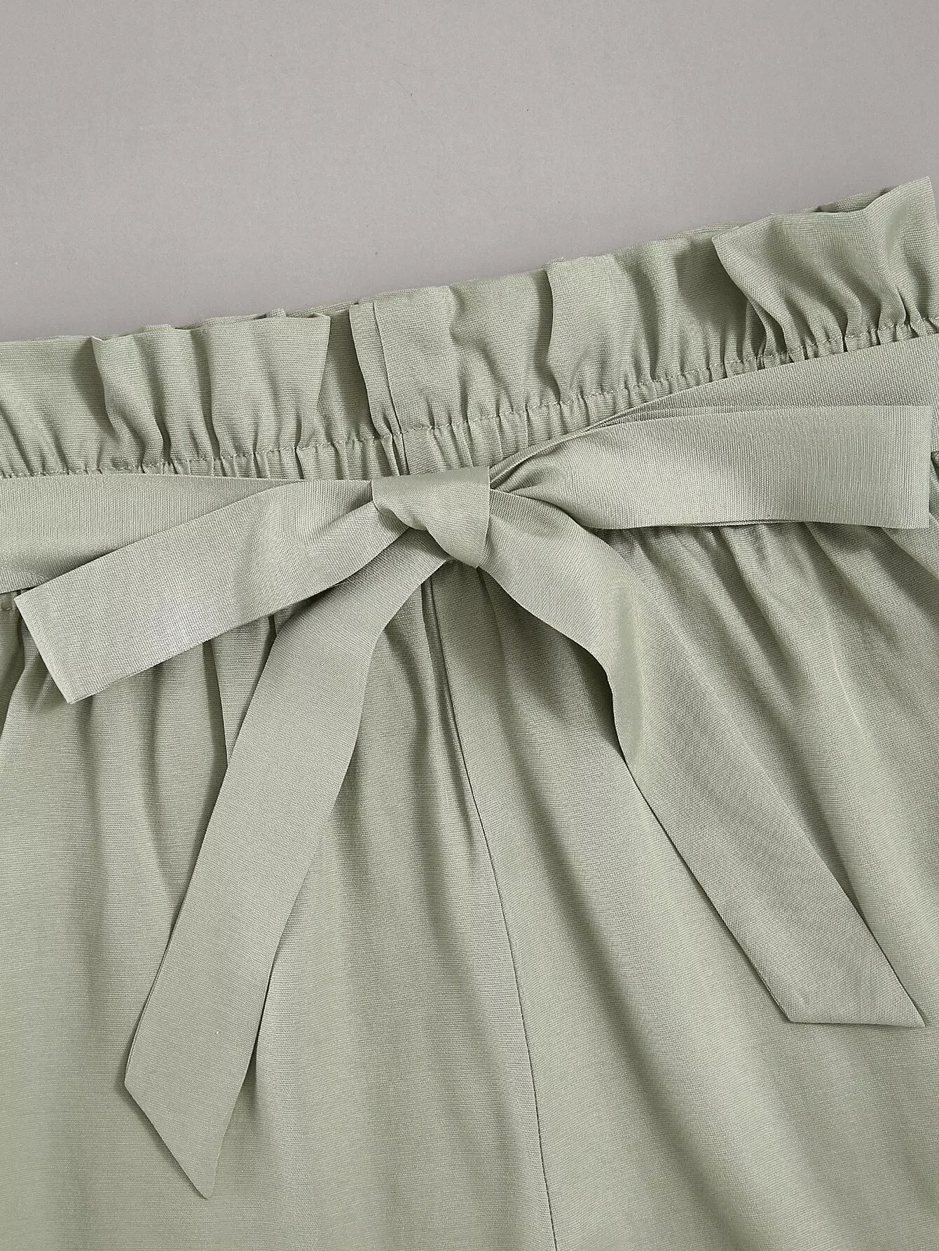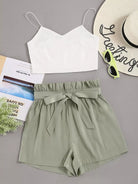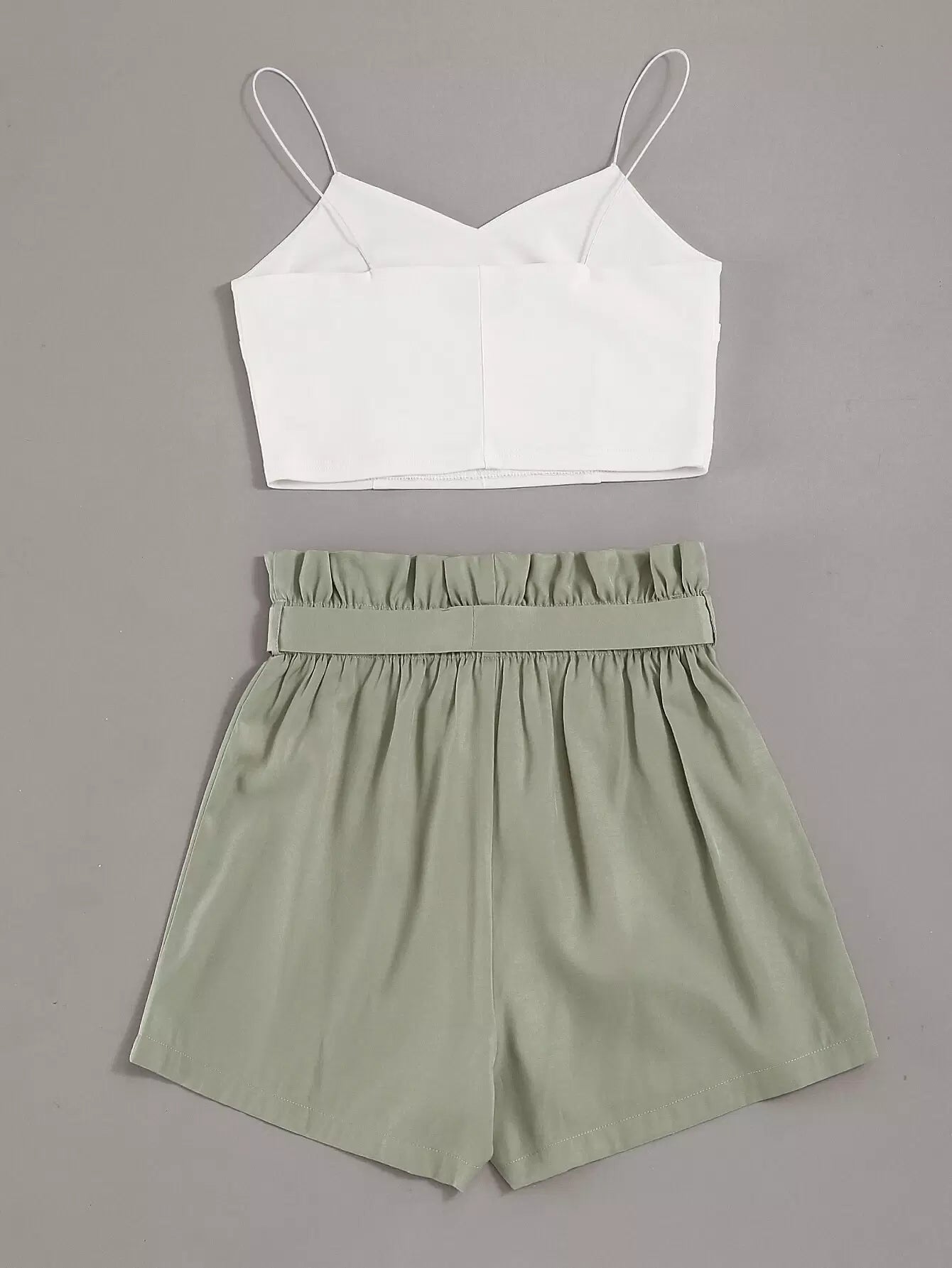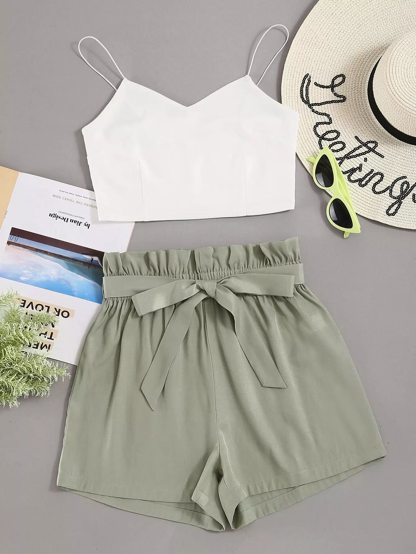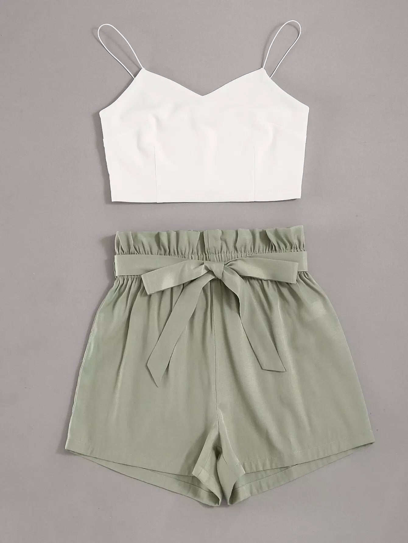 قميص قصير قصير كامي وشورت بخصر كيس ورقي