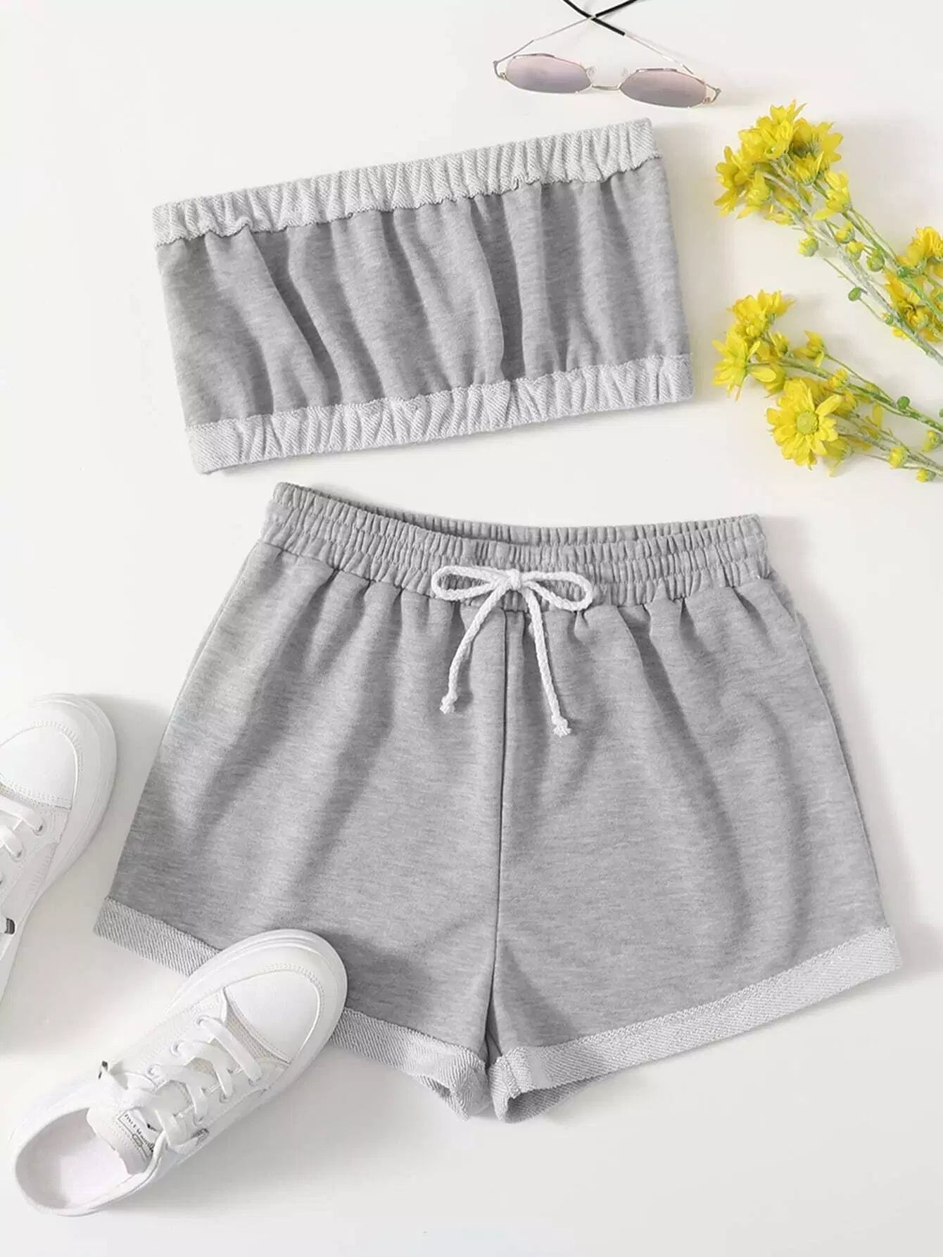 توب قصير قصير قصير مع شورت بأربطة ضيقة