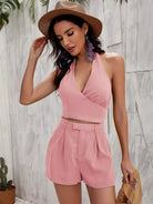 بلوزة قصيرة برباط من الخلف برباط على الظهر مع شورت قصير