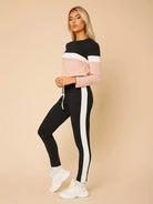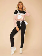 بنطلون ضيق بقص وخياطة تي شيرت وربطة على الخصر