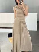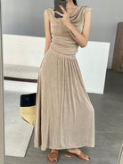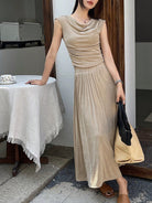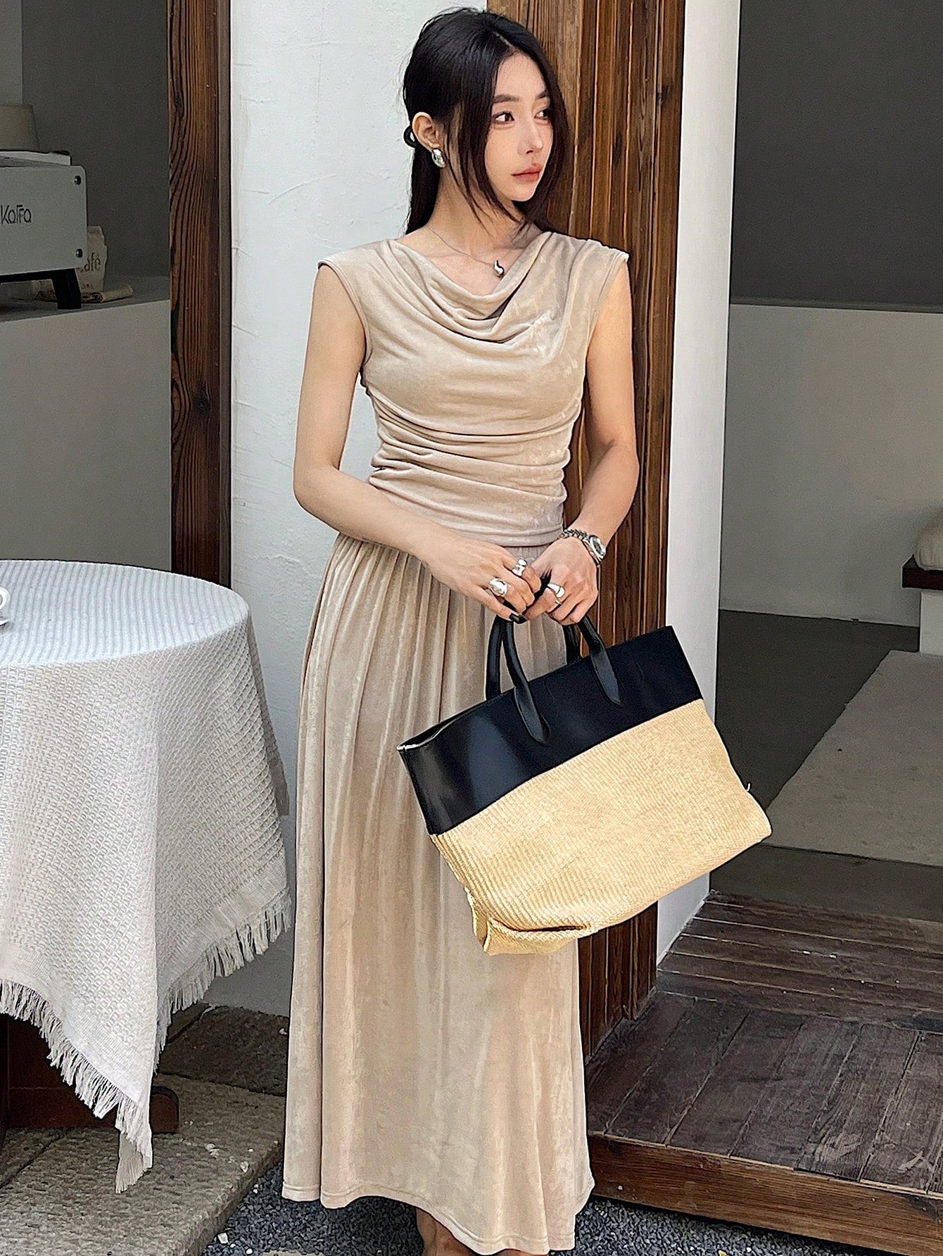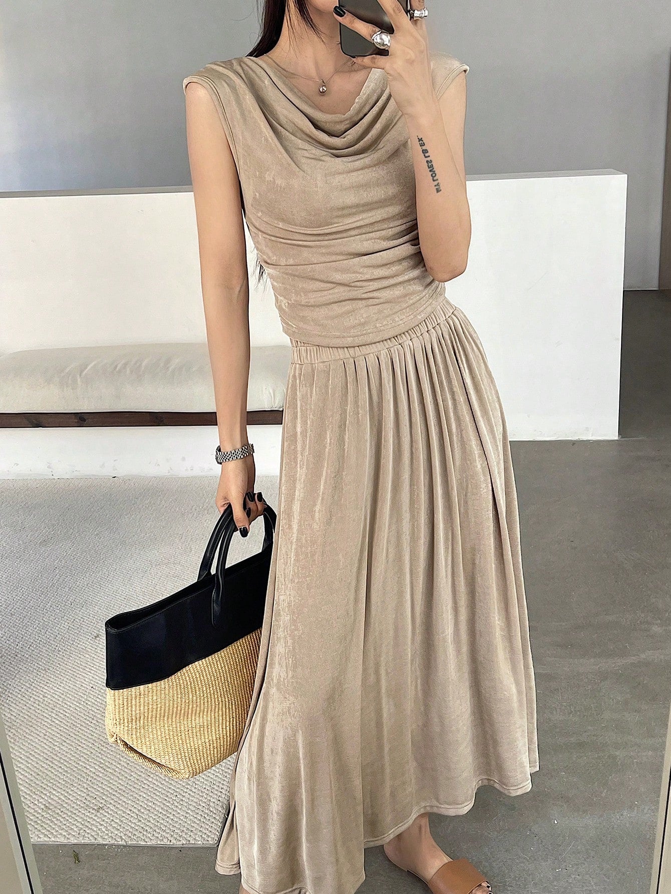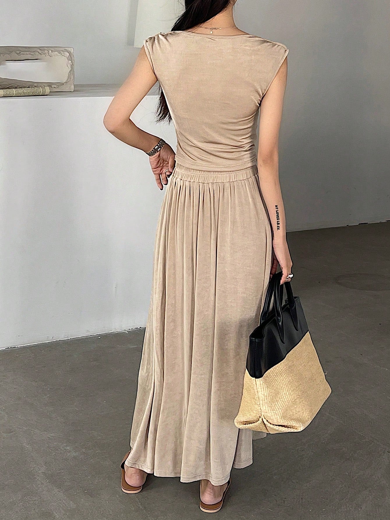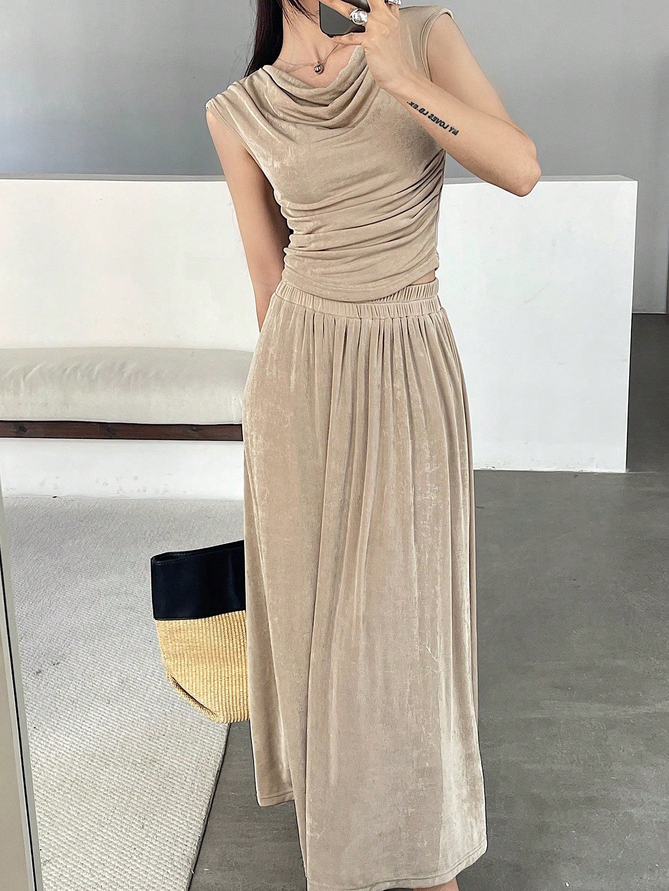 طقم من قطعتين من تي شيرت نسائي برقبة واسعة وتنورة ضيقة من DAZY