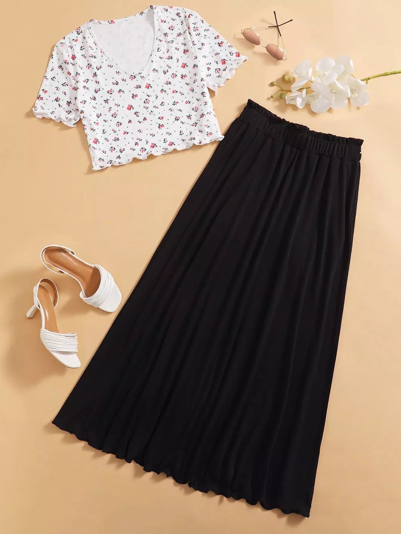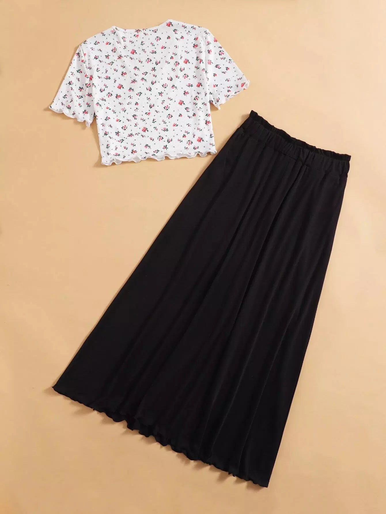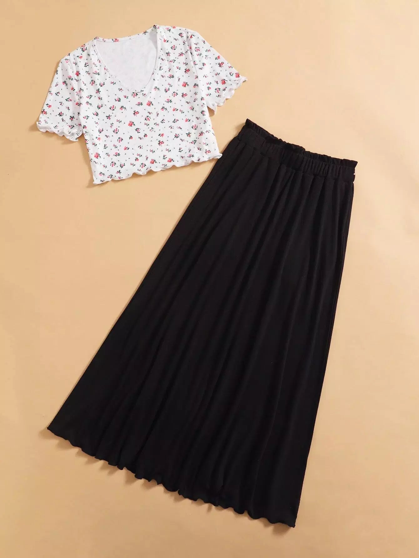 تي شيرت وتنورة مزينان بزخارف زهرية مزينة بالخس