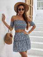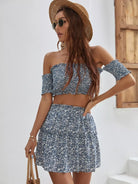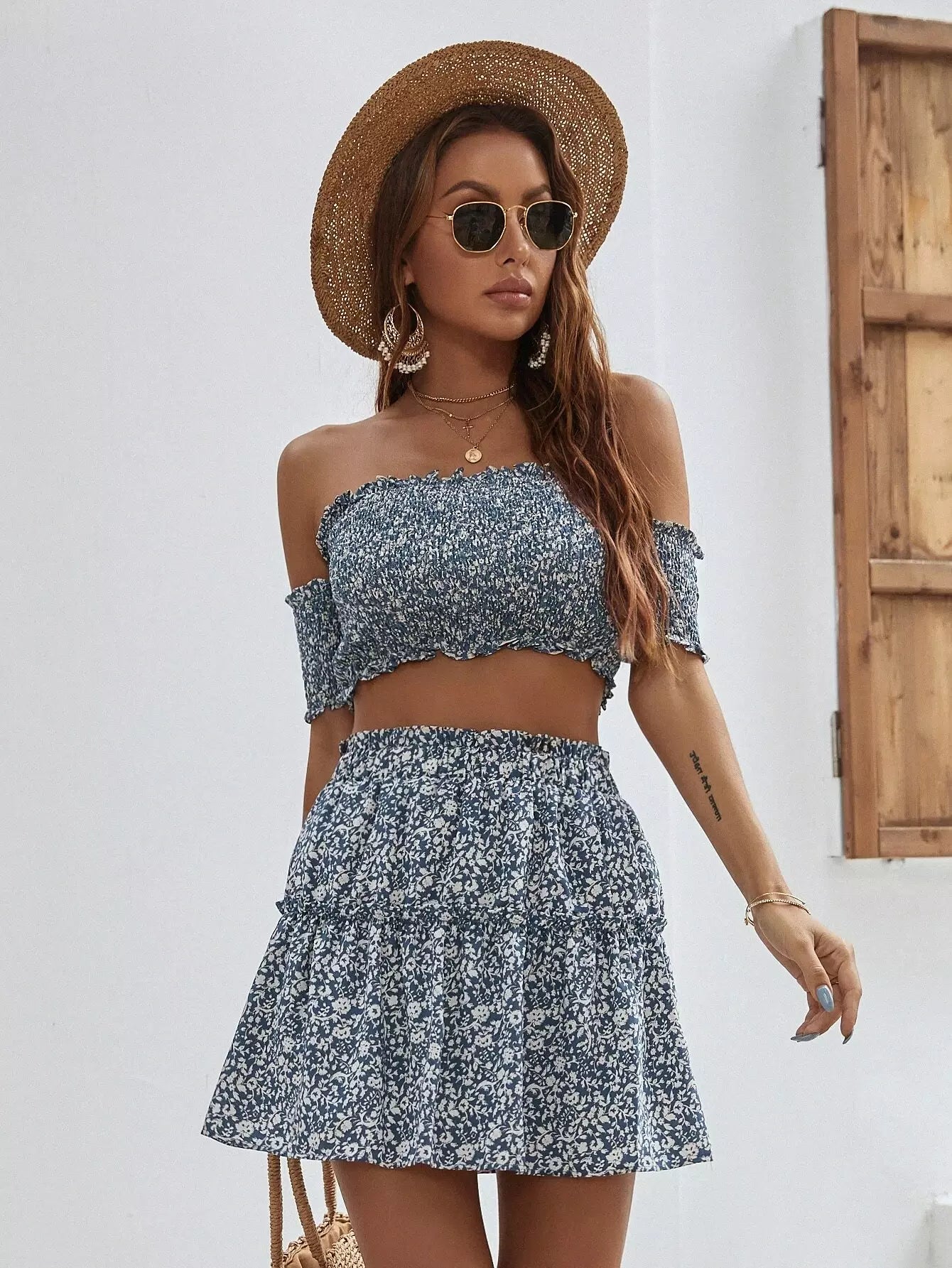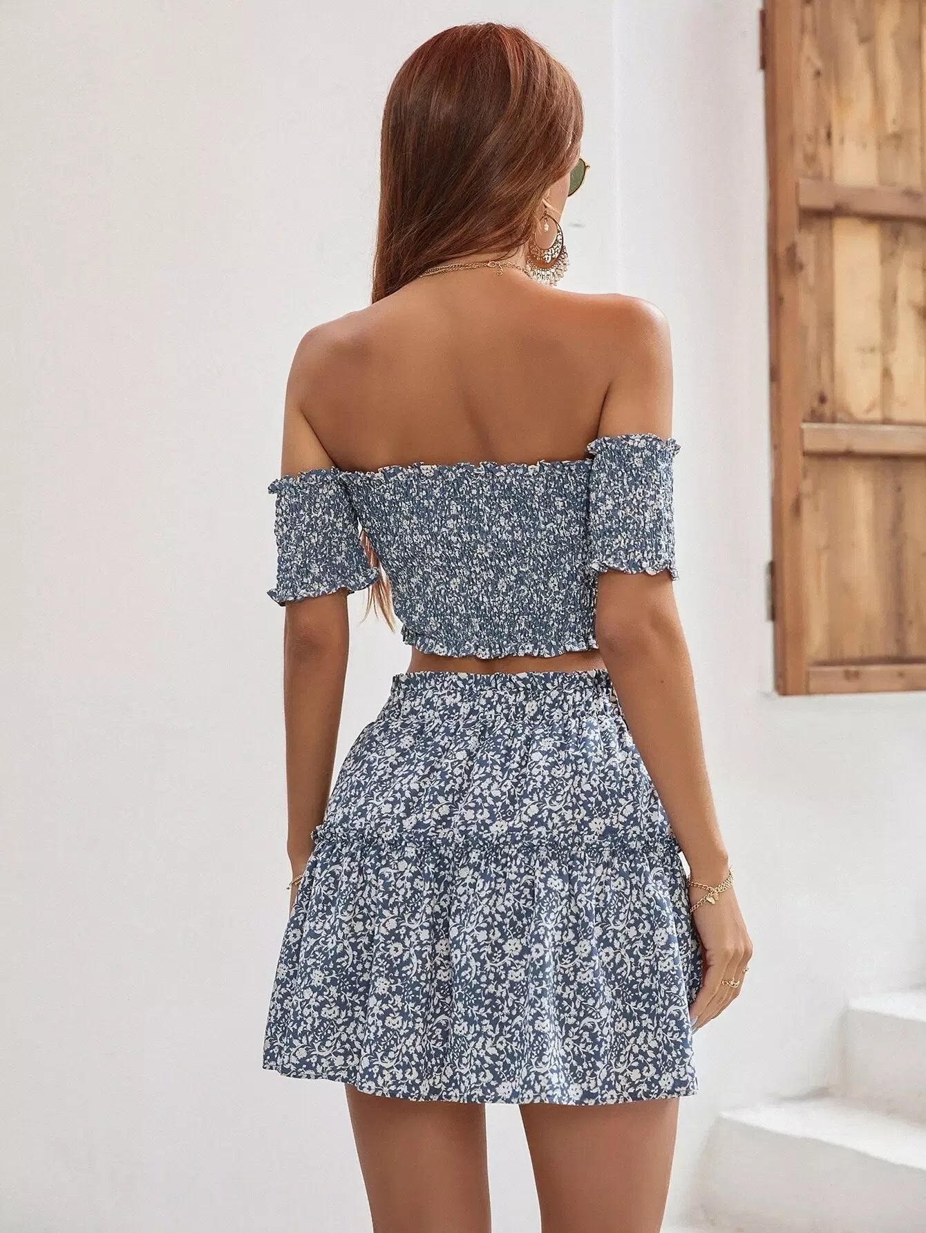 بلوزة قصيرة مزينة بطبعات زهور ديتسي مع تنورة قصيرة مزينة بالخس
