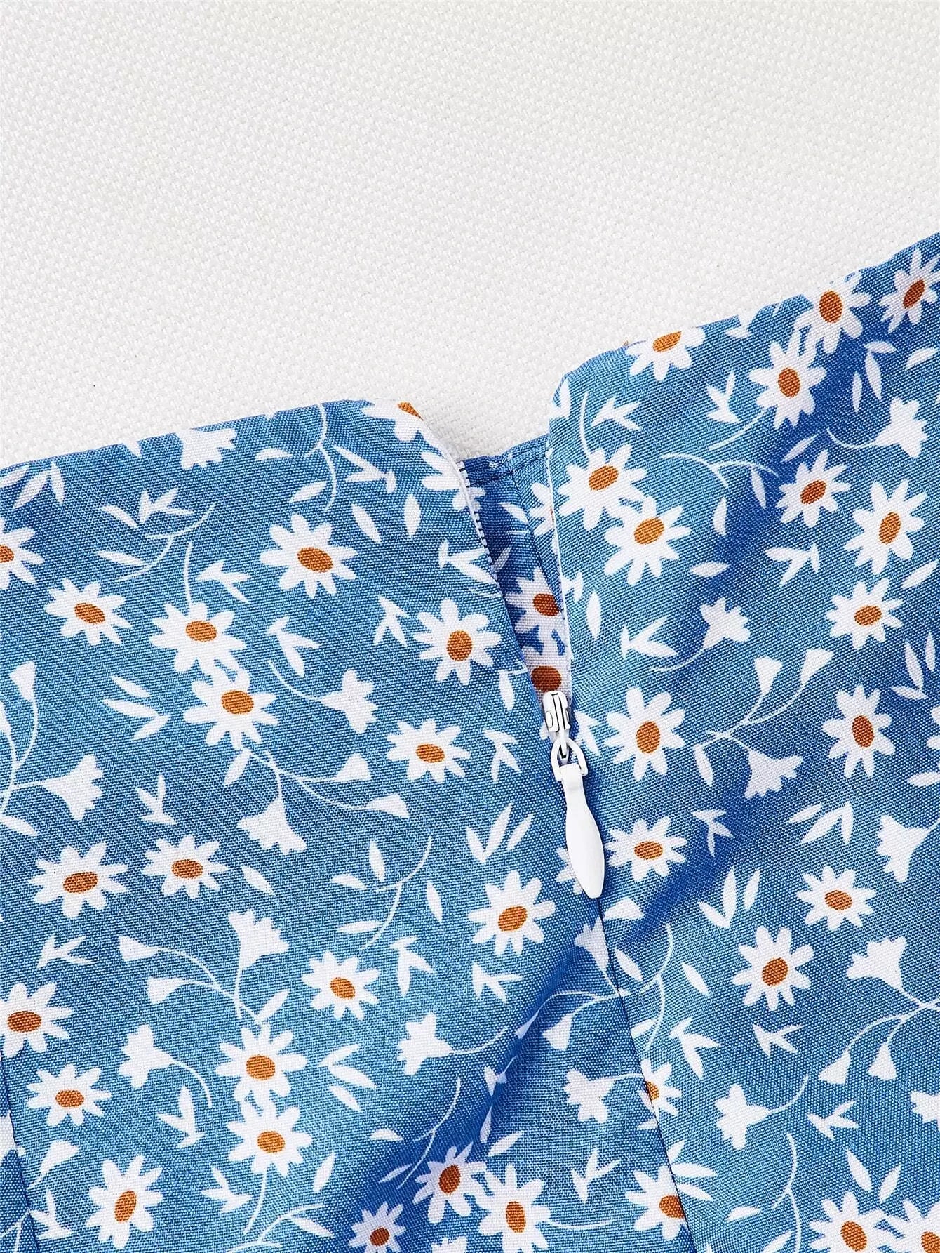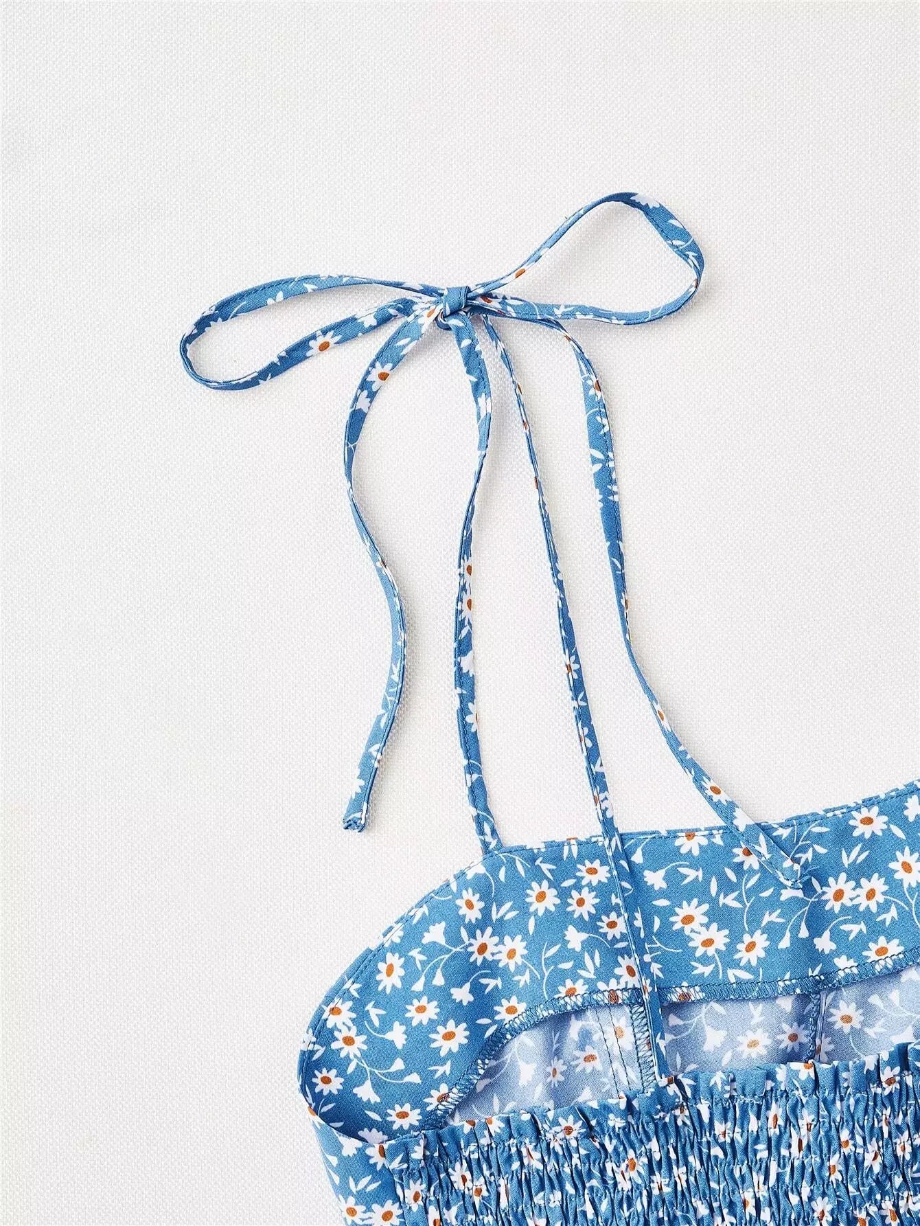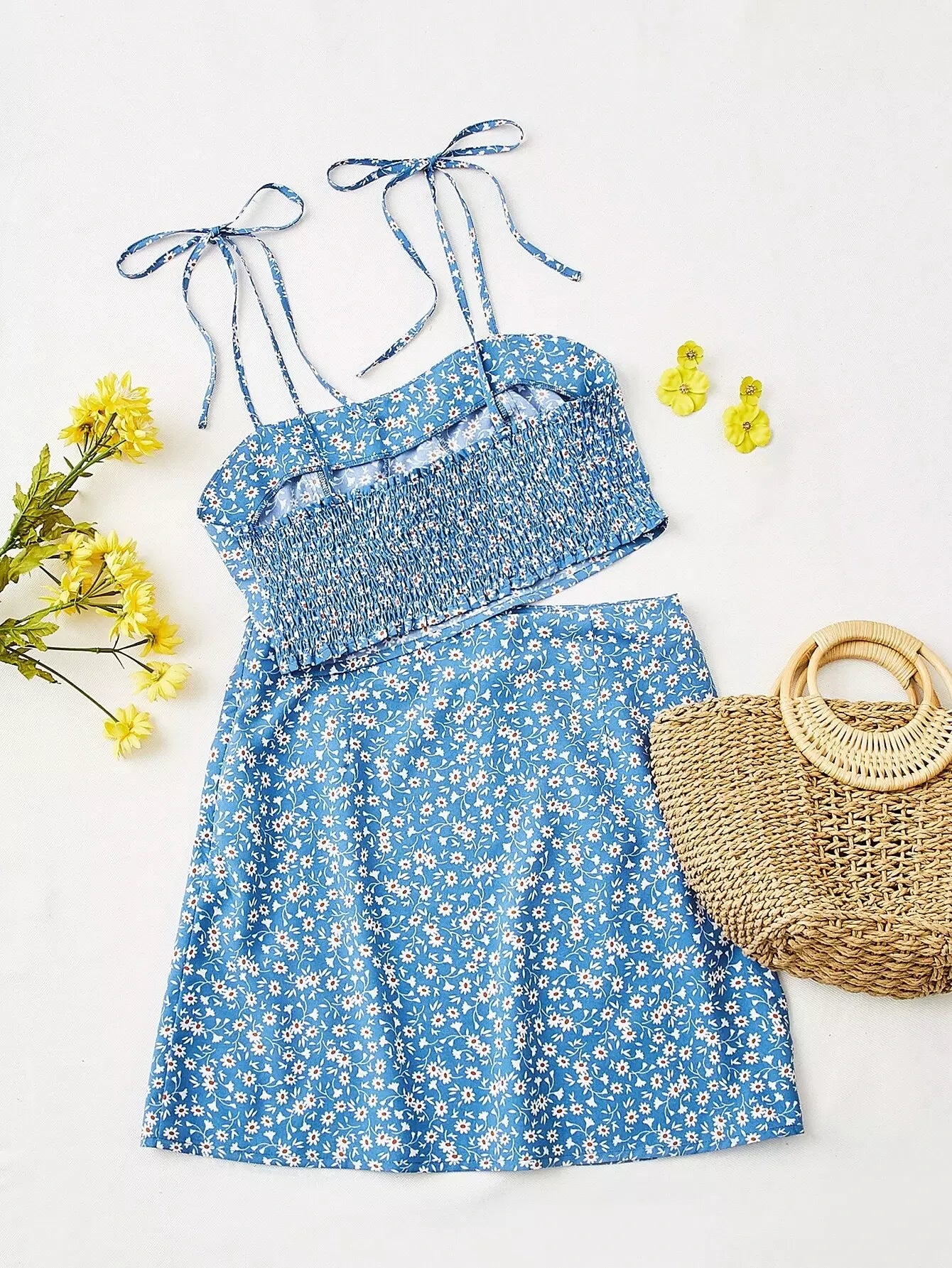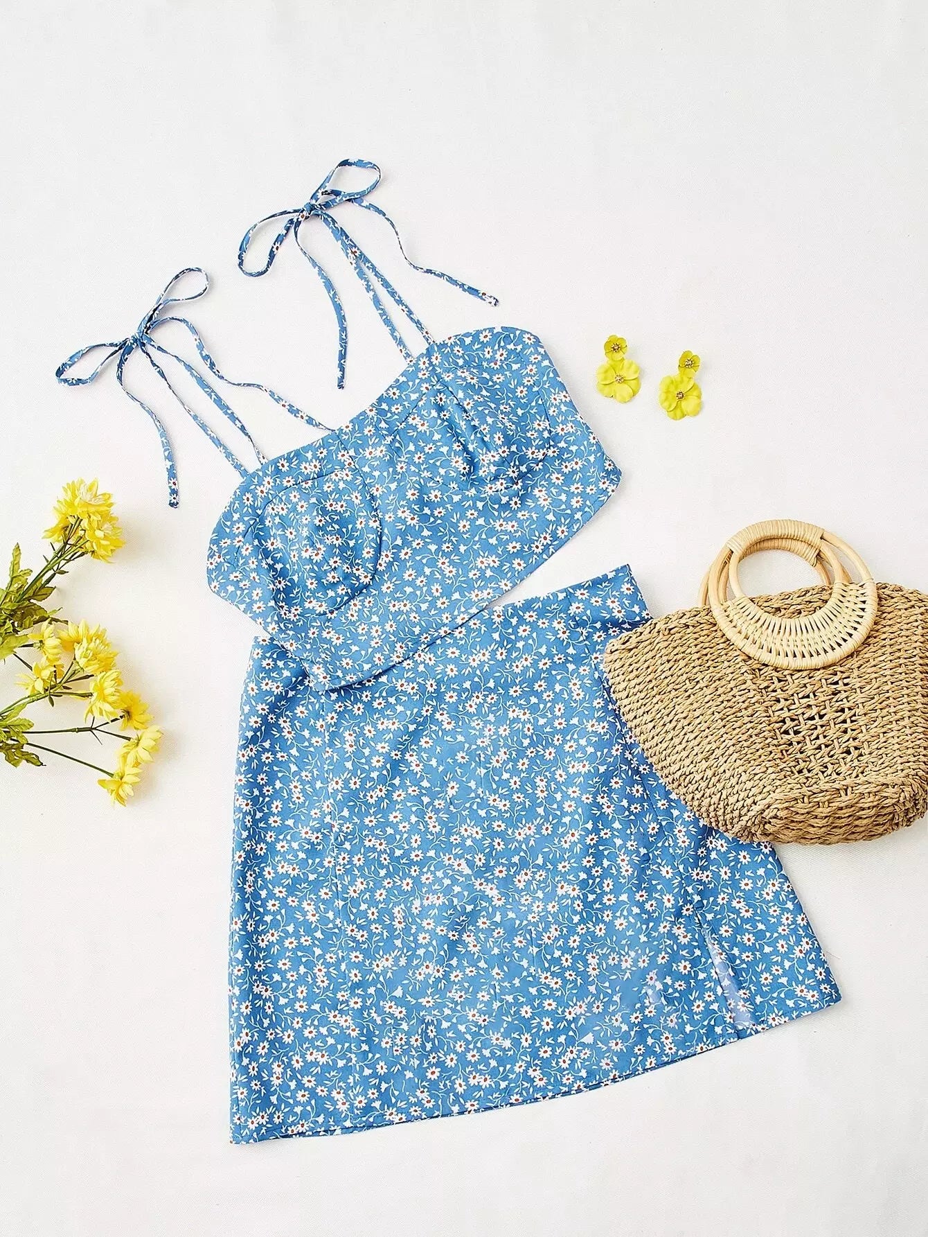 بلوزة ديتسي مزينة بشيرتات زهرية من الخلف مع تنورة