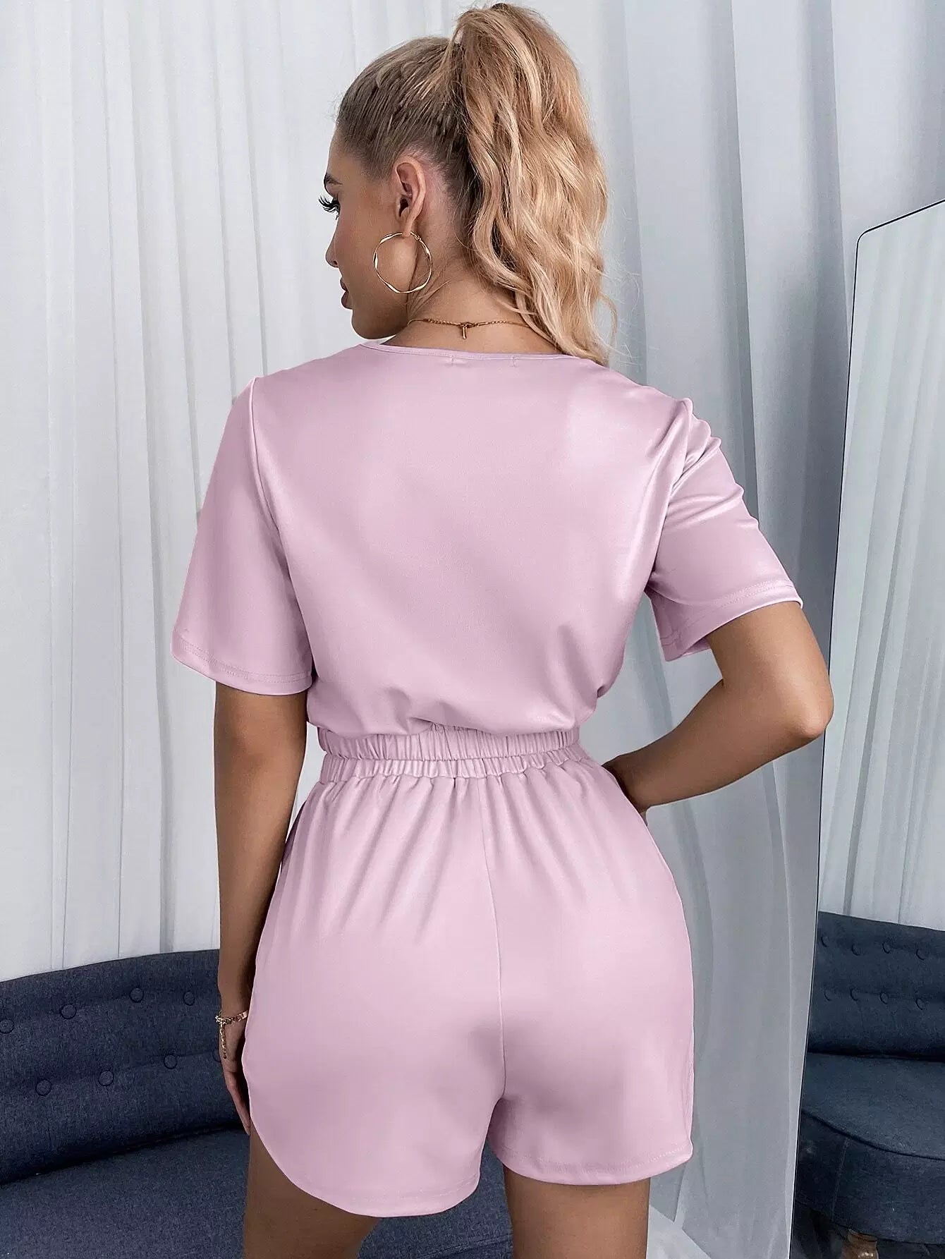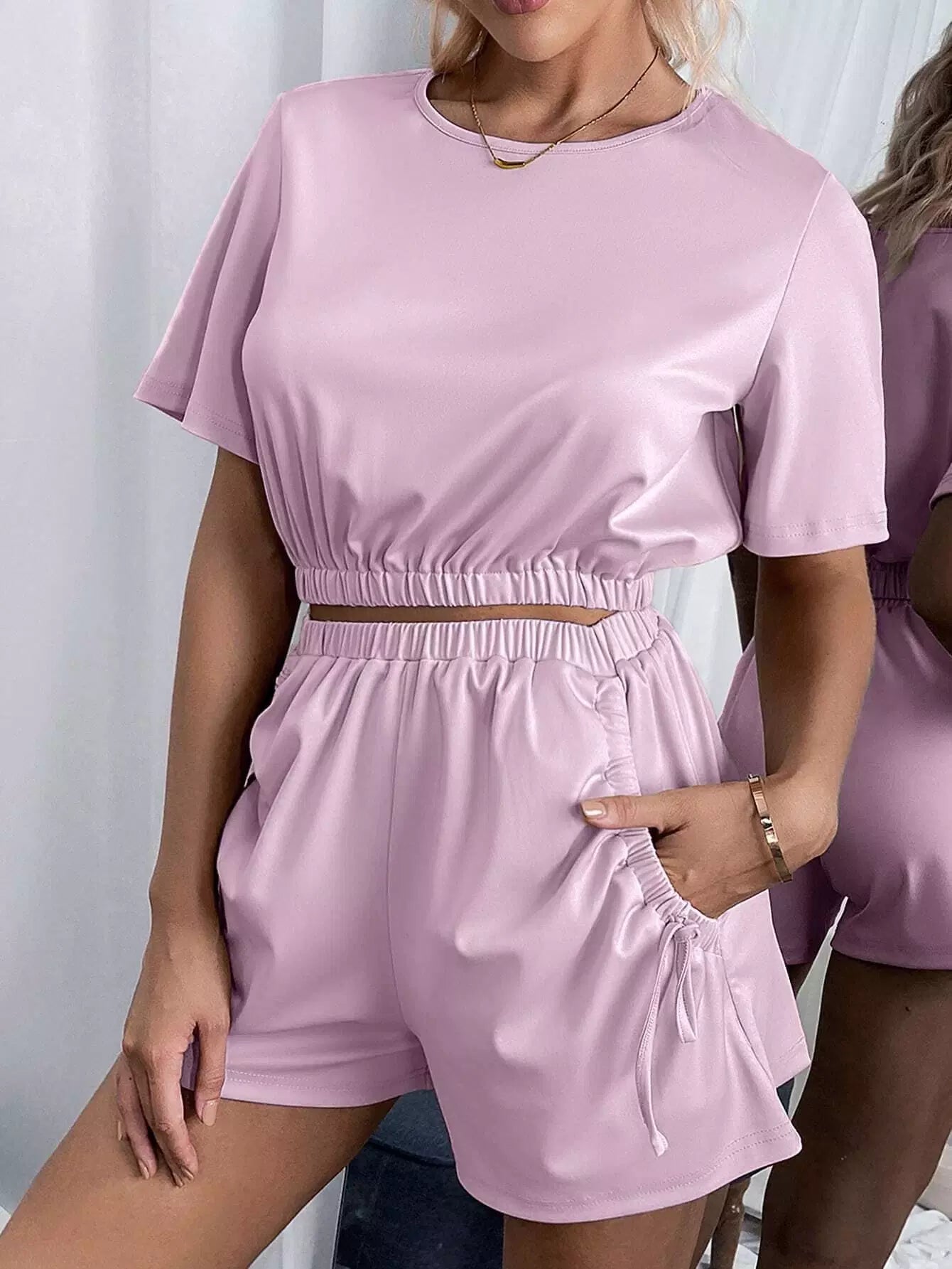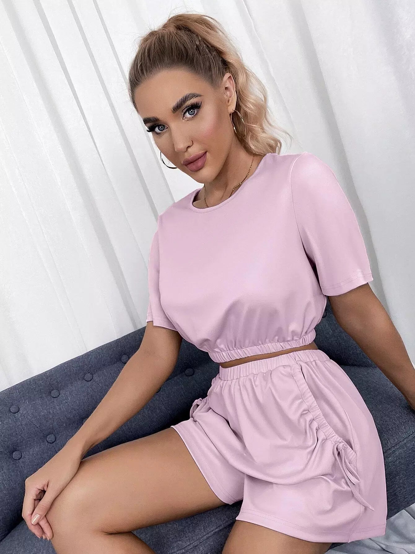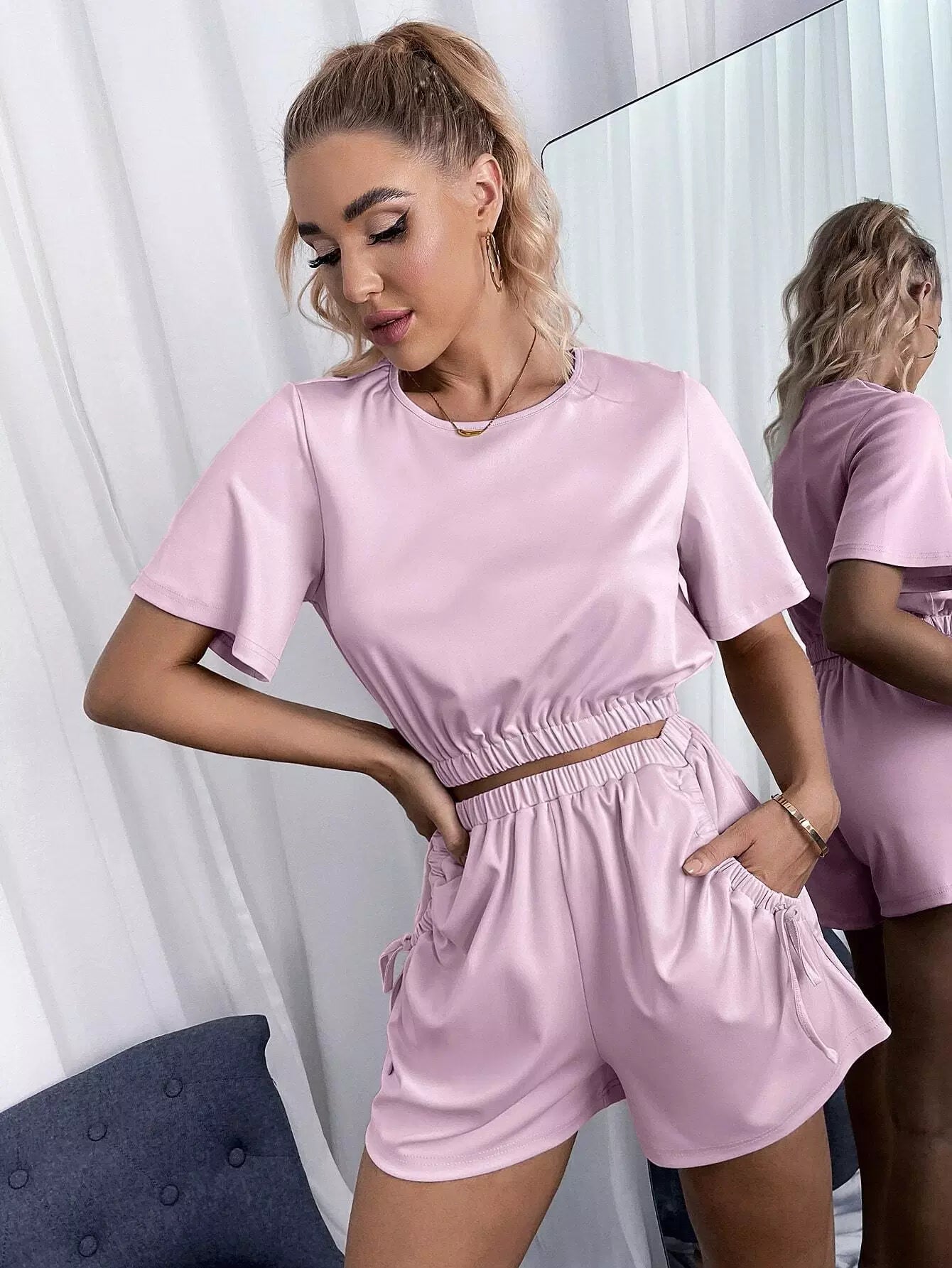 طقم تي شيرت قصير بتصميم برباط وشورت رياضي قصير
