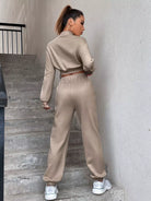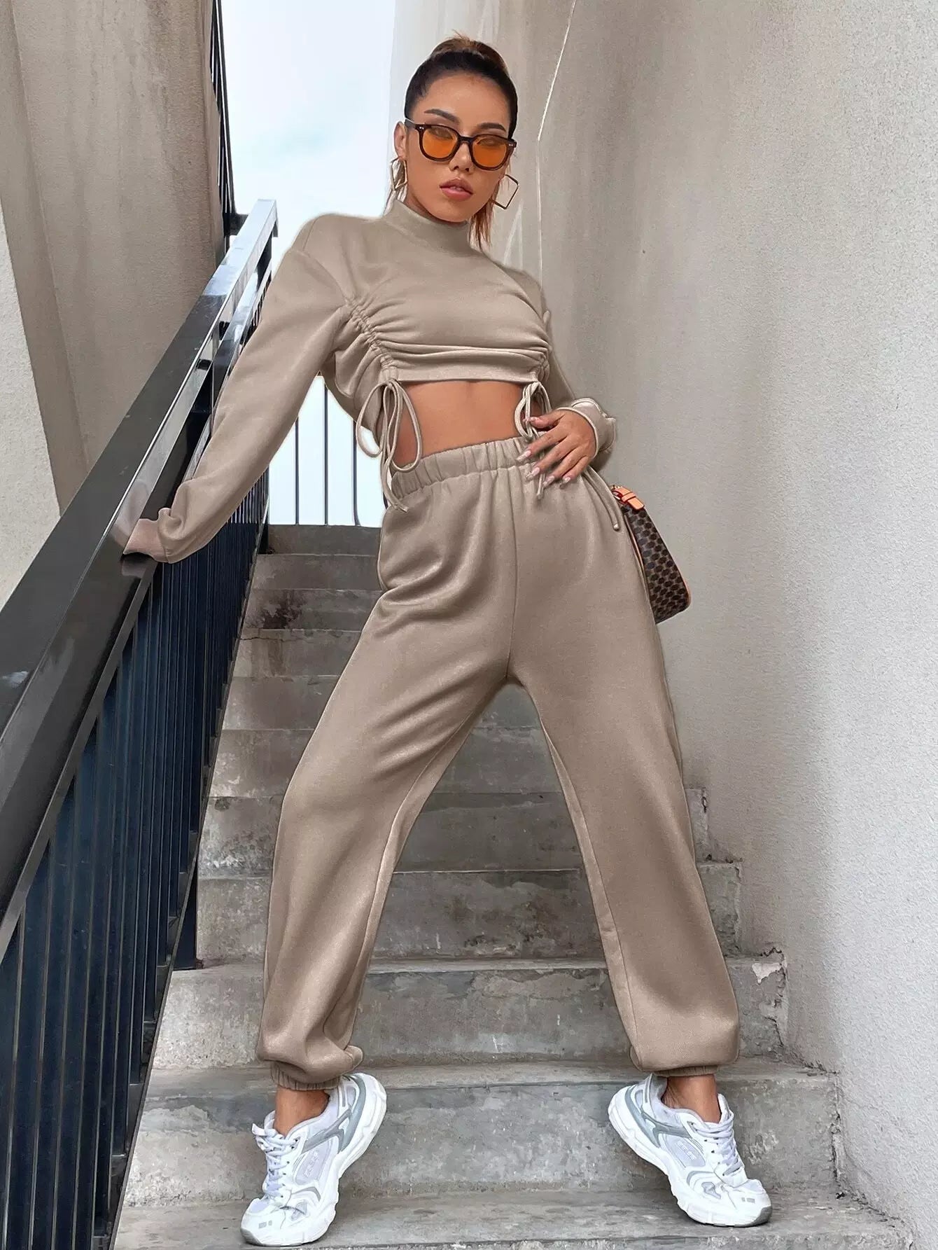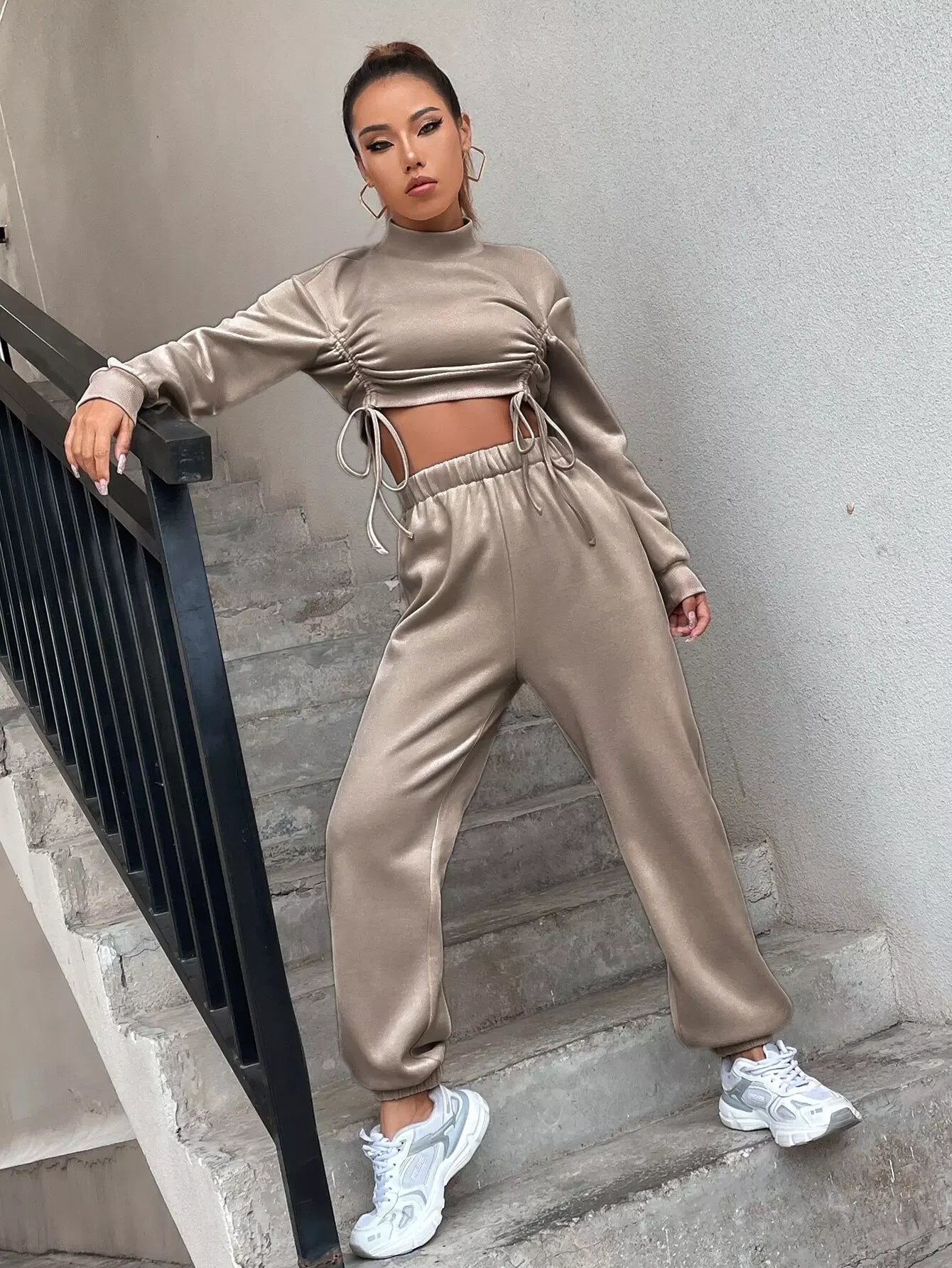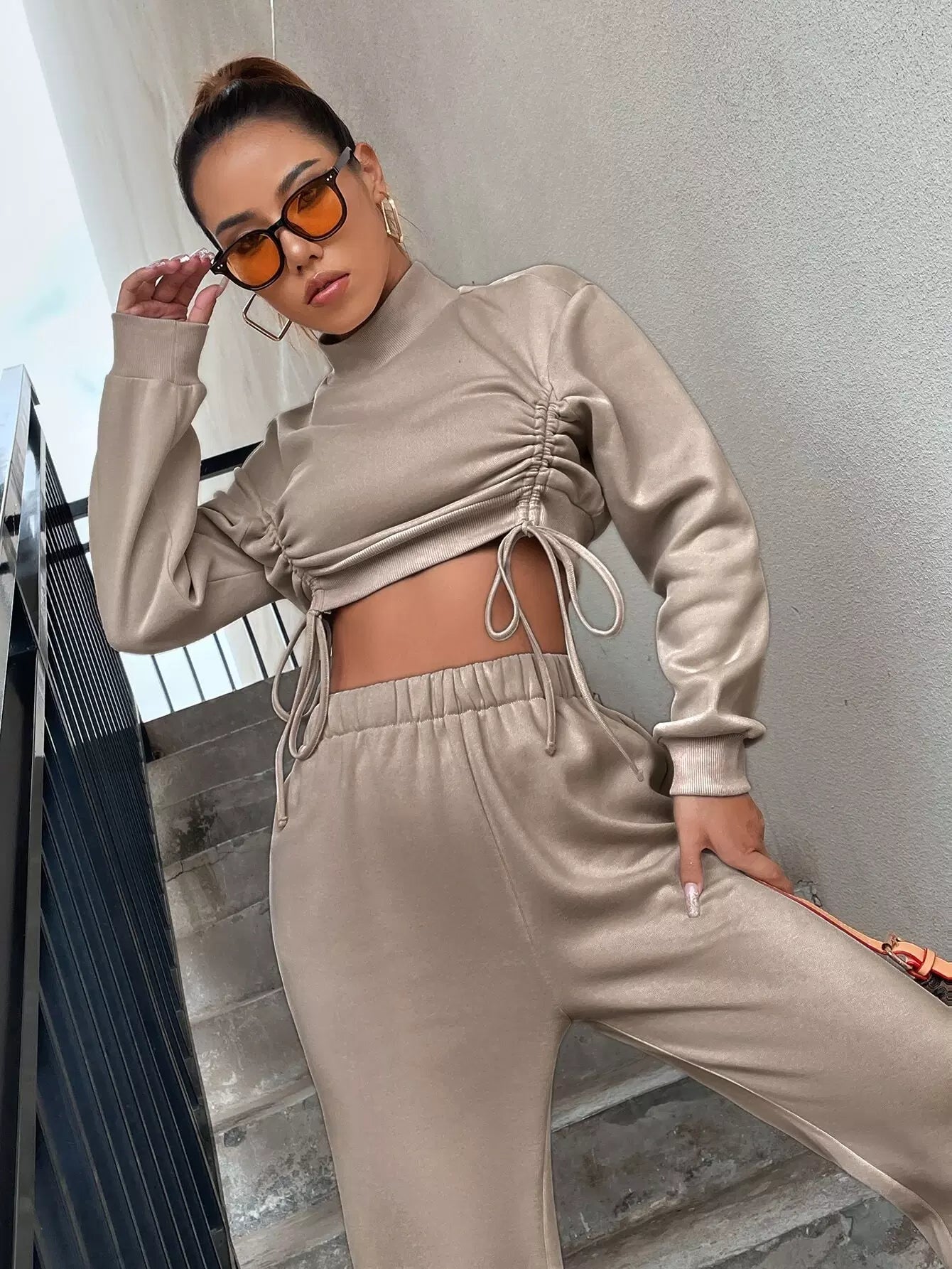 كنزة صوفية برباط أمامي برقبة ضيقة من الأمام وبنطال رياضي قصير