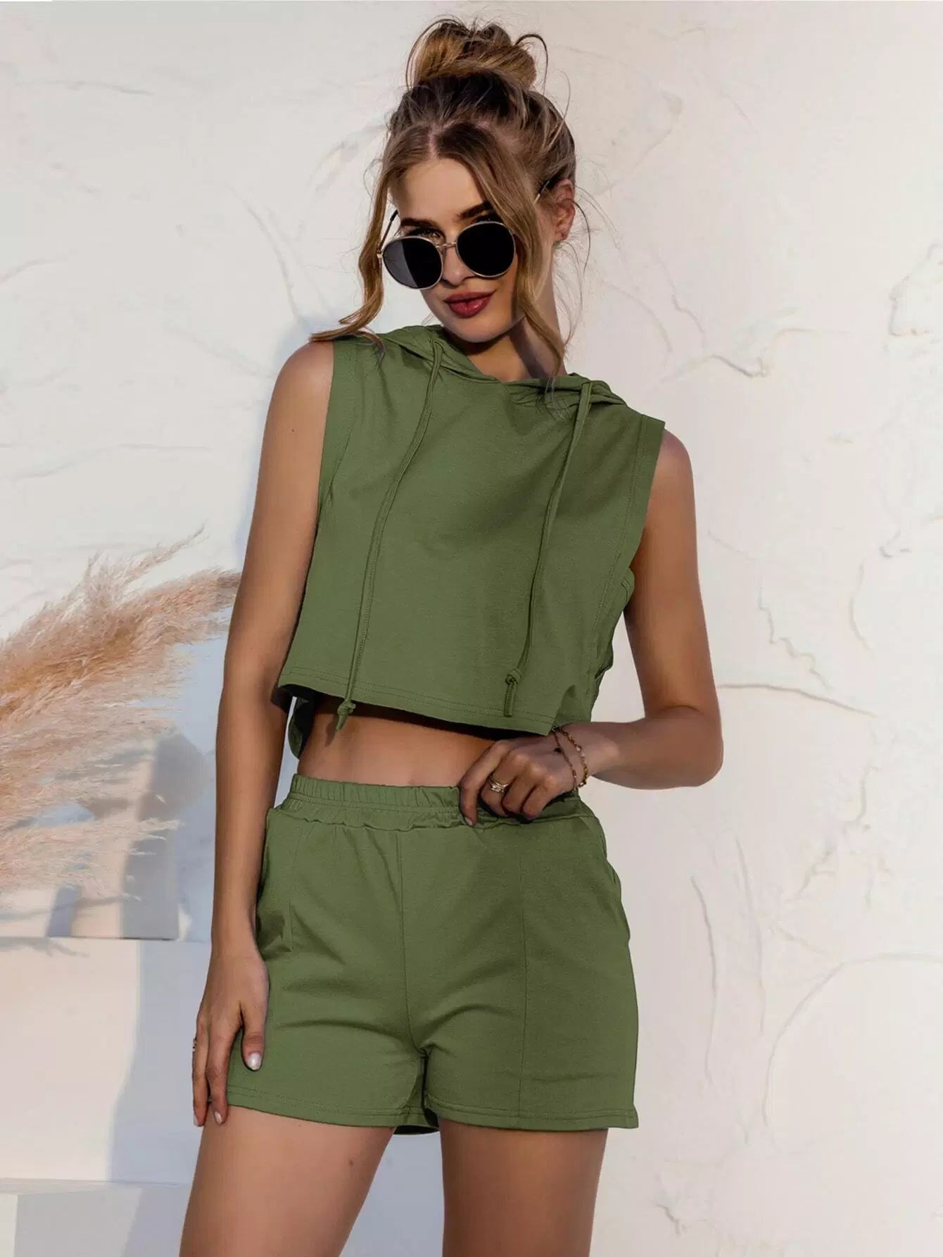 بلوزة قصيرة بغطاء رأس ورباط مع شورت