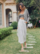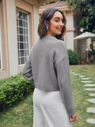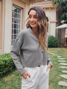 كارديجان قصير بفتحة بأزرار منسدلة على الأكتاف مع بلوزة محبوكة