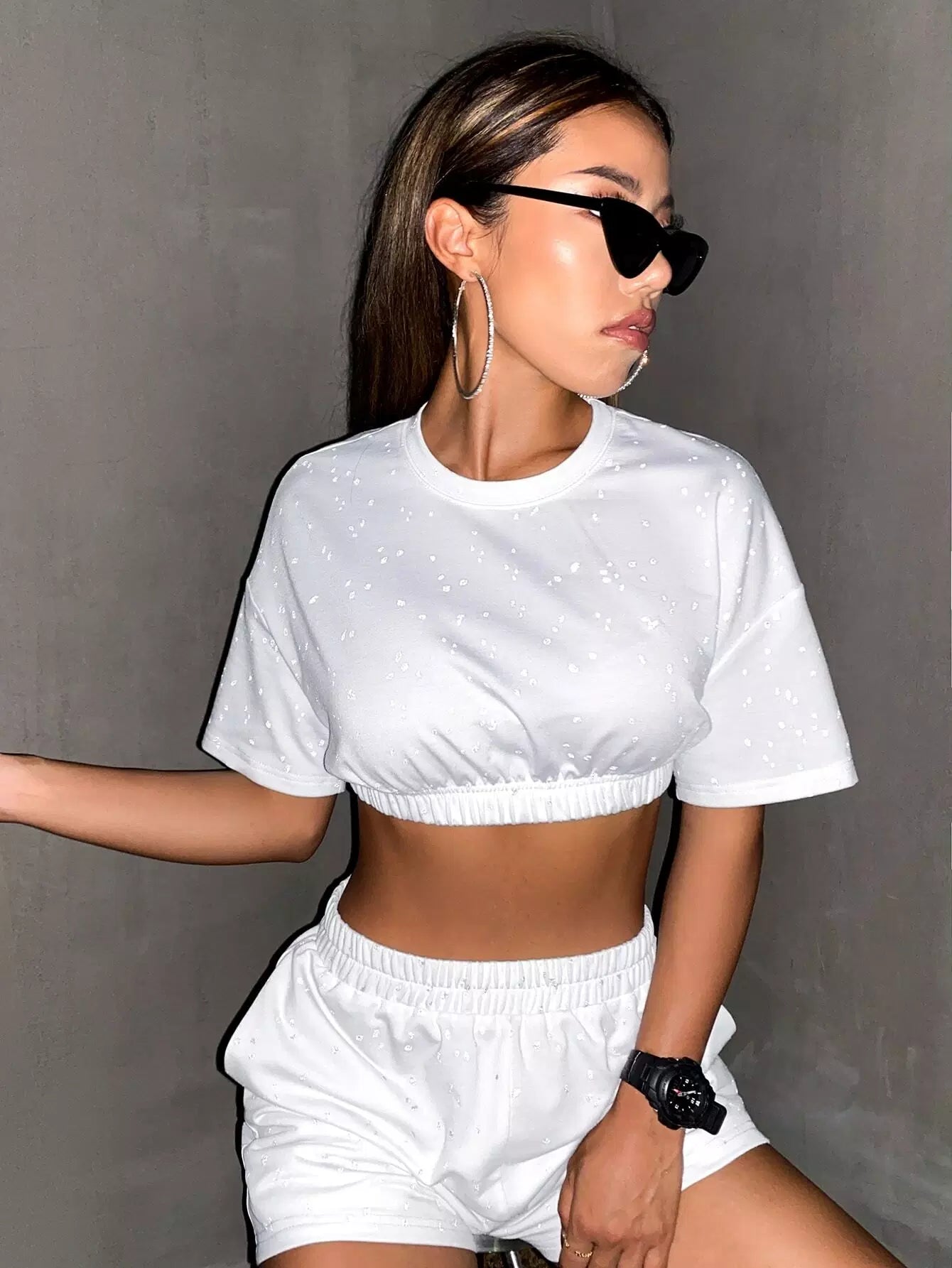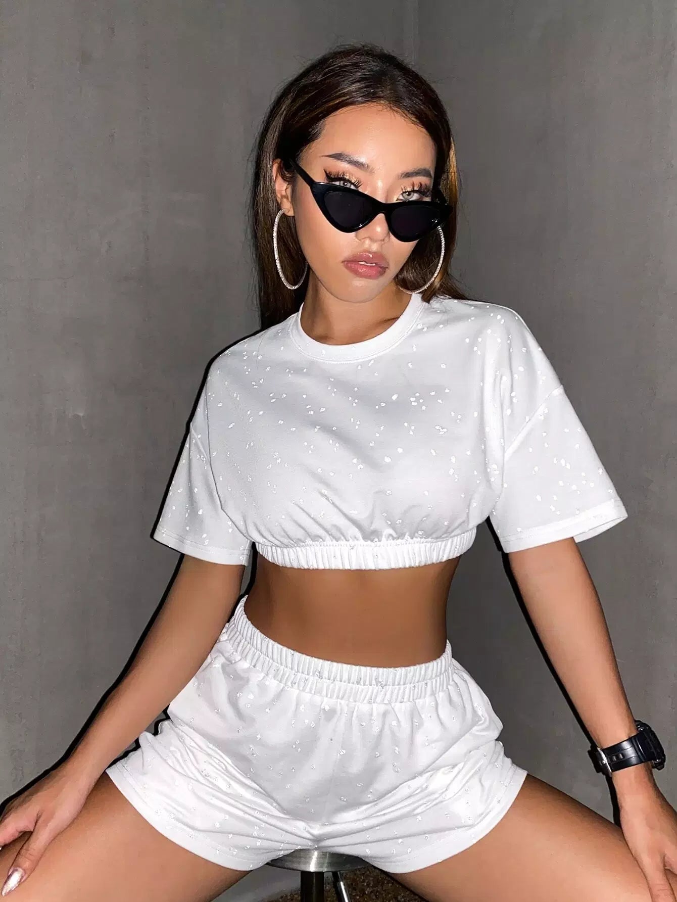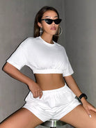 طقم قميص قصير منسدل الأكتاف دالماسيان وشورت رياضي قصير