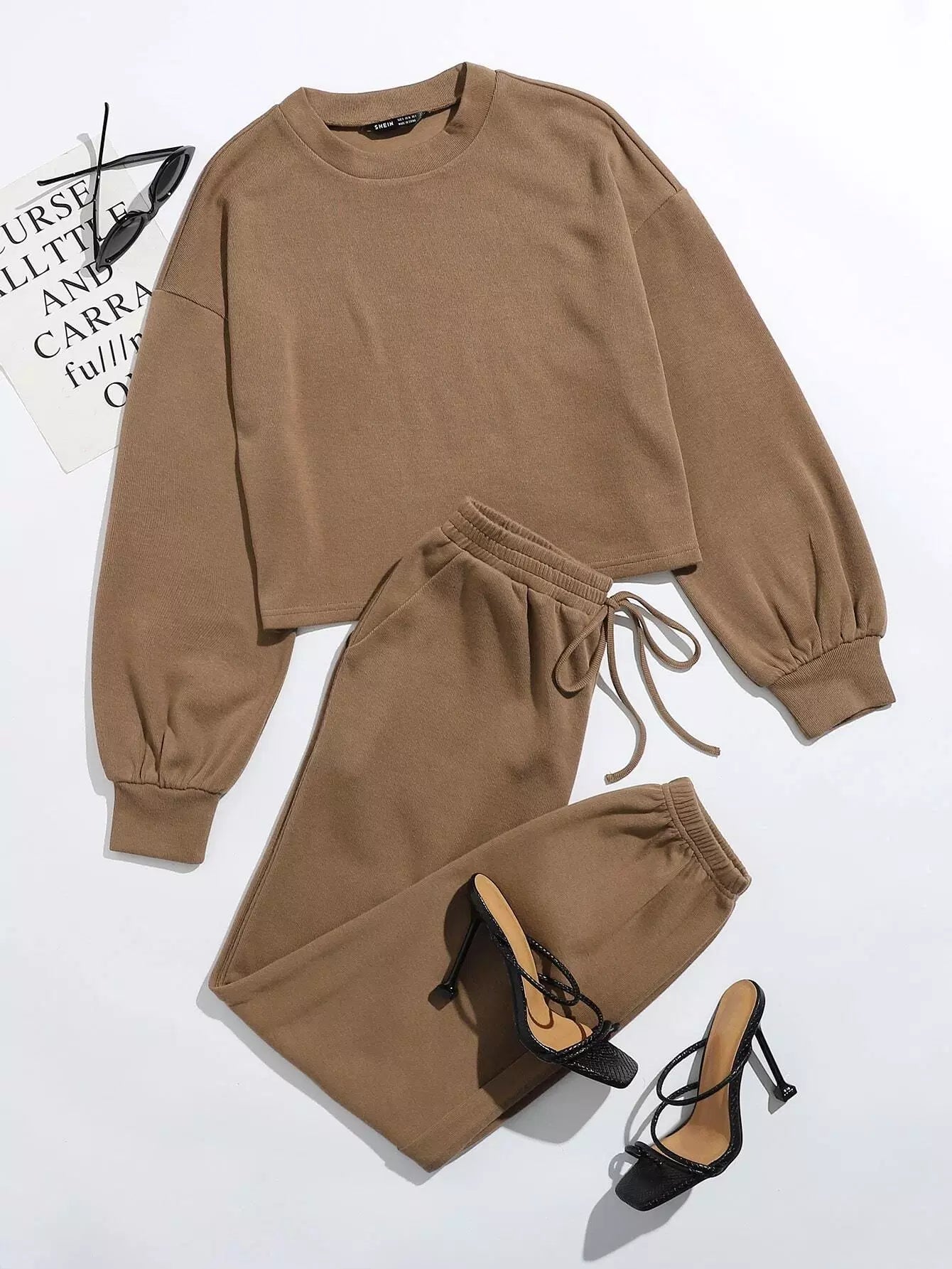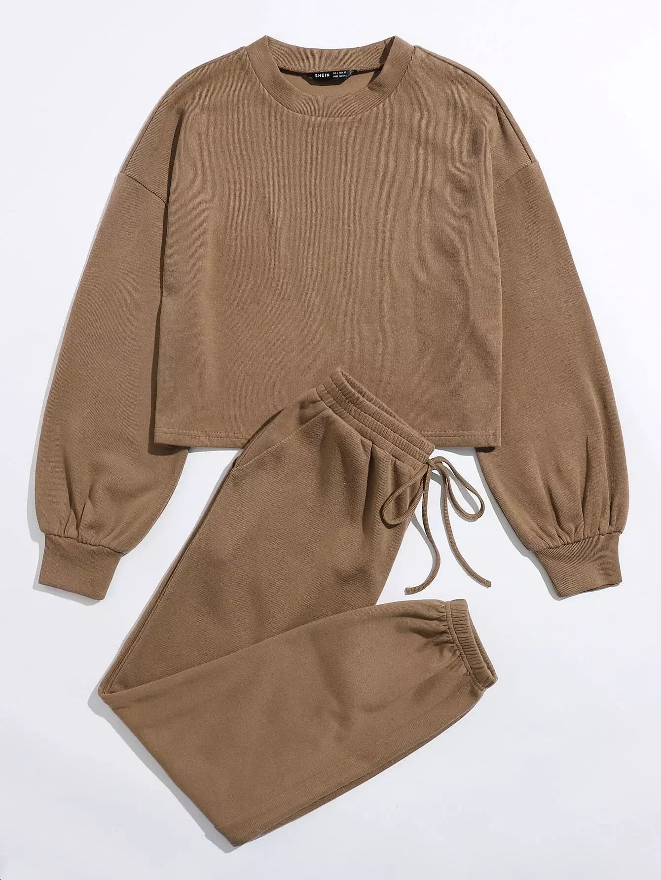 طقم كنزة صوفية بأكتاف منسدلة وأربطة رباط رياضي