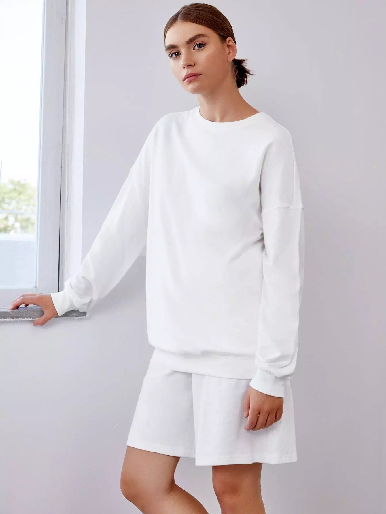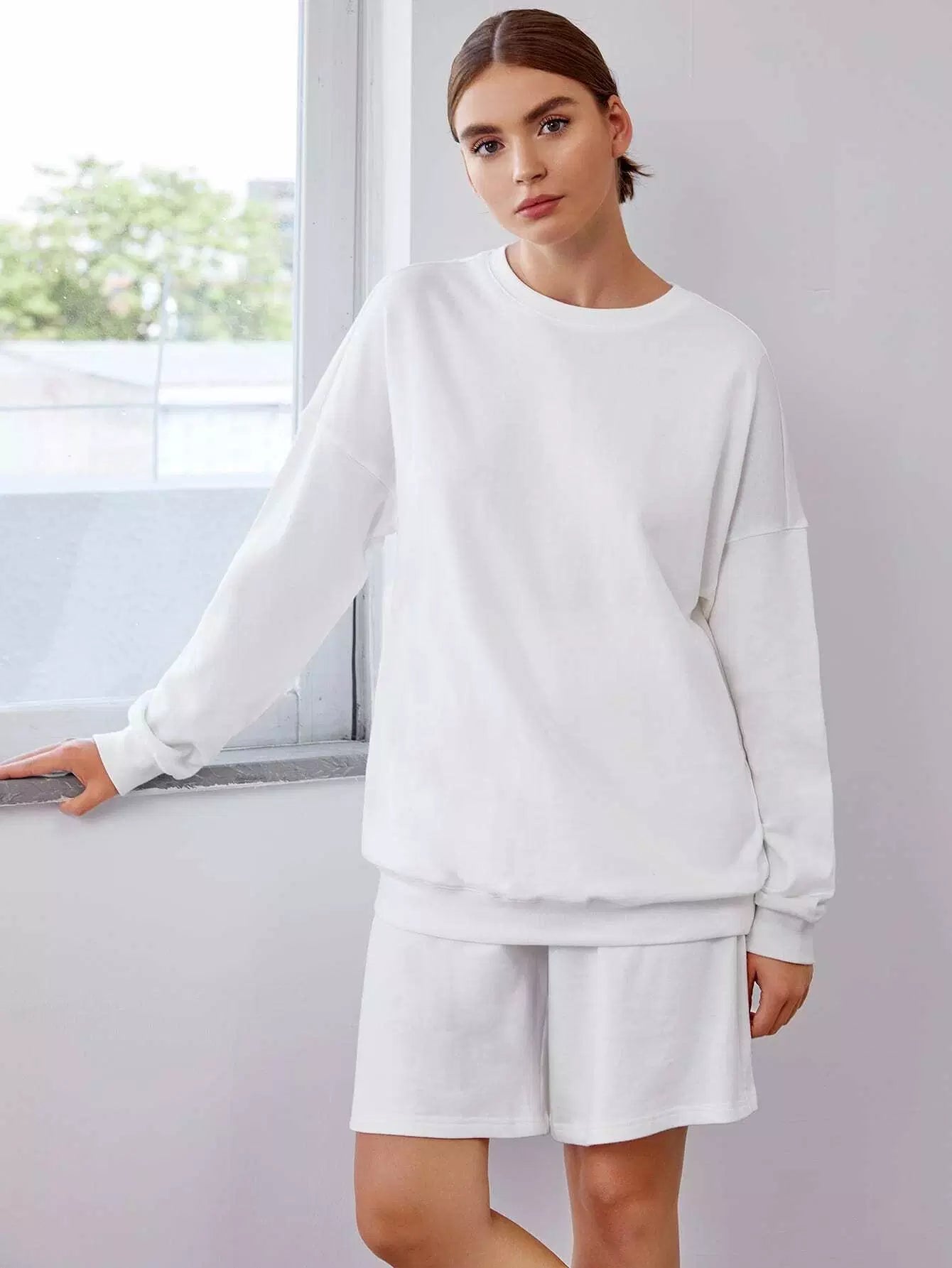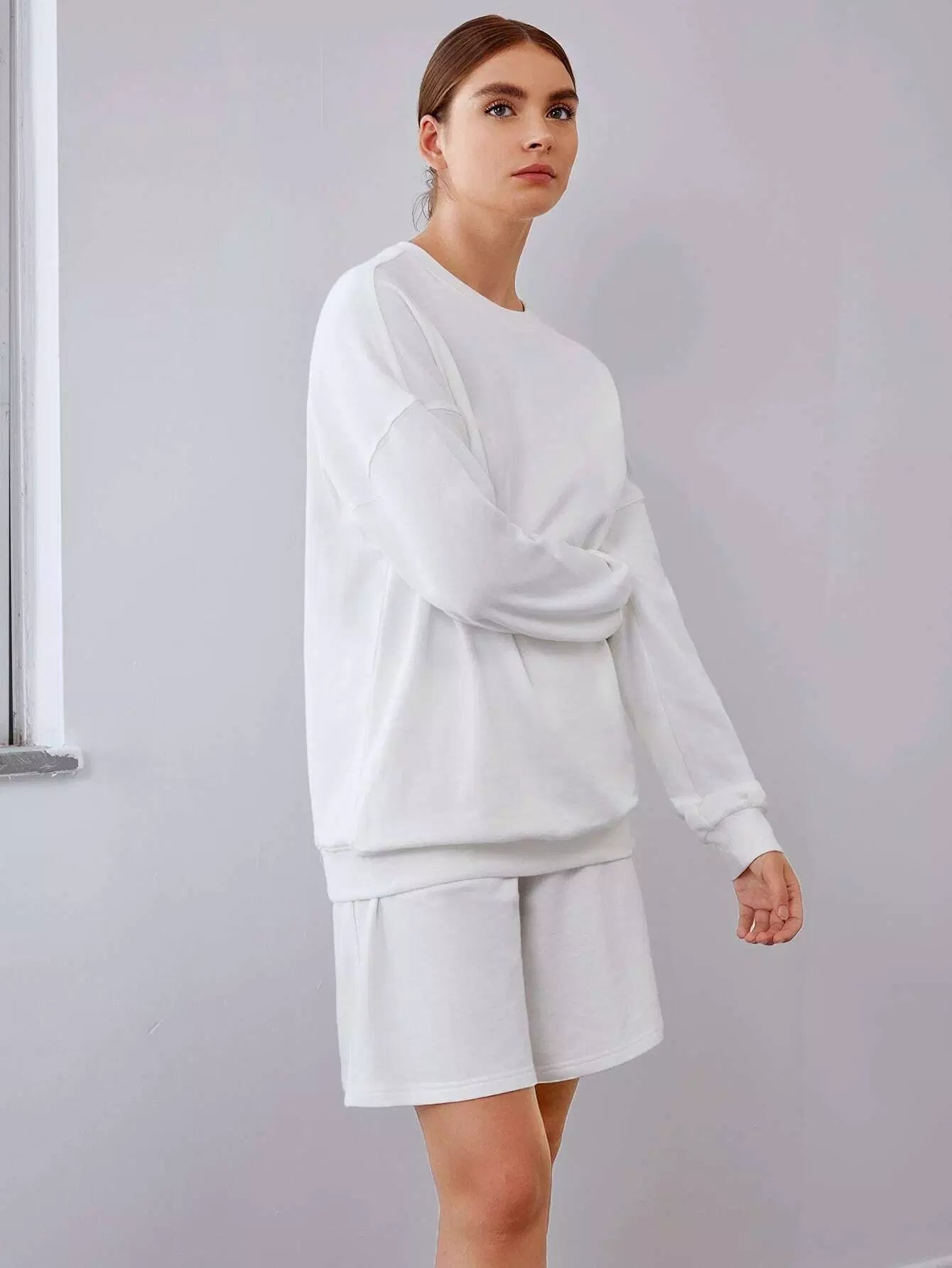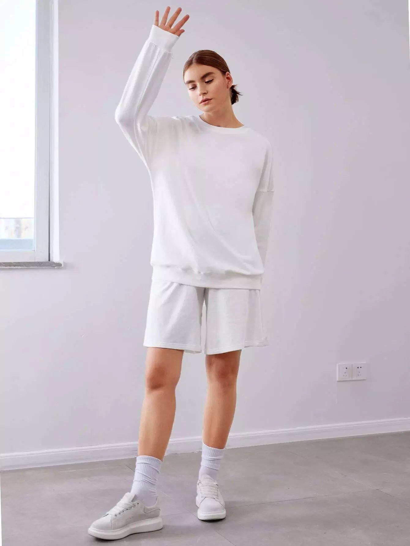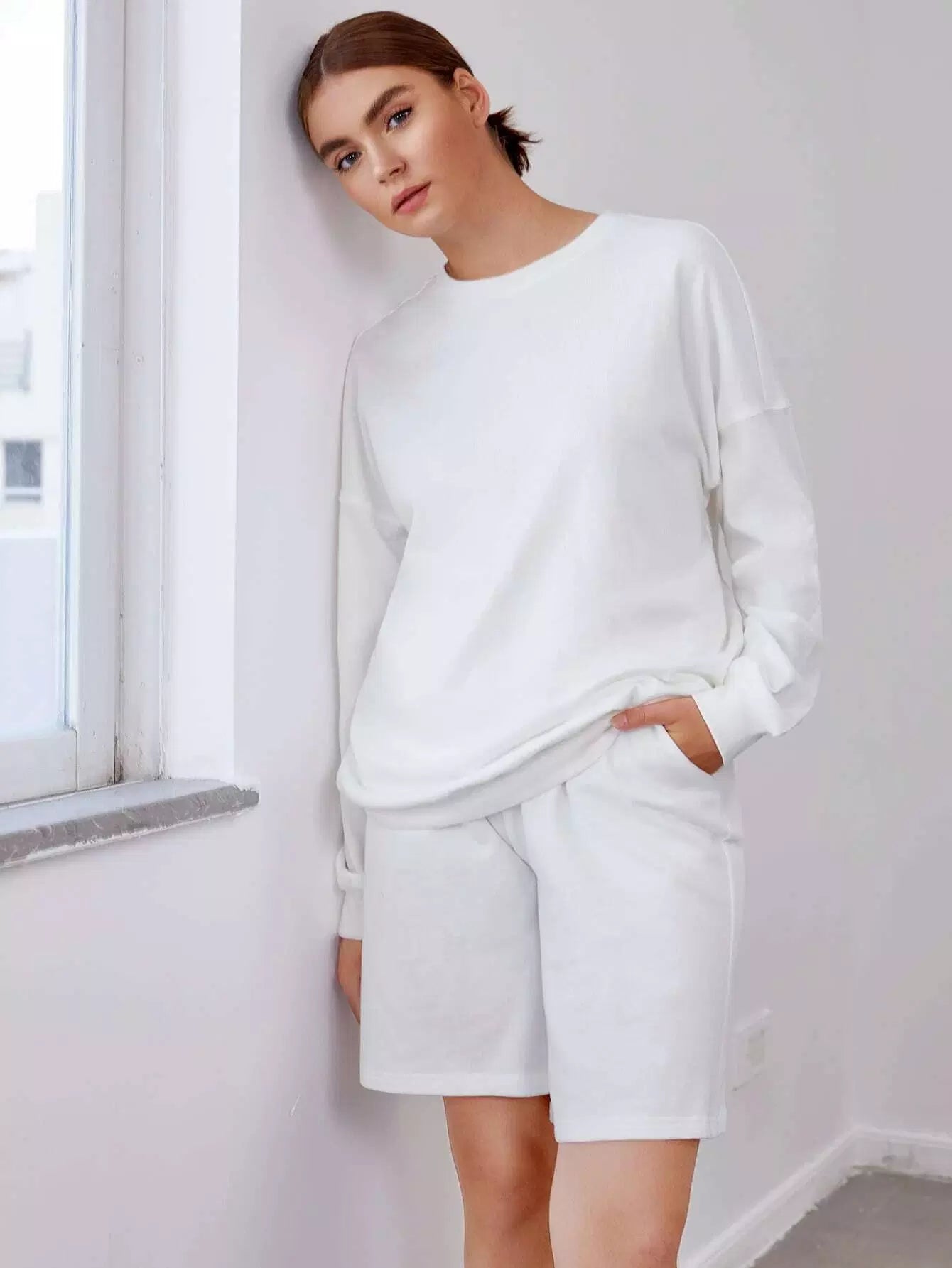 طقم كنزة بدون أكتاف منسدلة وشورت رياضي