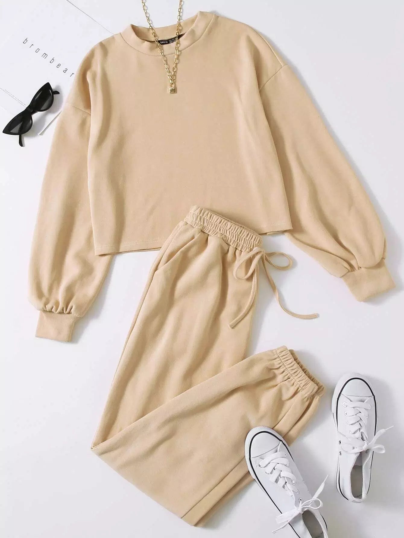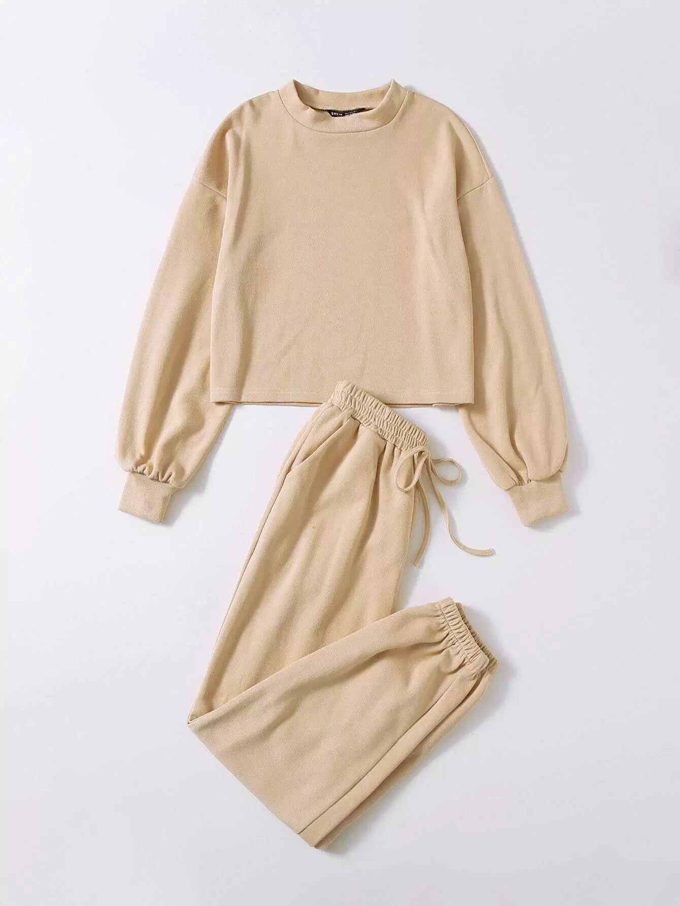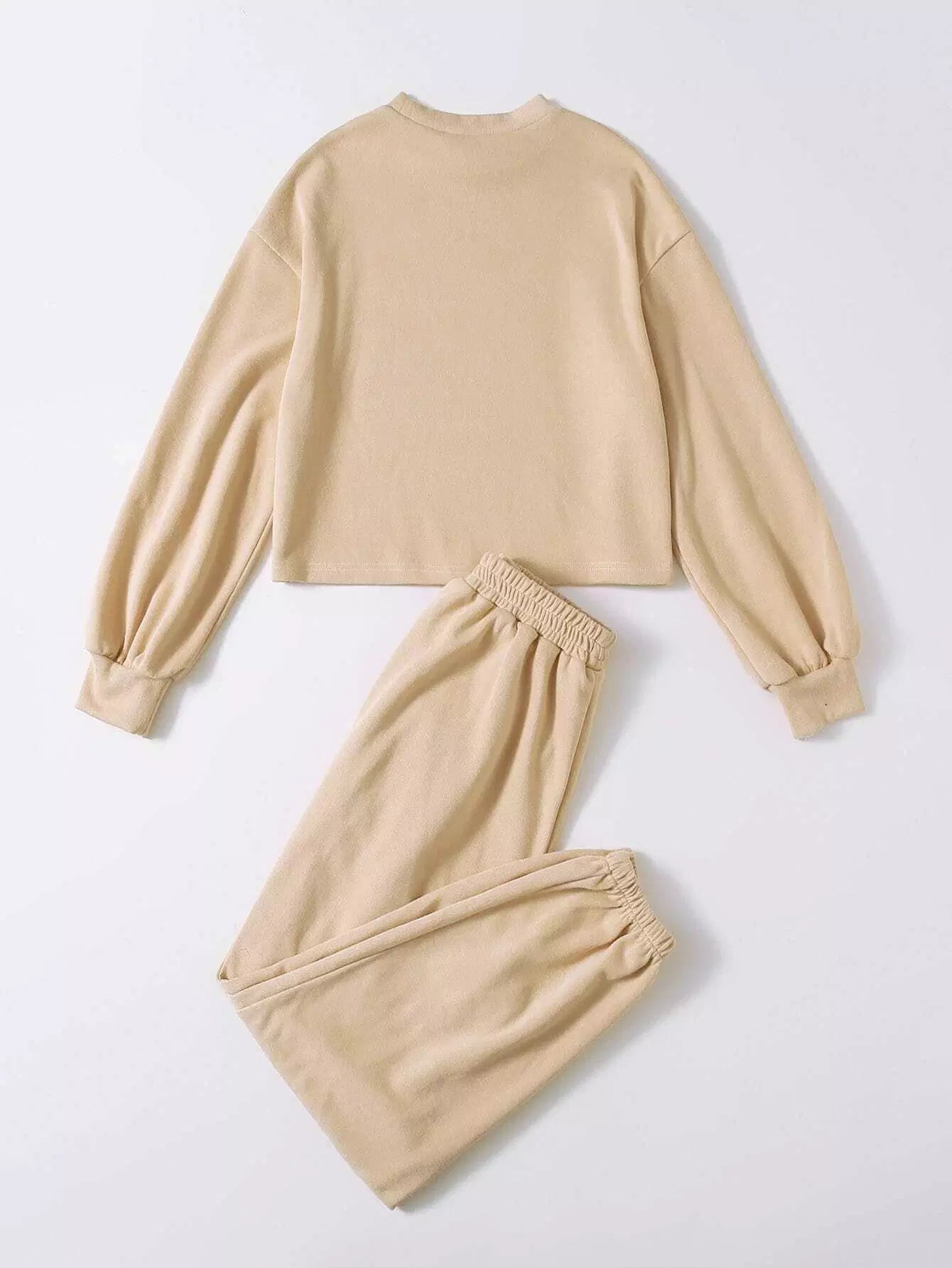 طقم كنزة صوفية سادة منسدلة الكتفين وبنطال رياضي