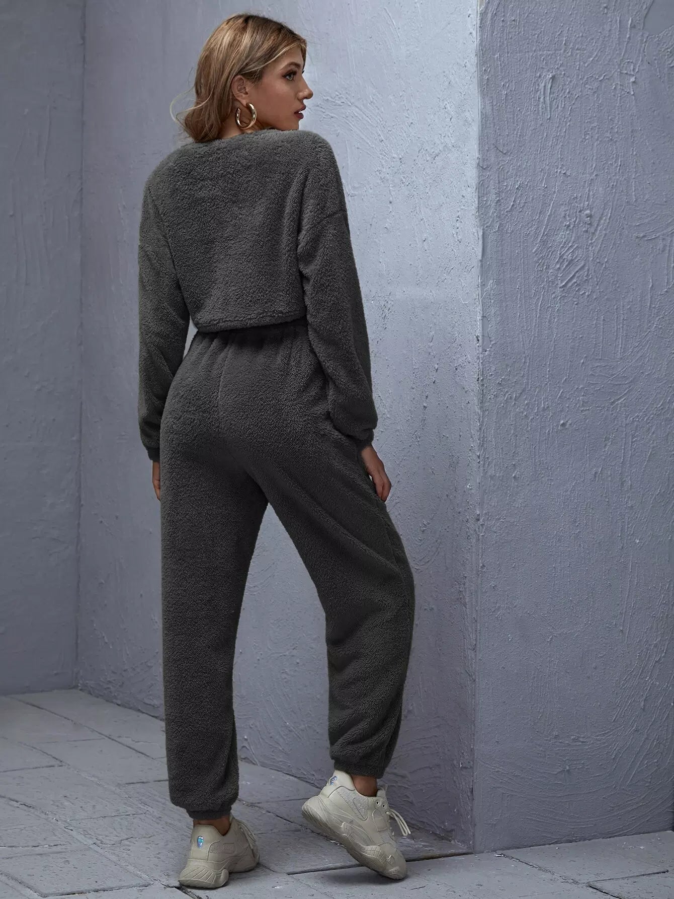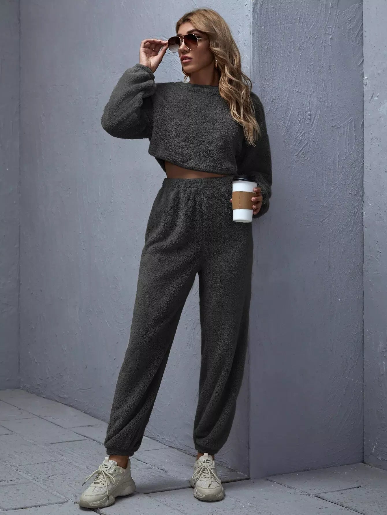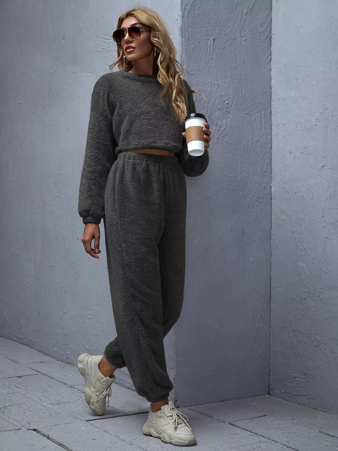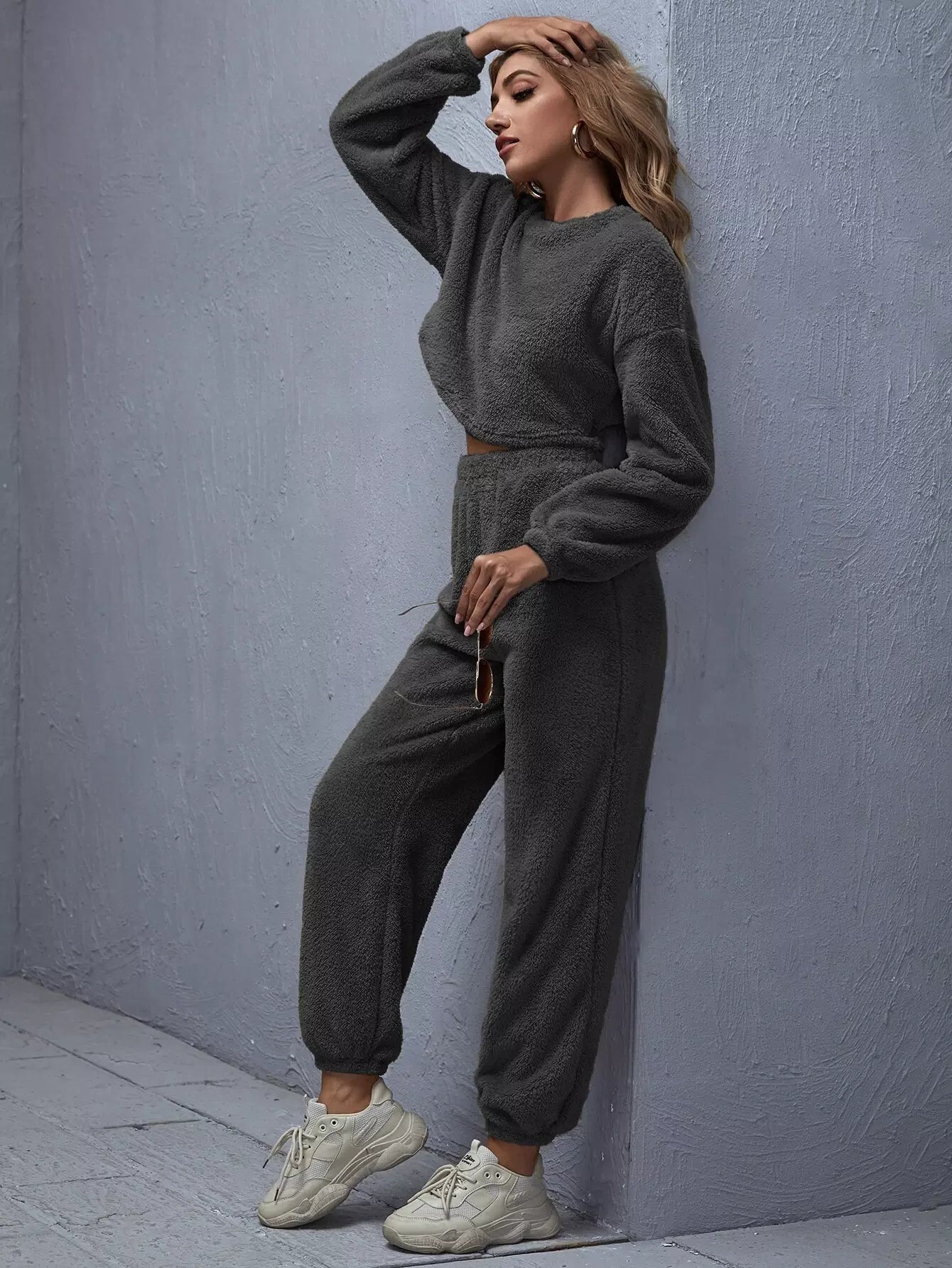 طقم كنزة صوفية منسدلة الأكتاف منسدلة الكتفين وبنطال رياضي