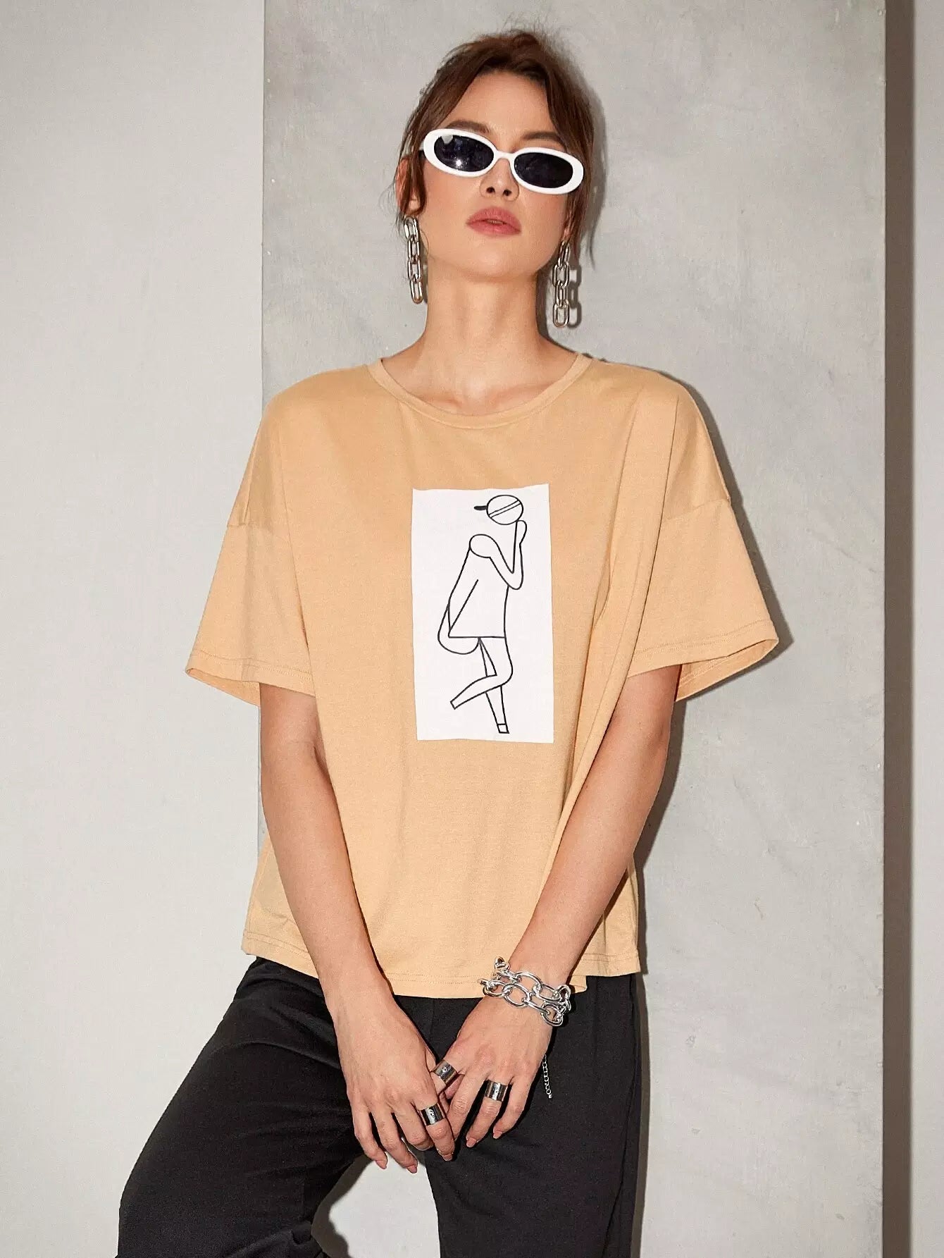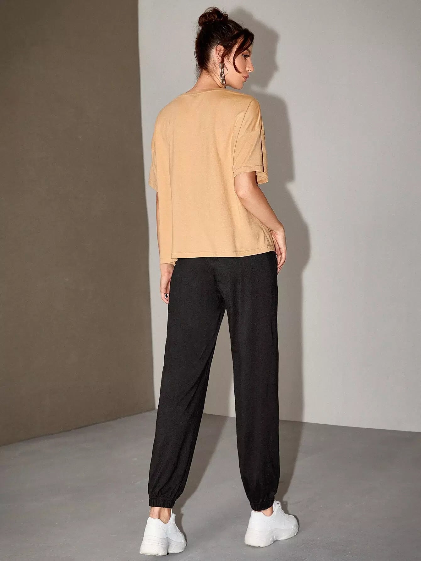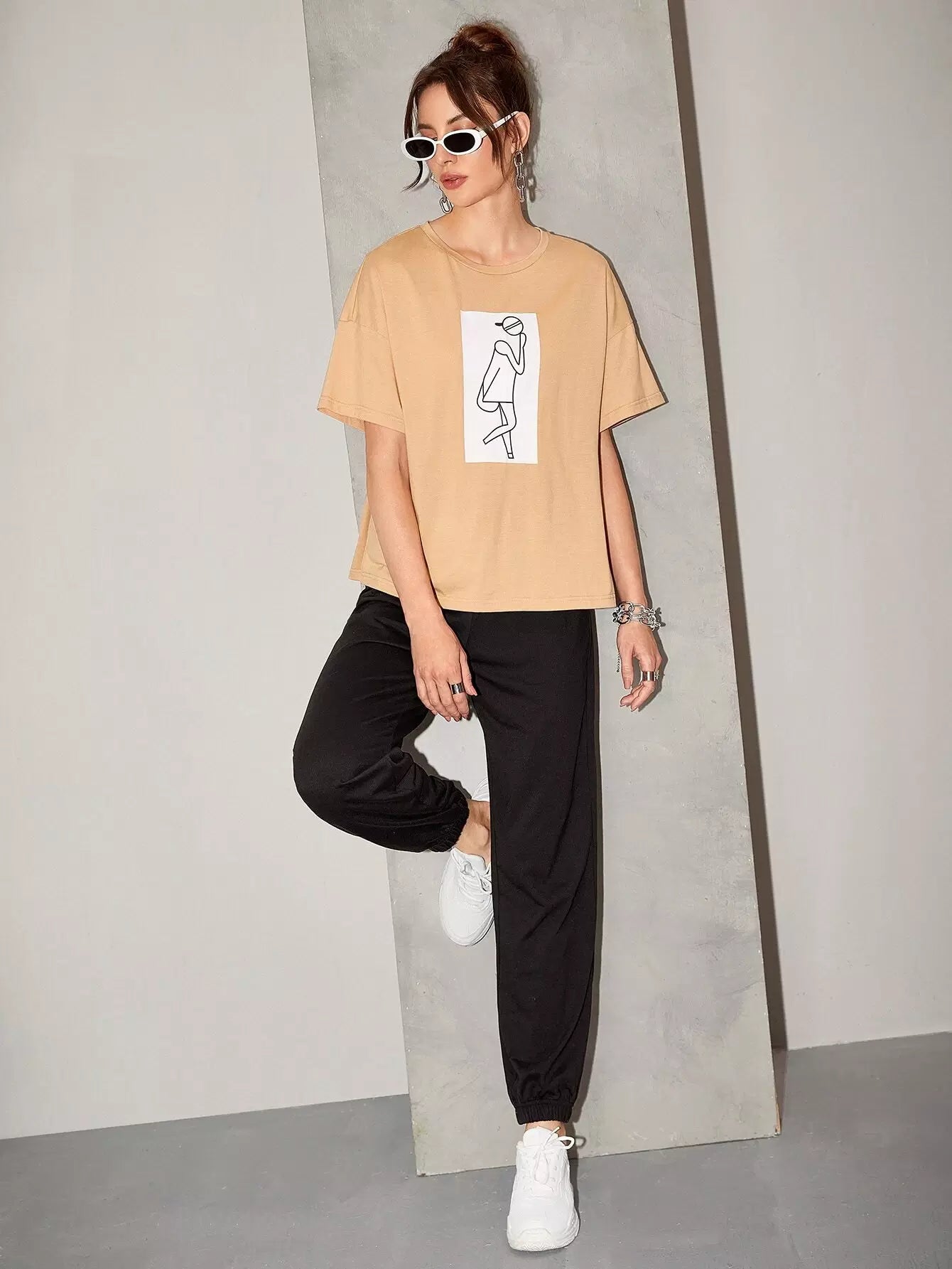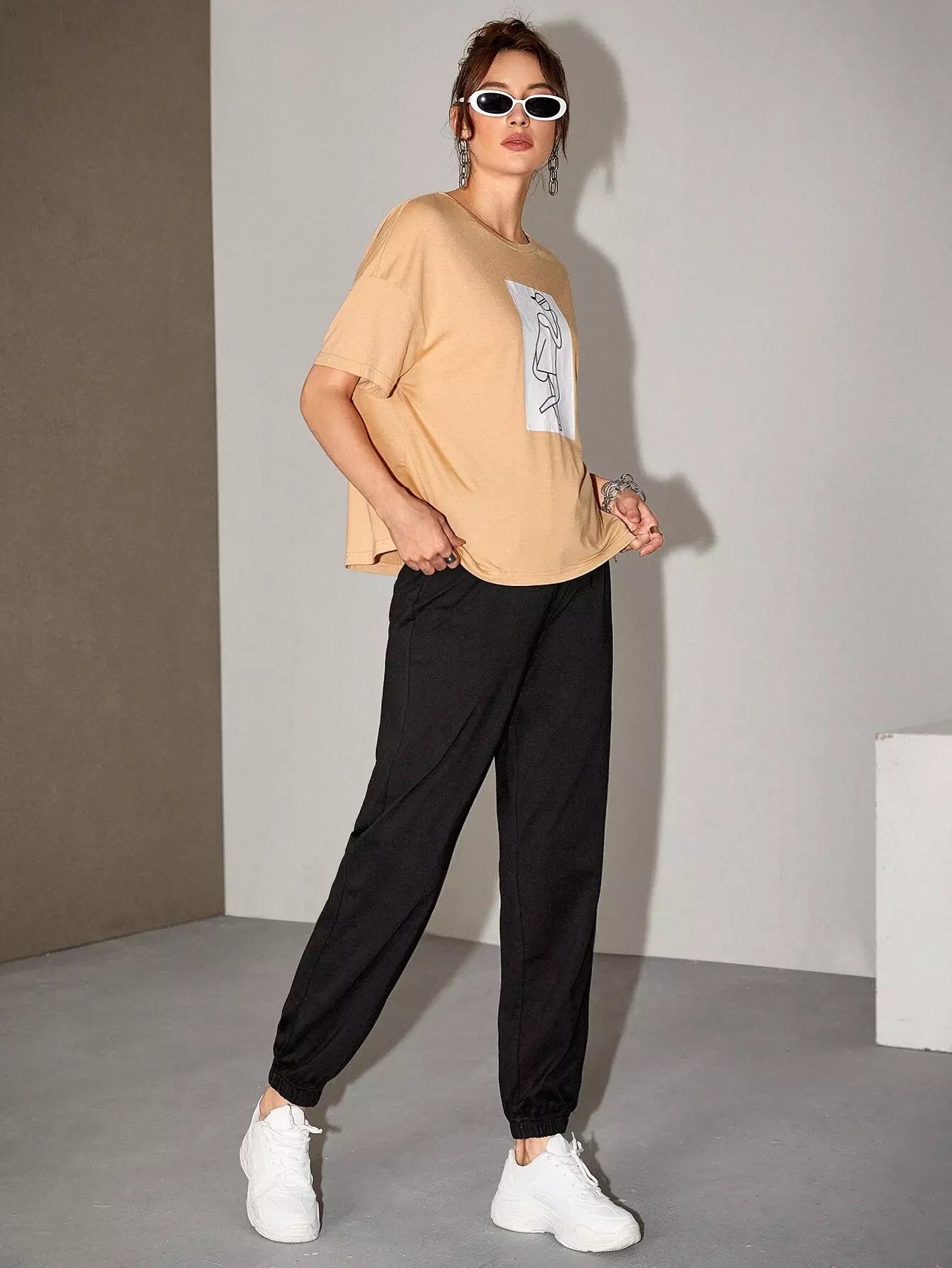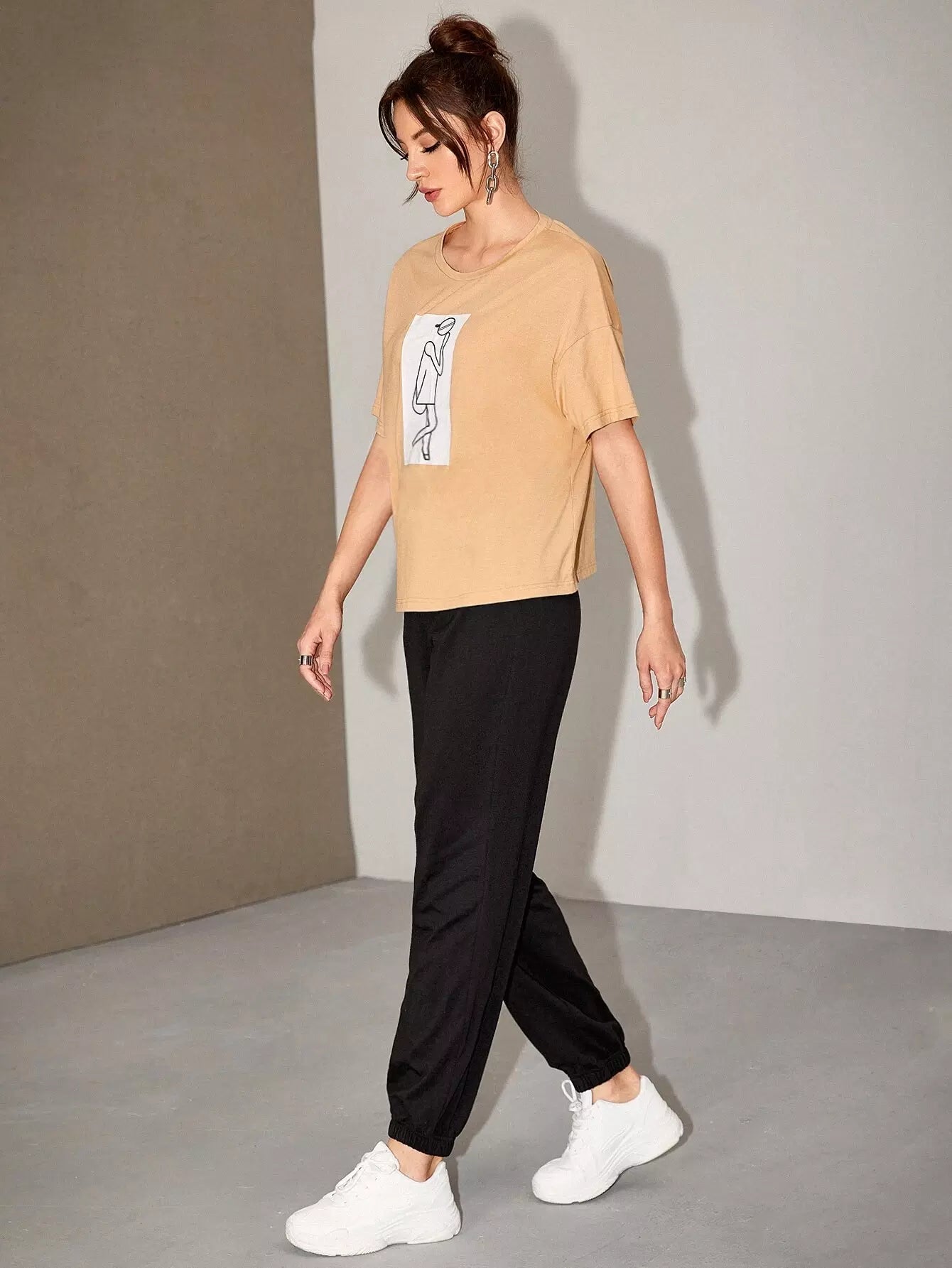 تي شيرت وبنطلون منسدل الأكتاف على شكل جرافيك