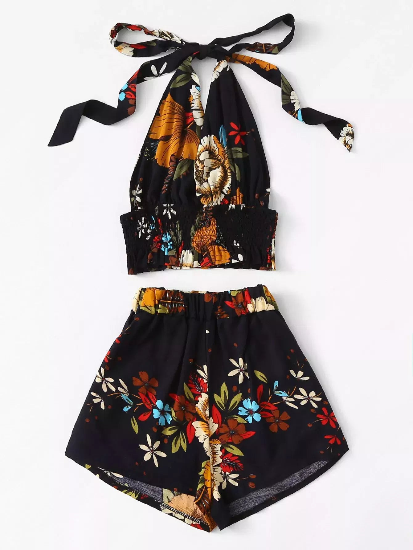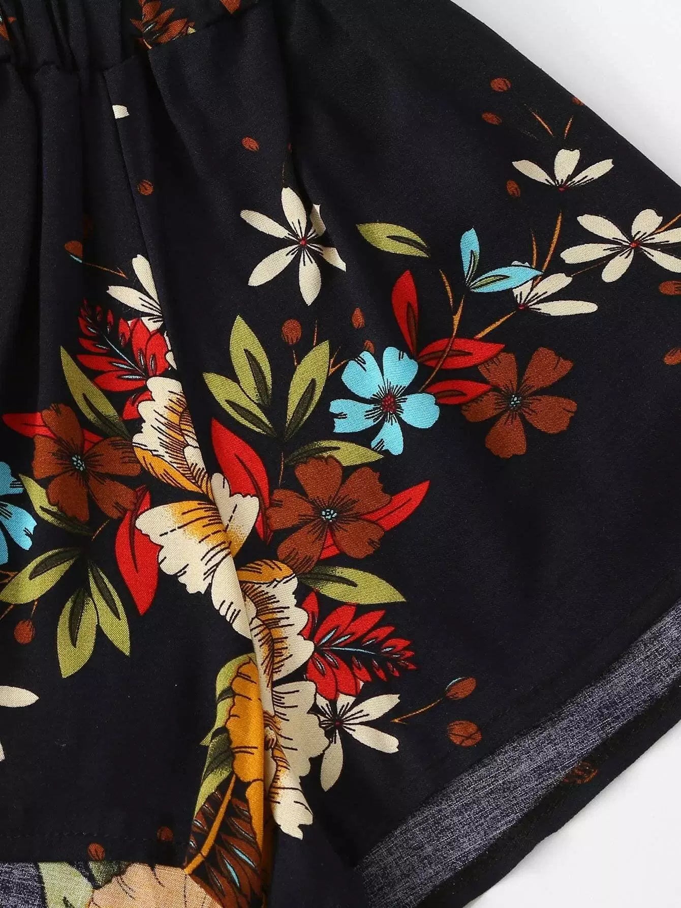 طقم بلوزة وشورت قصير بطبعة زهور بطبعة زهور مع طقم رداء قصير