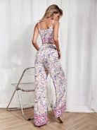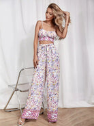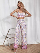 طقم قميص وسروال مزين بالزهور بدون حزام