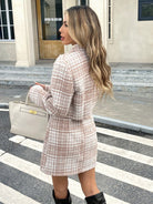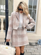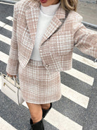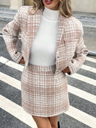 Frenchy 2pcs Plaid Women Front Button Long Sleeve Lapel Neck Minimalist Top And Skirt Warmth Tweed Set,With