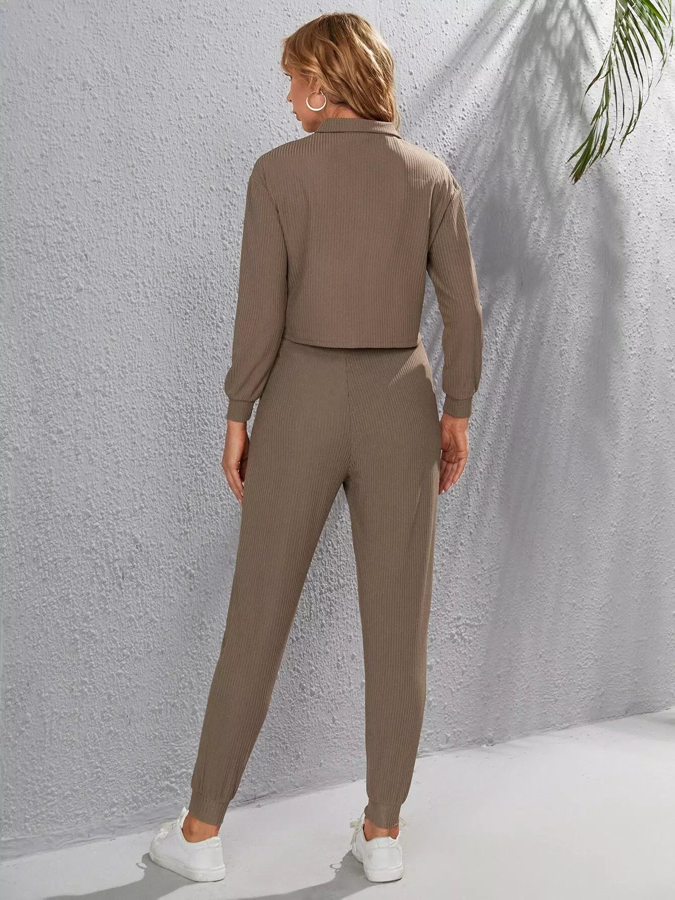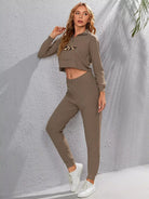 بلوزة وبنطال قصير بنصف جيب مطبوع عليه رسومات جرافيك بجيب مفتوح بسحاب نصف مزود بسحّاب