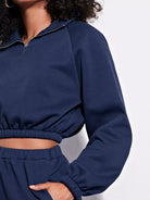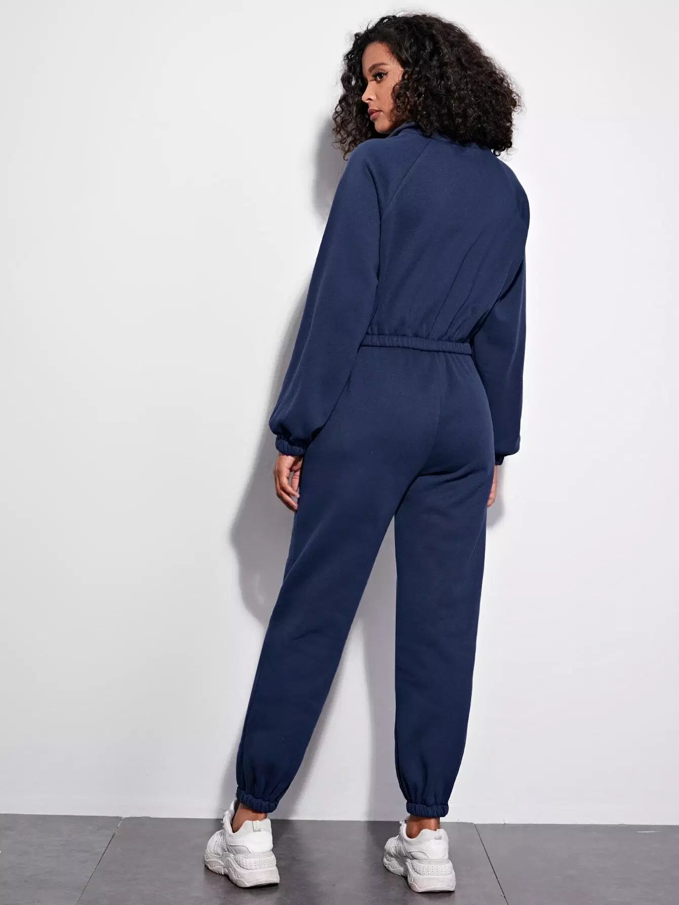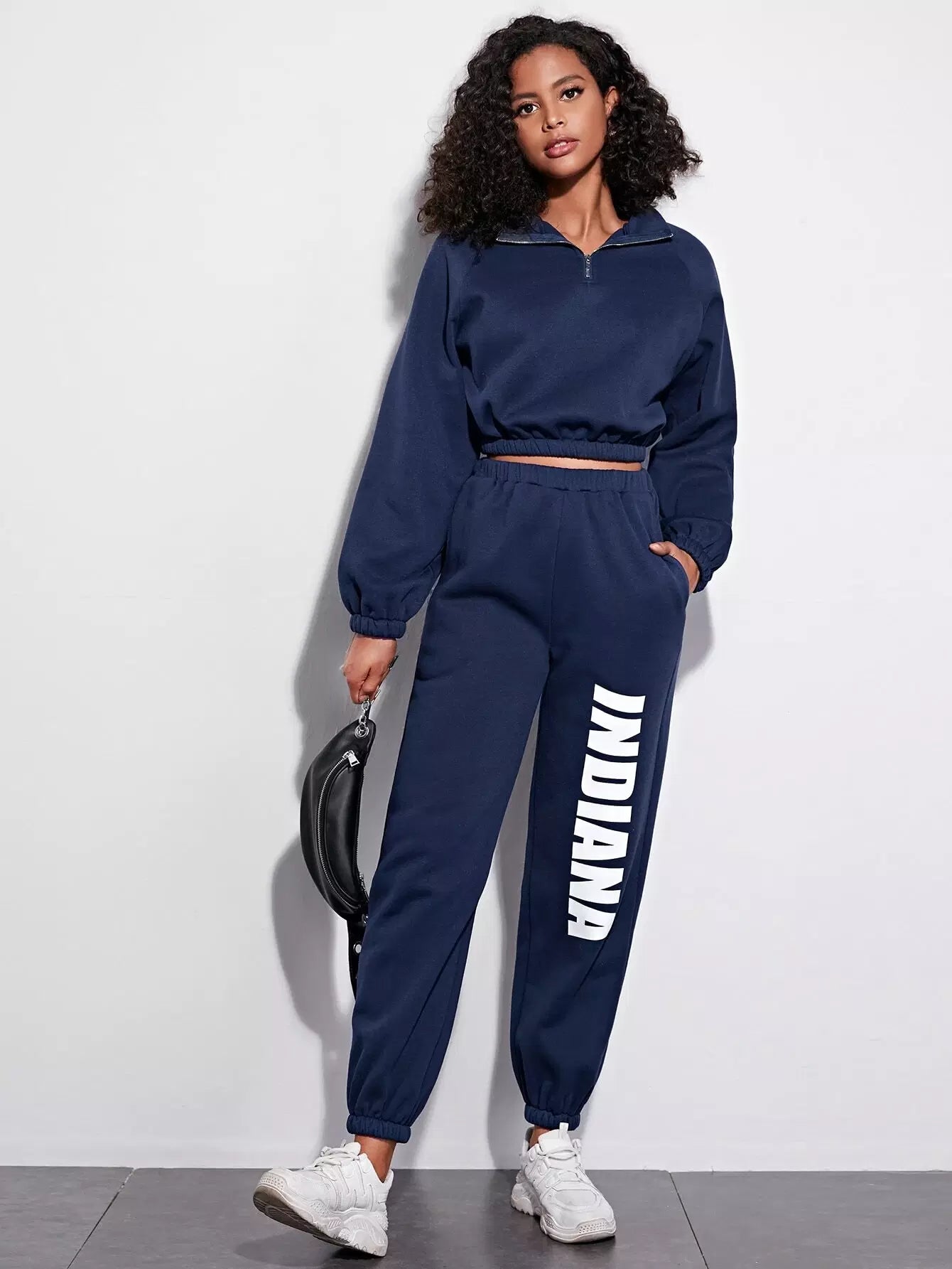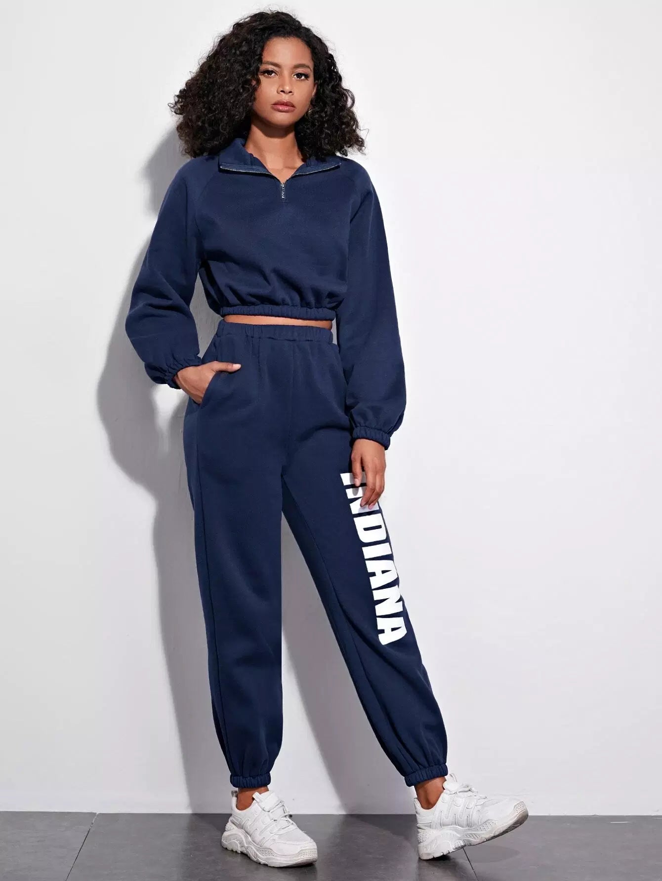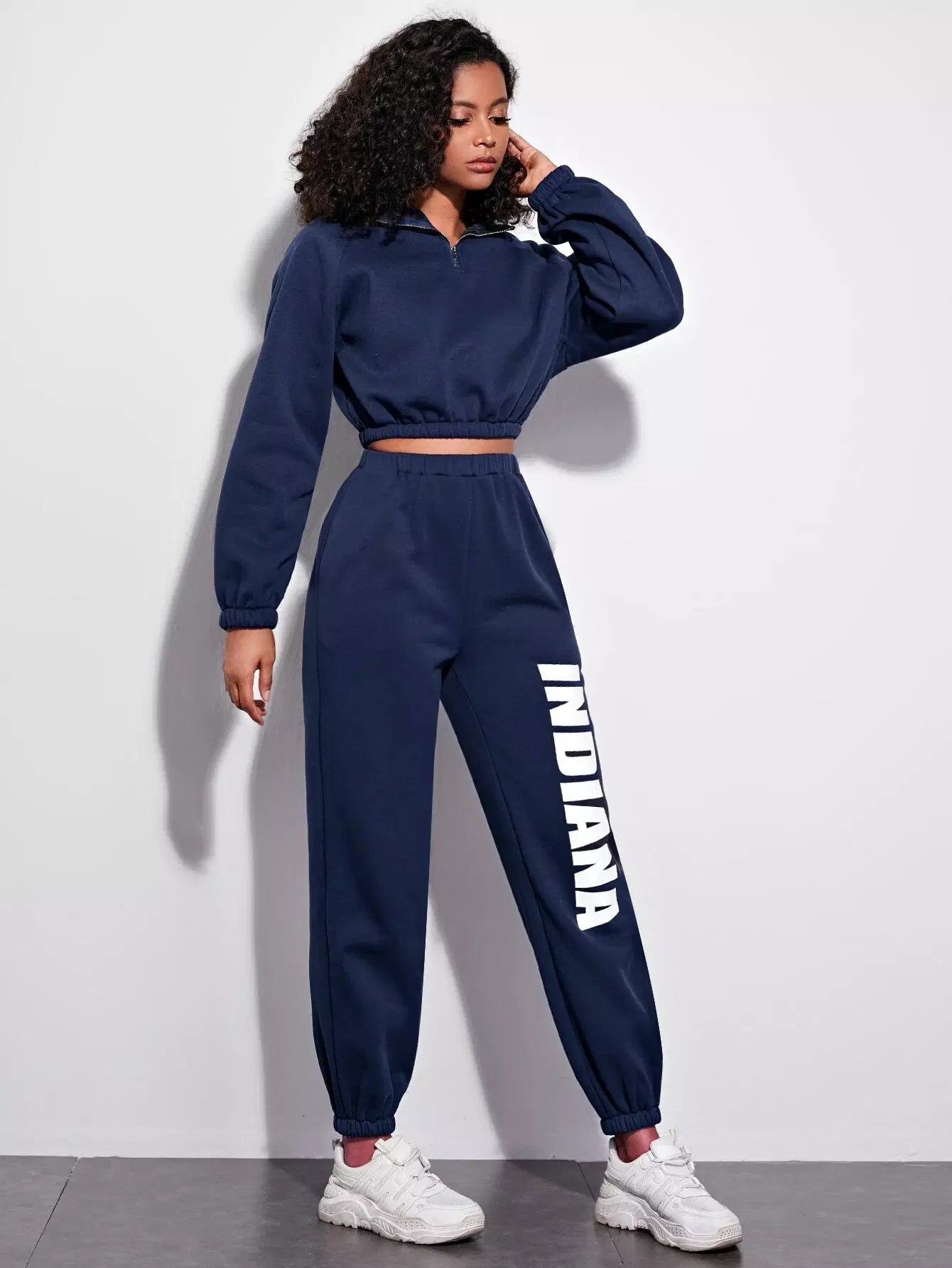 طقم سويت شيرت وبنطال رياضي بأكمام نصف سحاب بأكمام نصف ضيقة