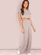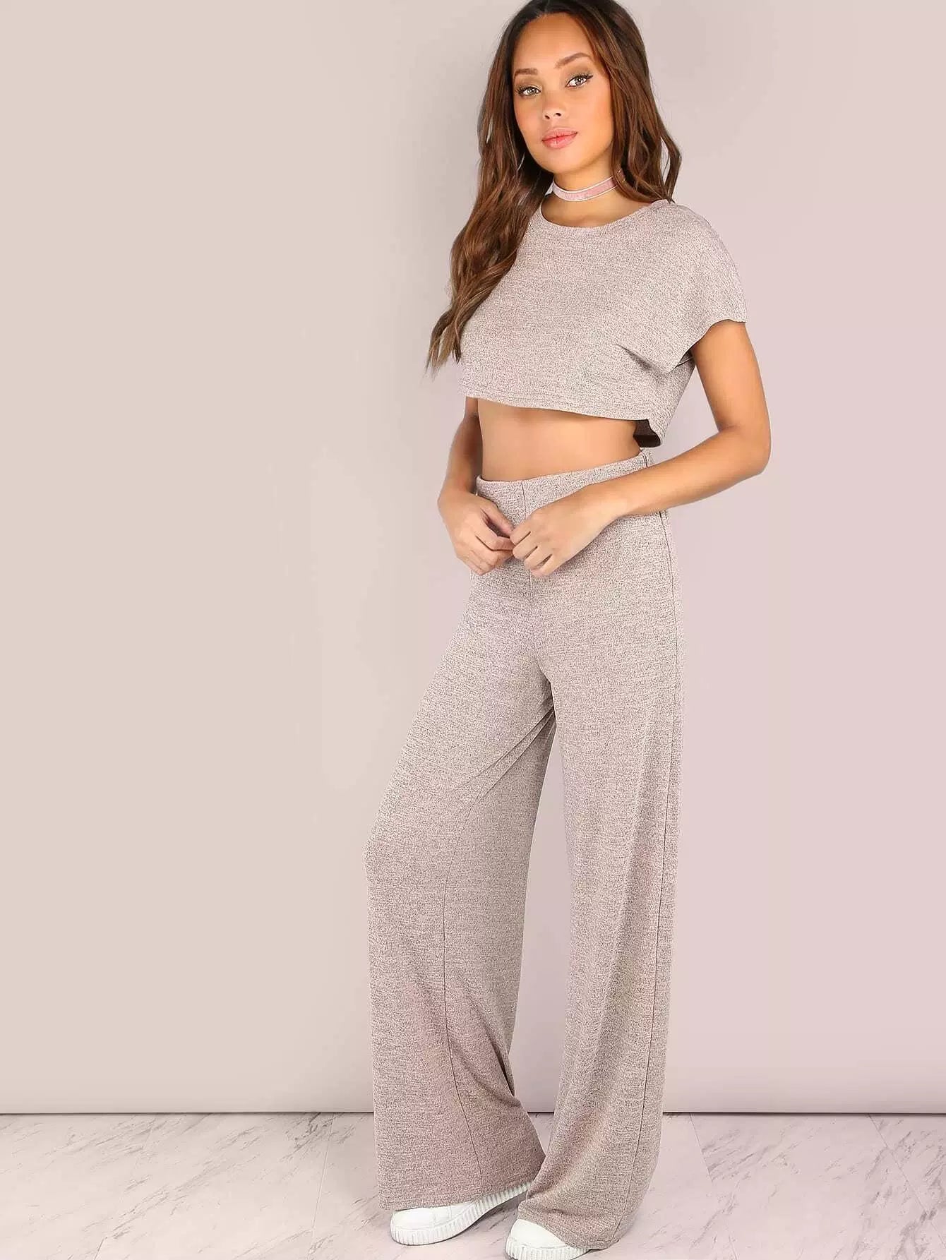 طقم بنطال رياضي قصير وواسع الساق منقط باللون BLUSH