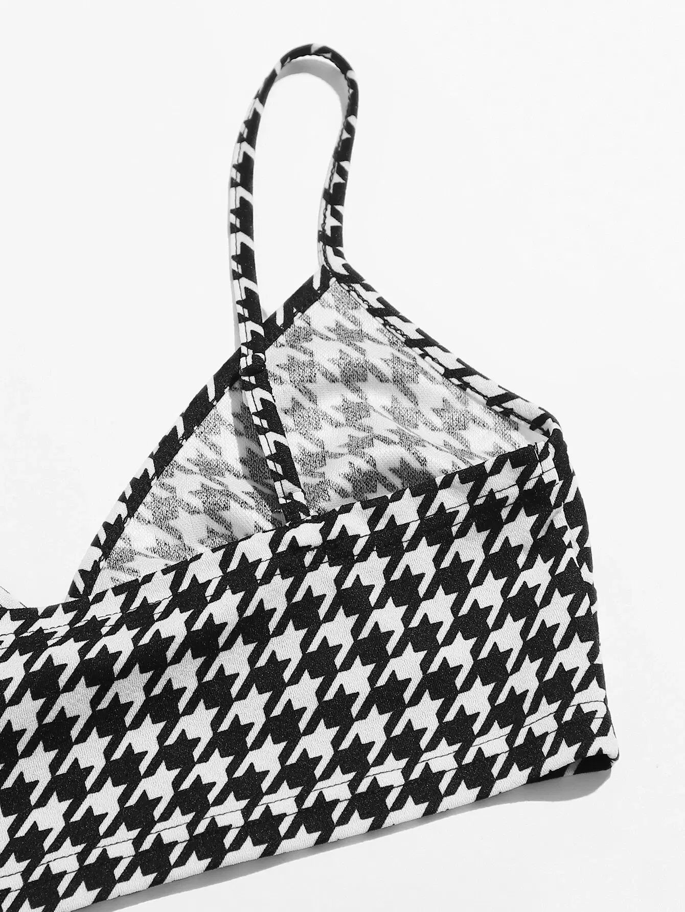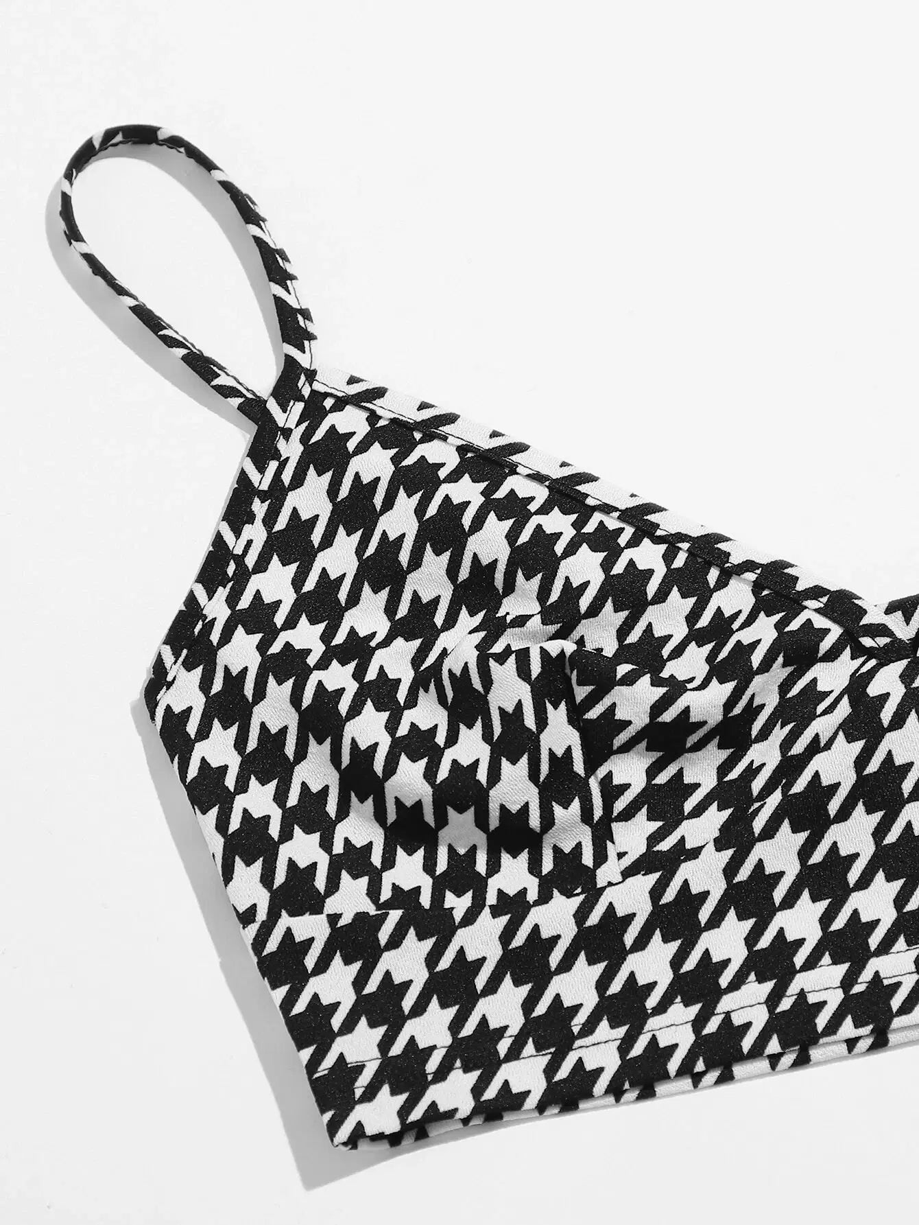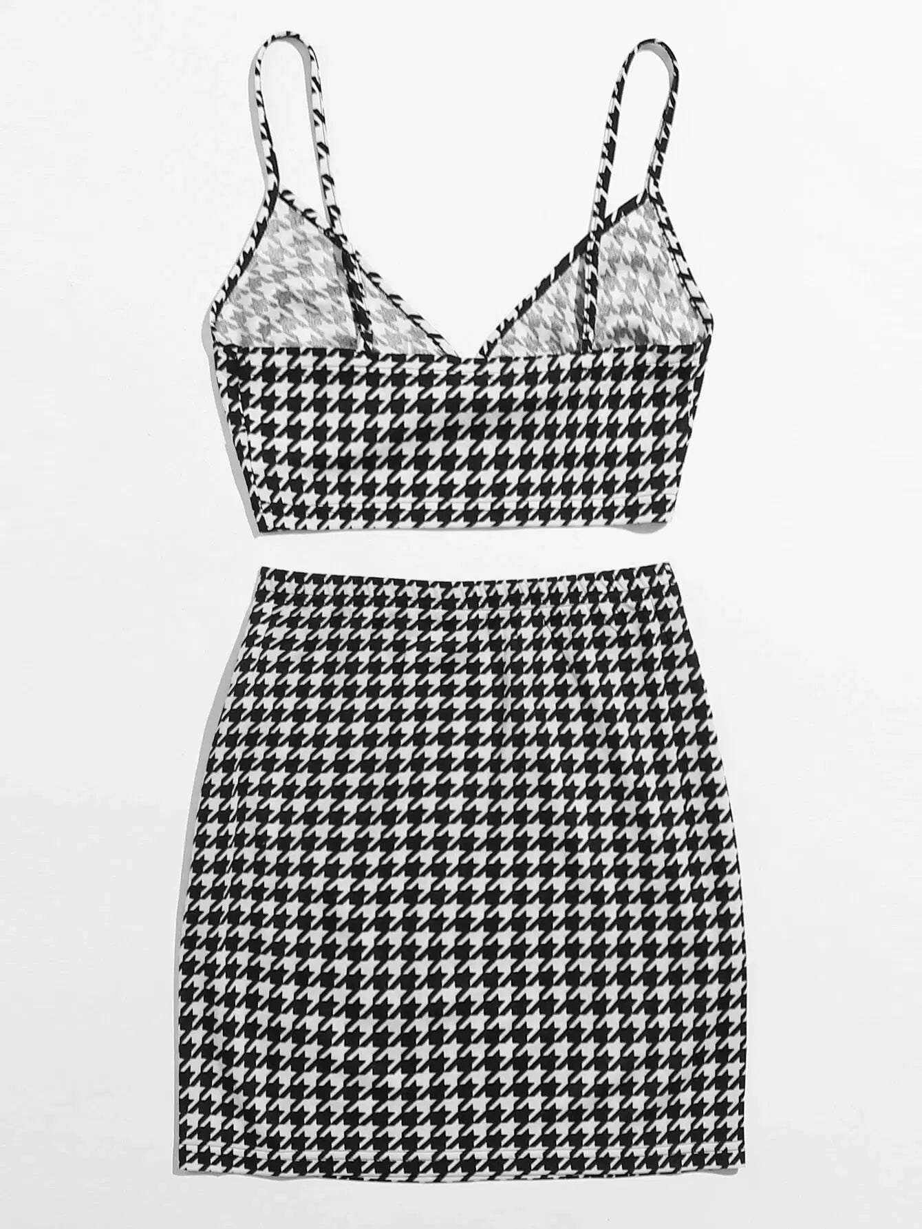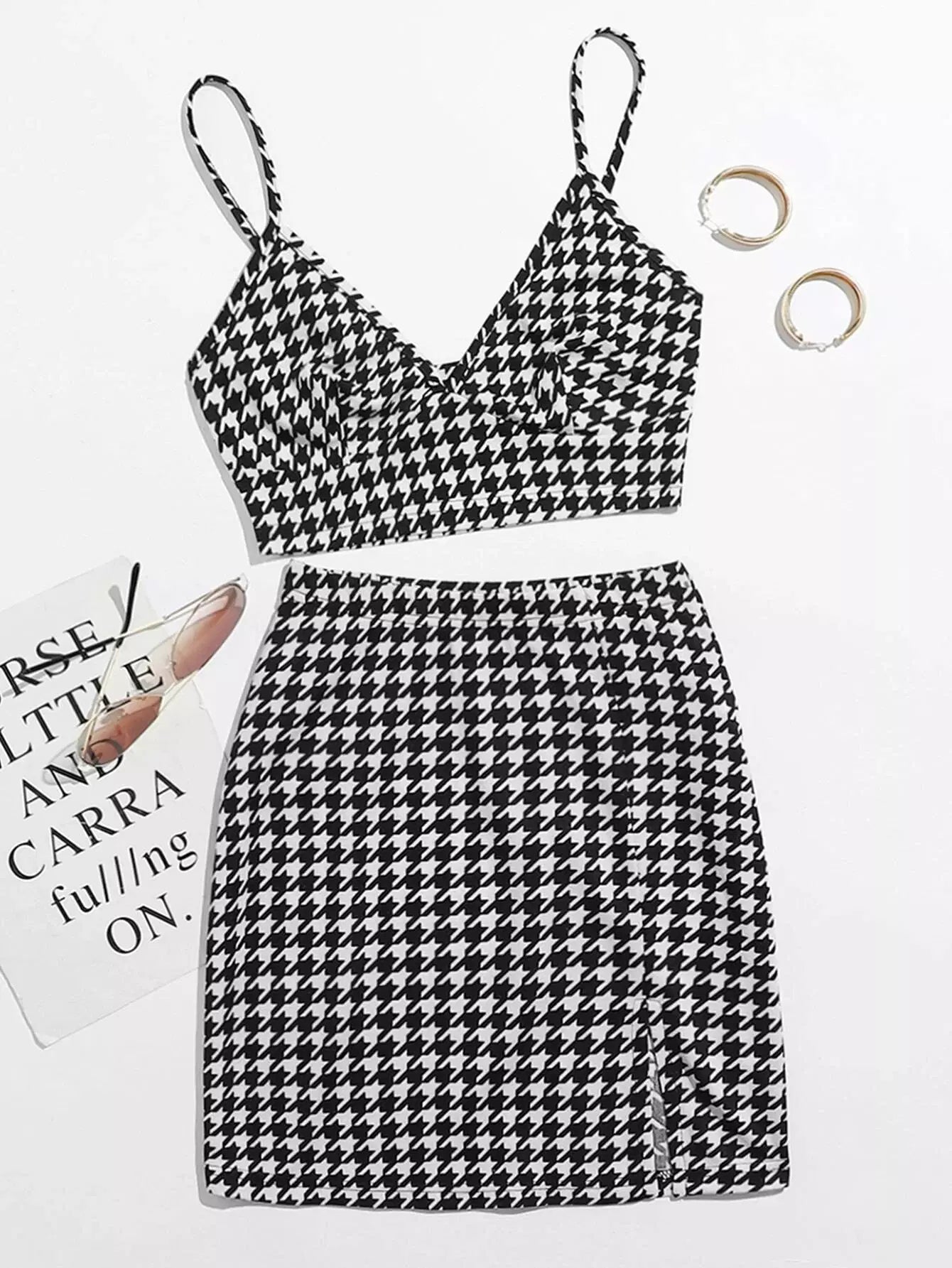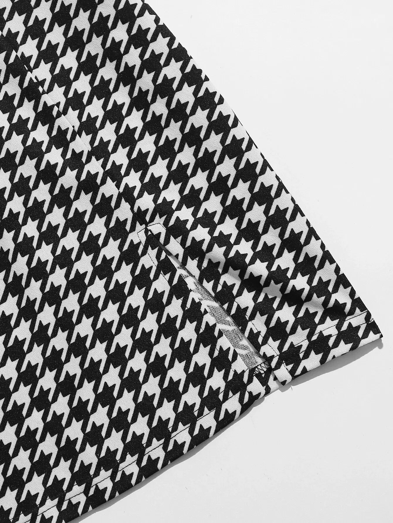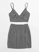 للنساء - طقم قميص قصير بنقشة Houndstooth وتنورة بحاشية مقسمة