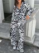 INAWLY 2pcs/Set Women Fashion Zebra Print Long Sleeve Shirt And Pants Suit, Autumn