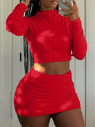 INAWLY Sexy Slim Stand Collar T-Shirt And Skirt 2 Pieces Set For Women