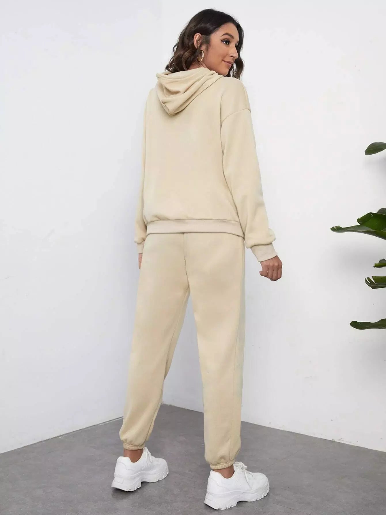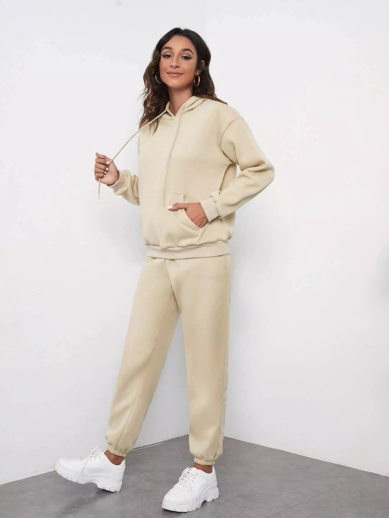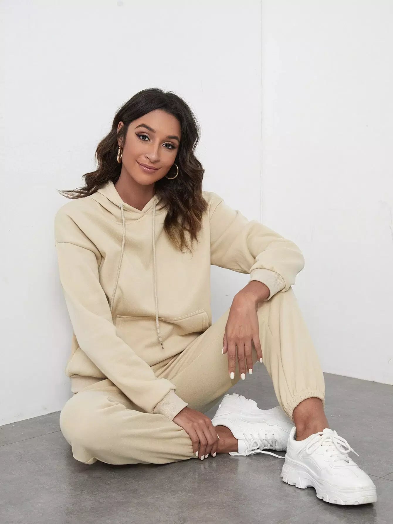 كنغر بجيب منسدل على الكتف برباط منسدل هودي وسراويل رياضية
