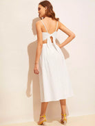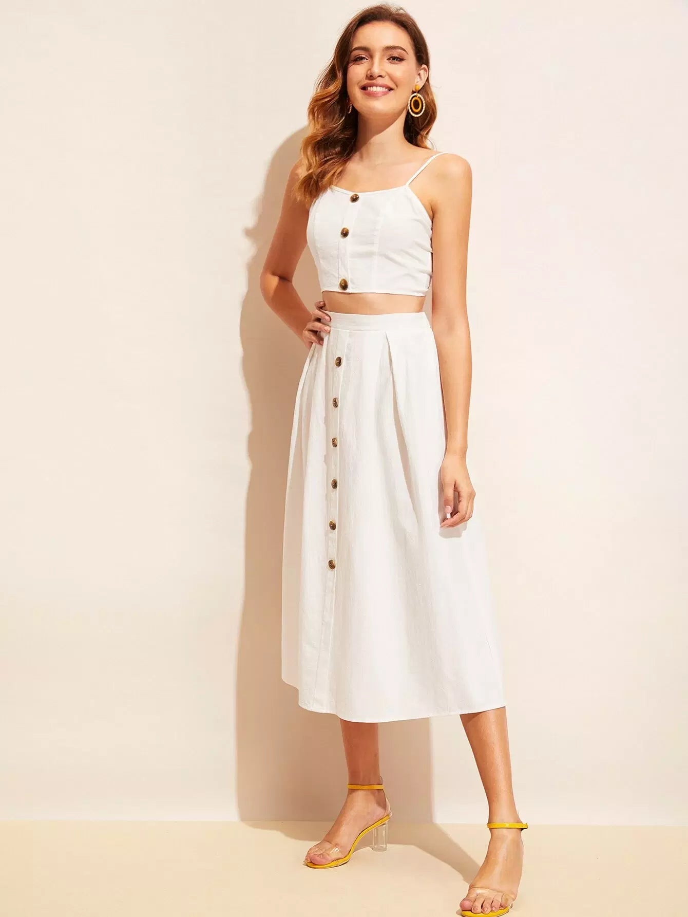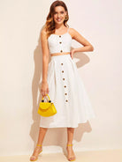 طقم قميص قصير قصير بعقدة من الخلف وتنورة بأزرار من الأمام
