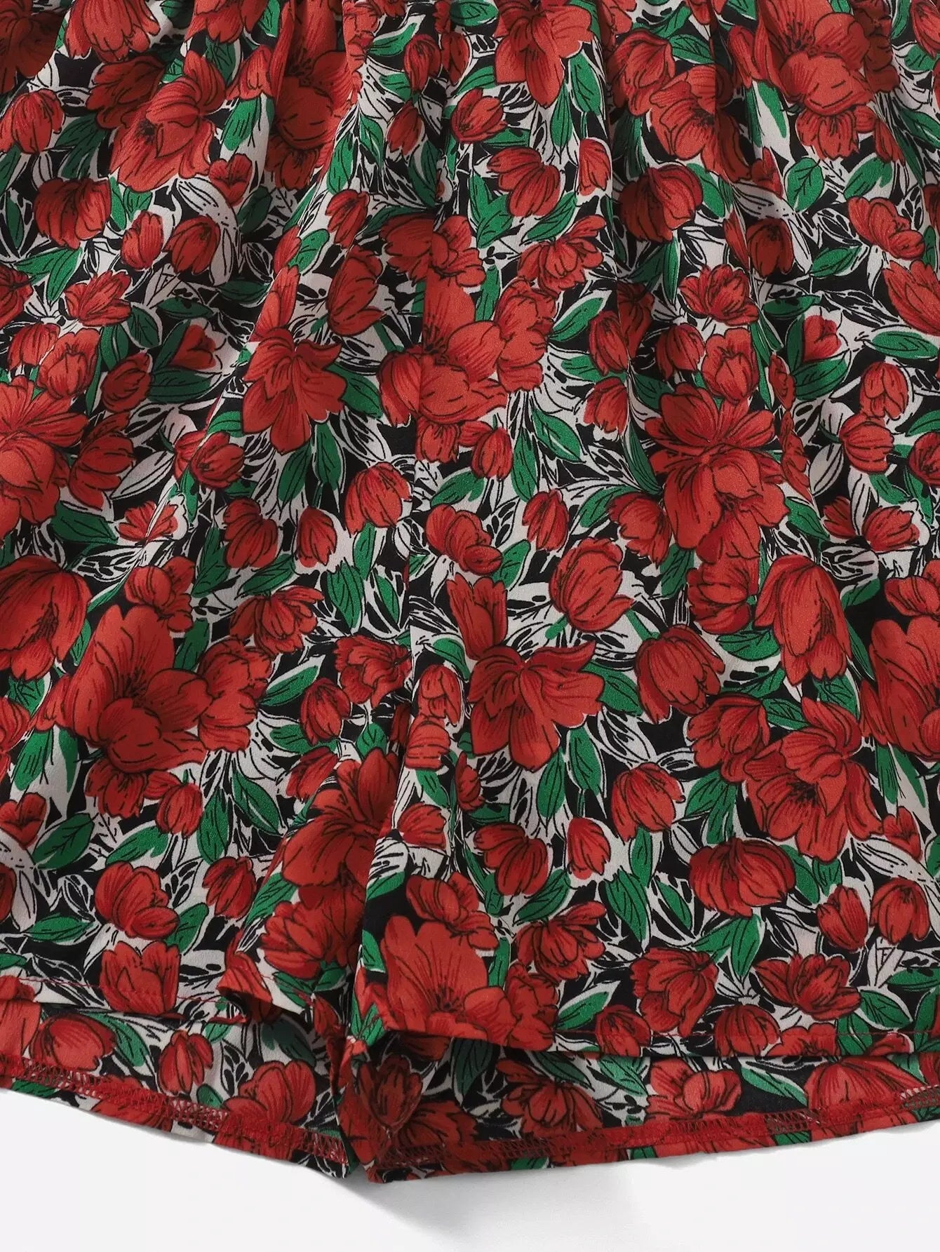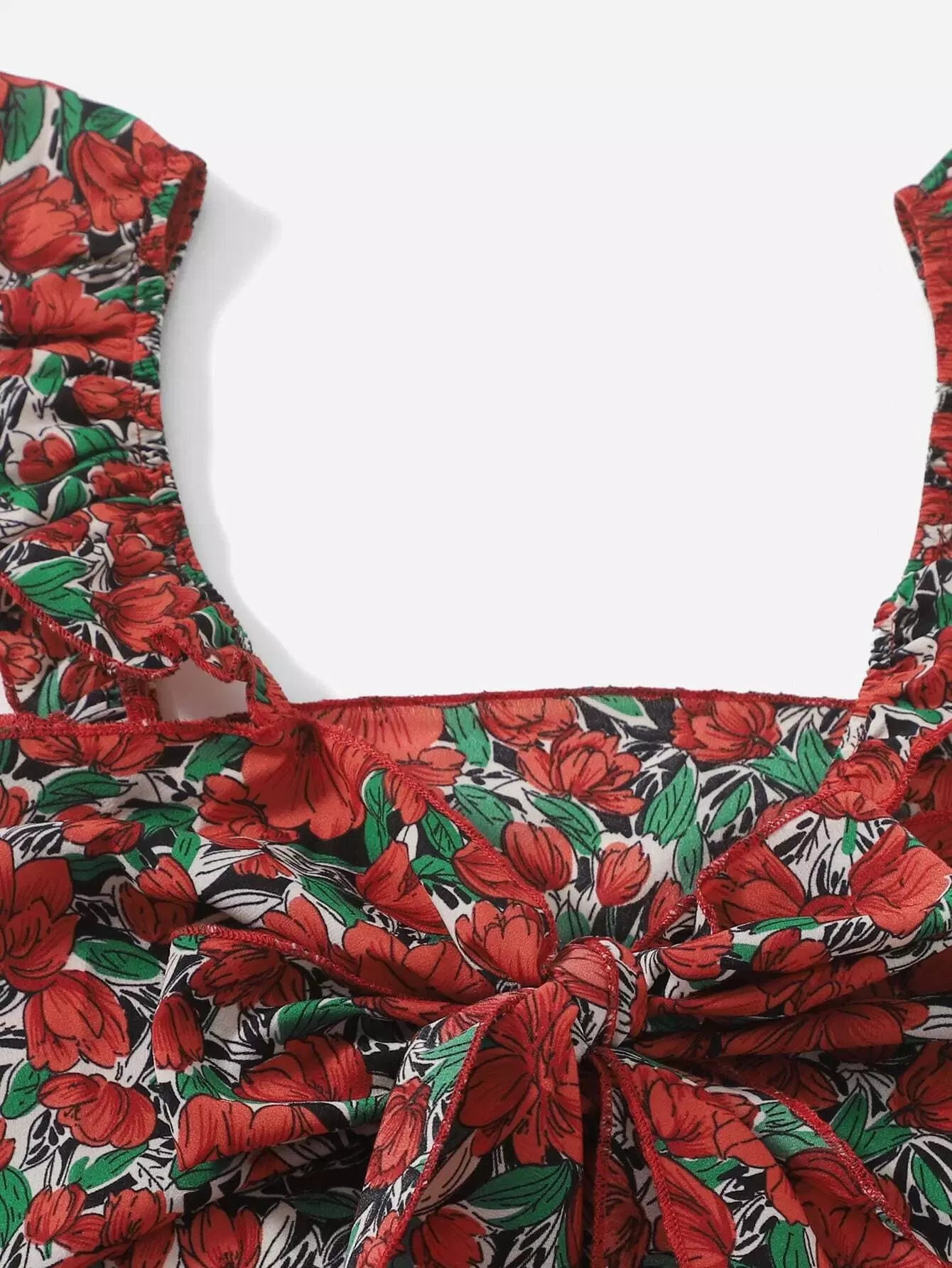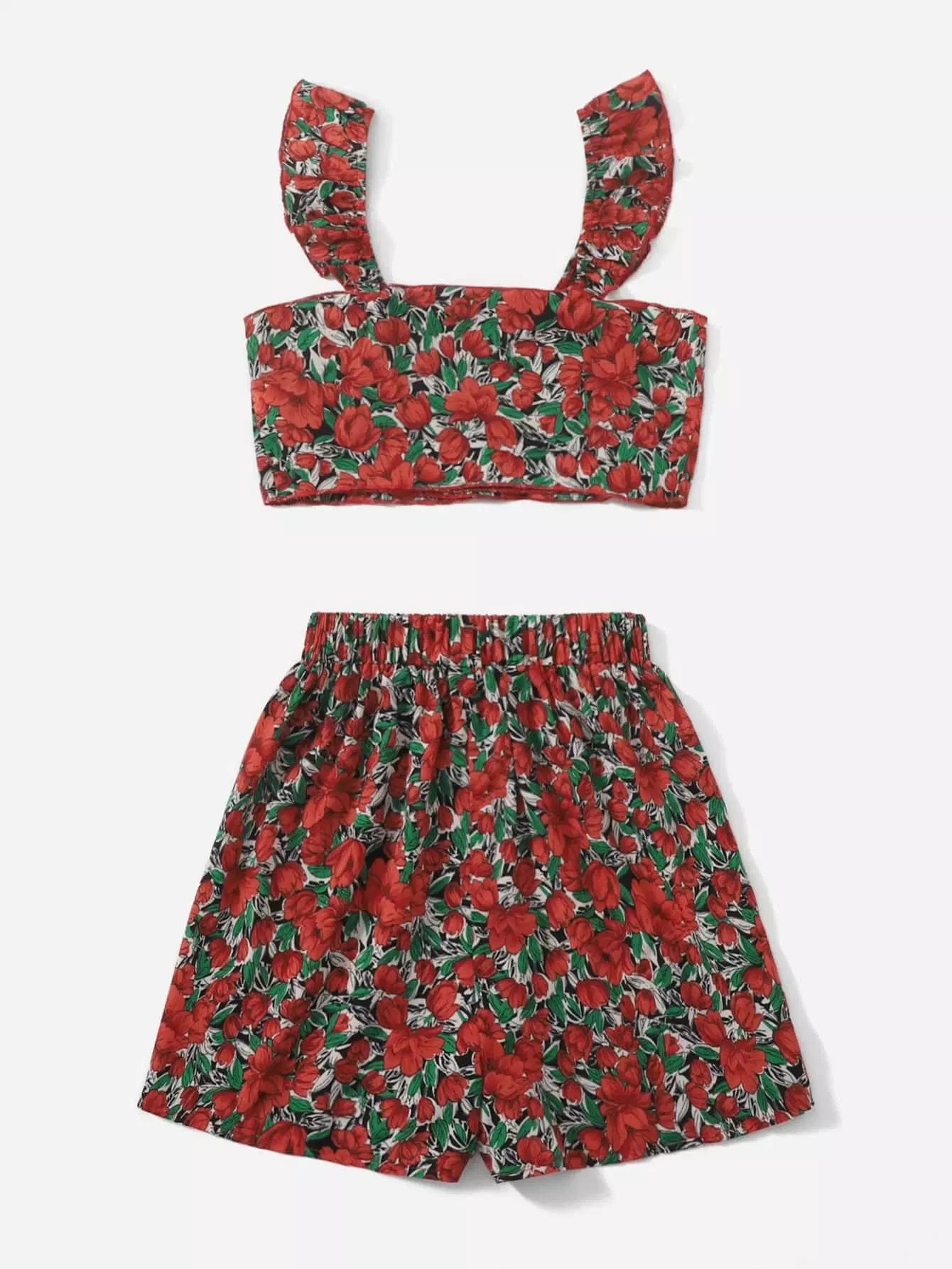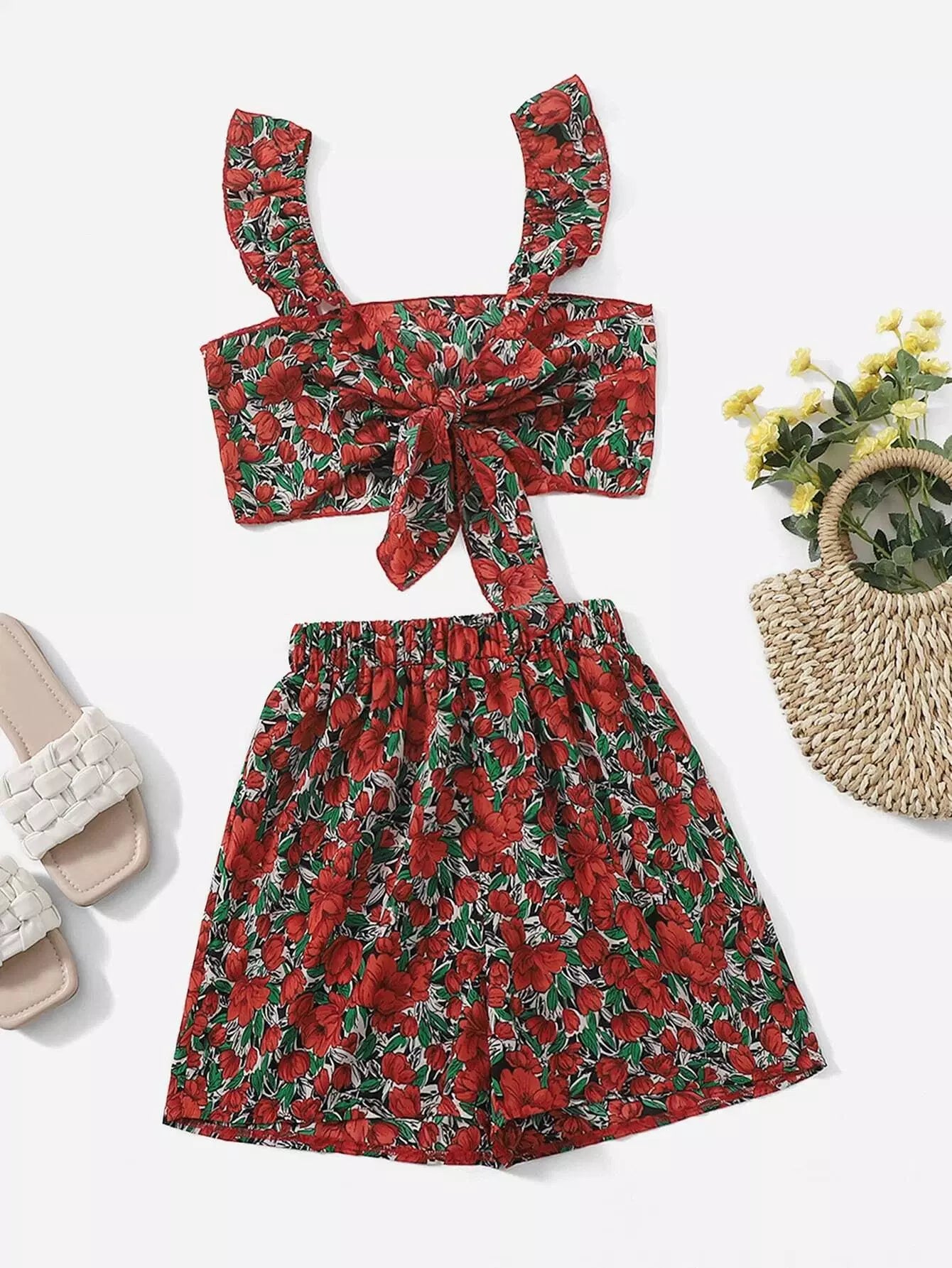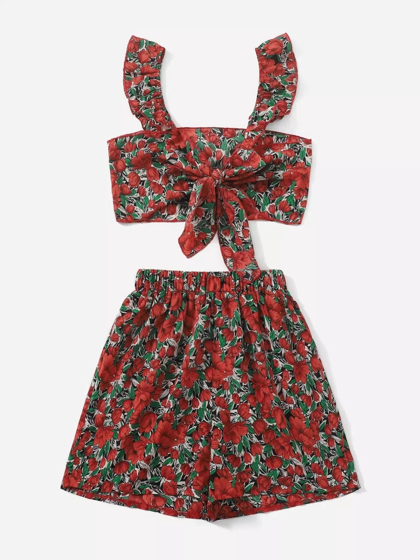 قميص قصير وقميص قصير مزين بعقدة أمامية زهرية وسروال قصير