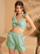 بلوزة كامي منقط بعقدة أمامية مع شورت