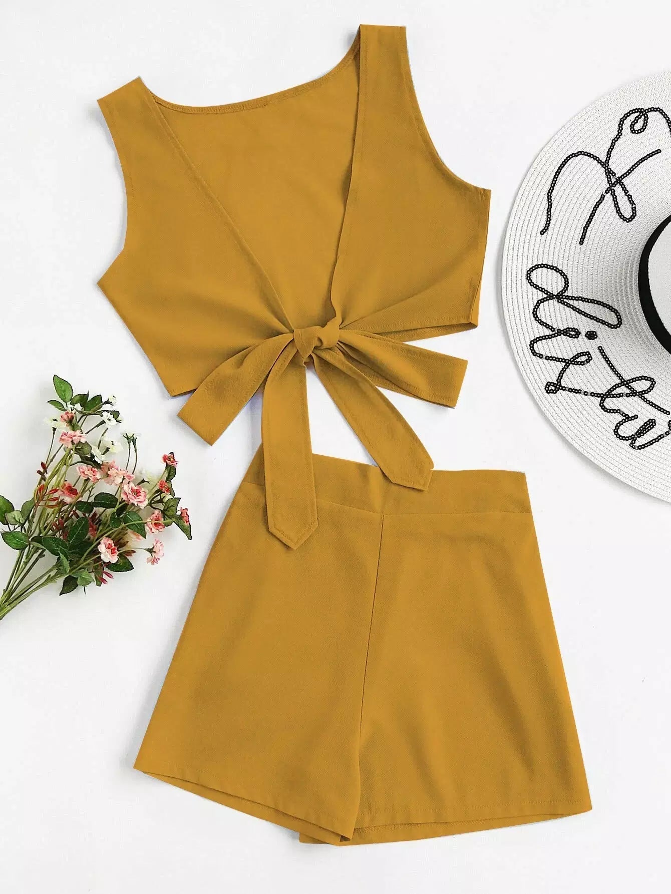 تانك قصير قصير معقود متعدد الاتجاهات مع شورت قصير