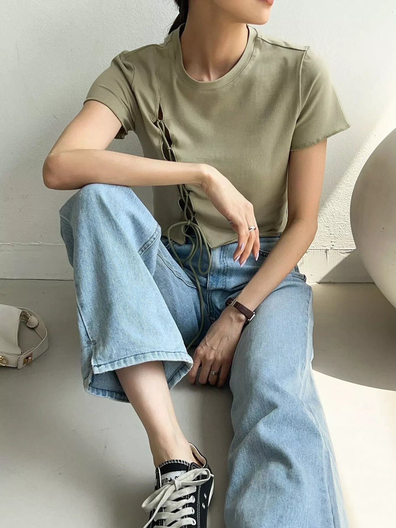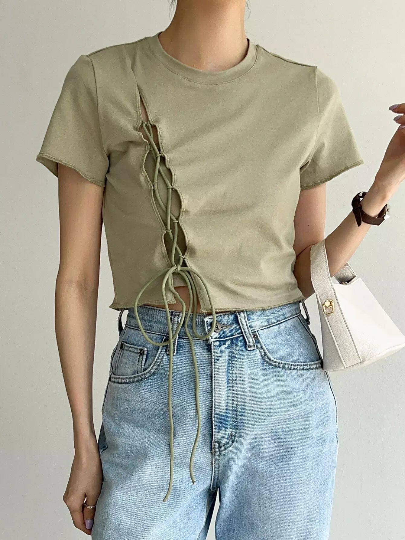 تي شيرت وقميص بدون أكمام مزين بنقشة الخس
