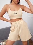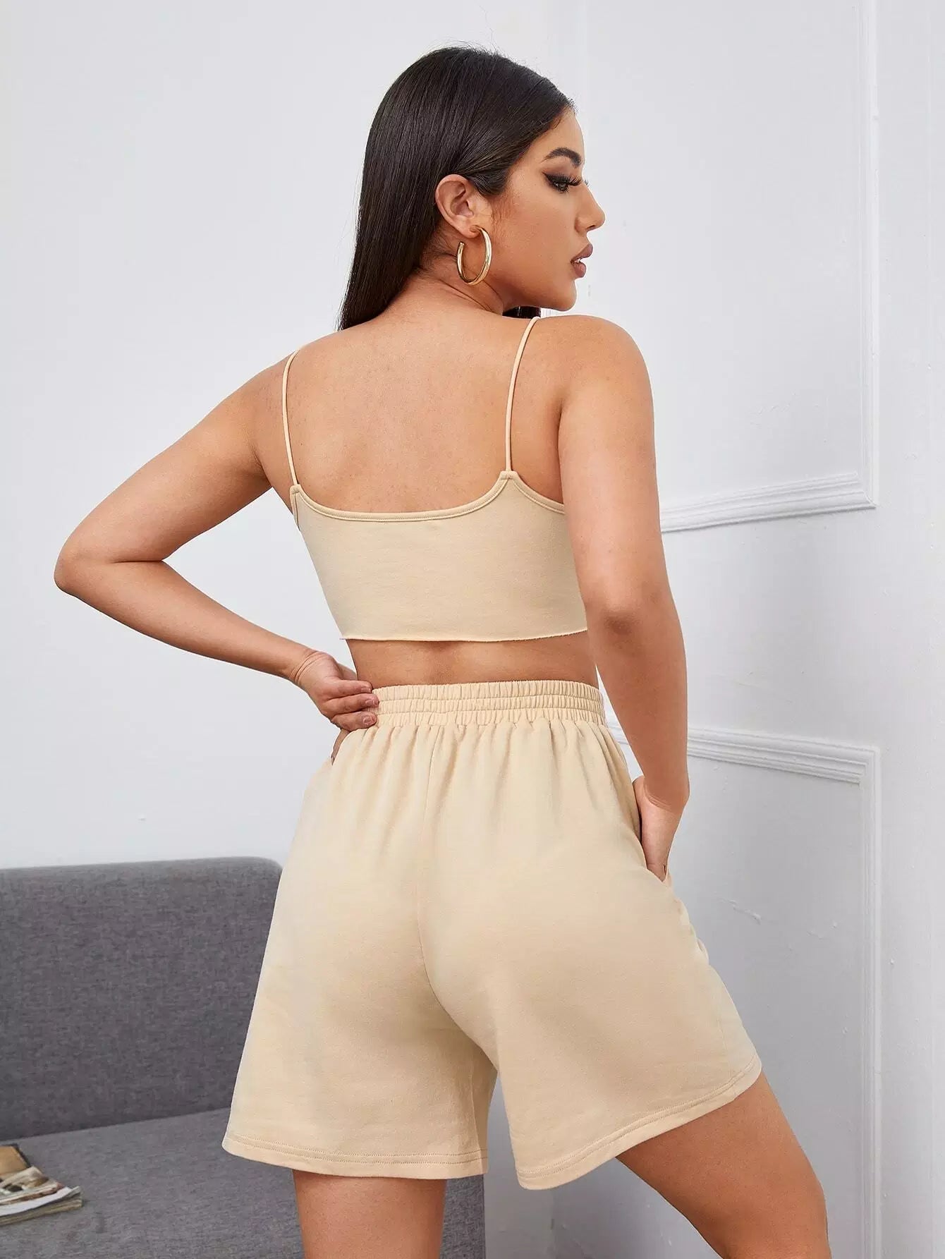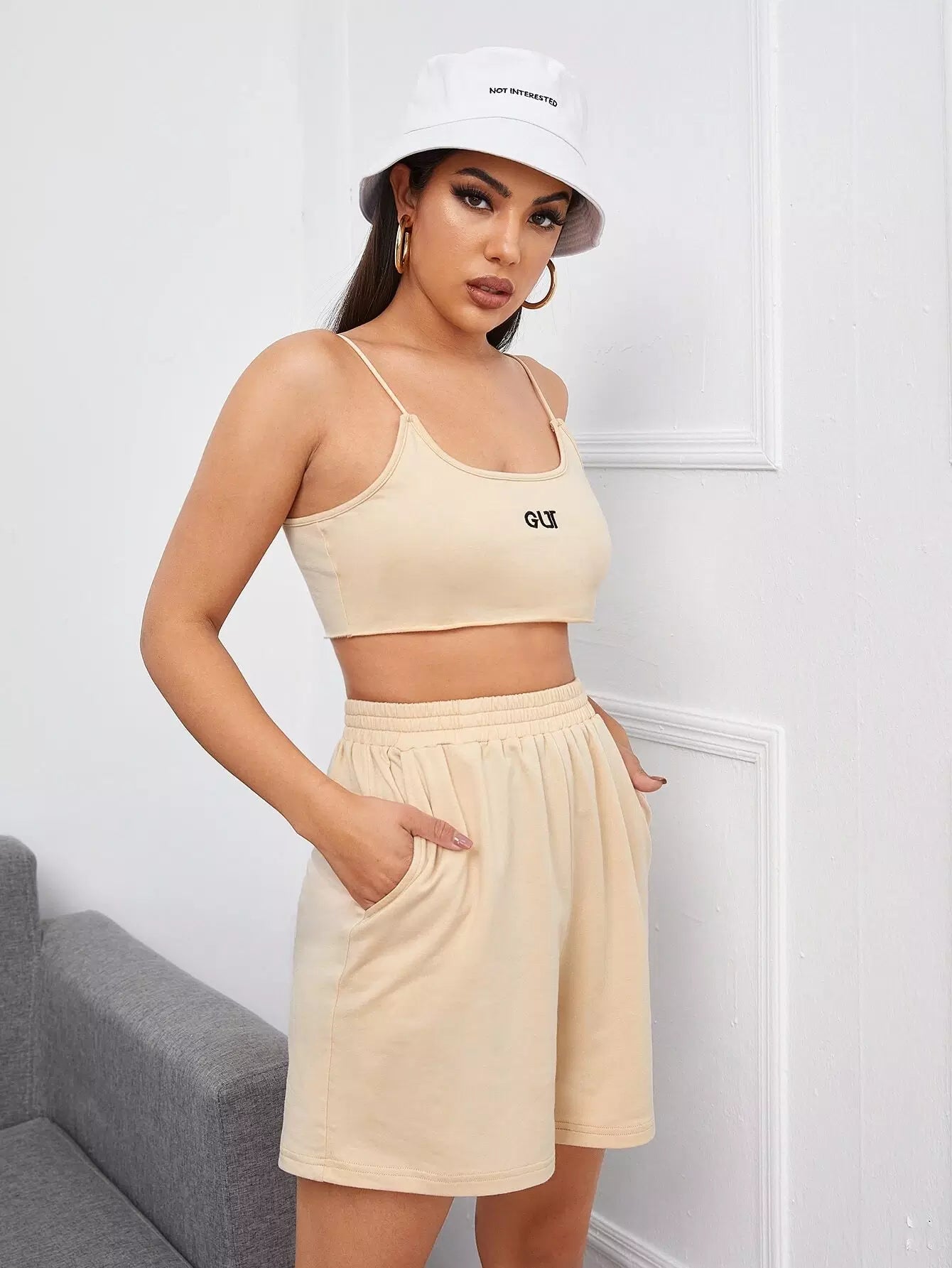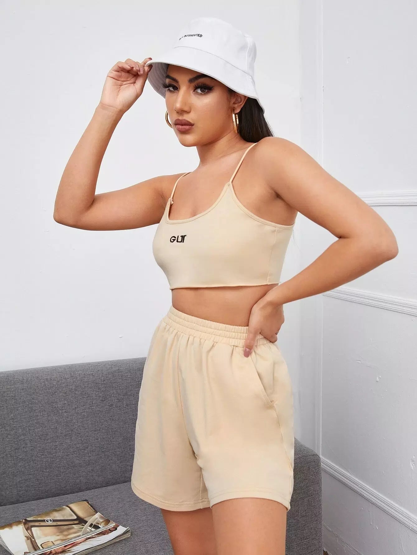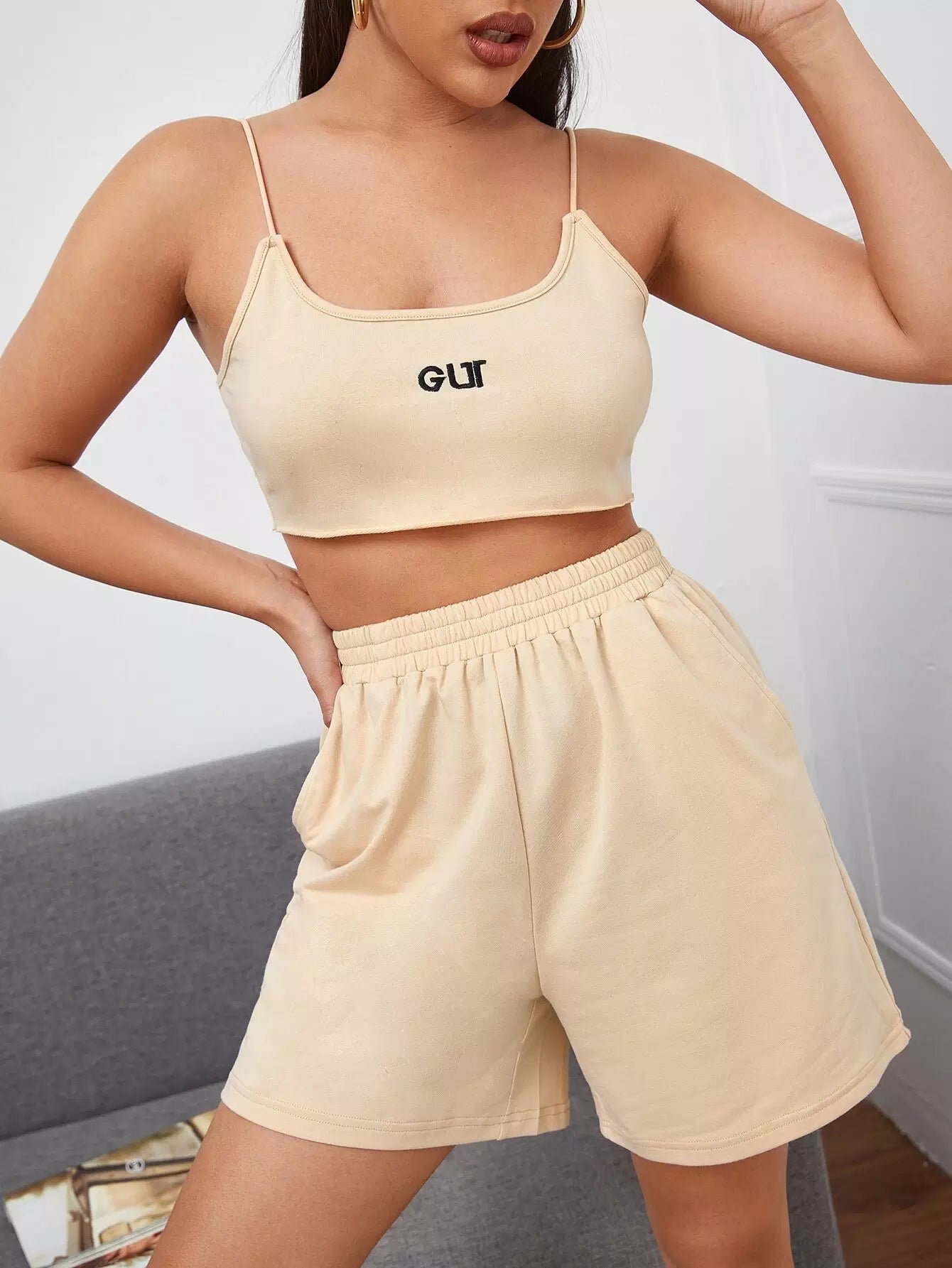 طقم قميص كامي بتطريز حروف وشورت رياضي