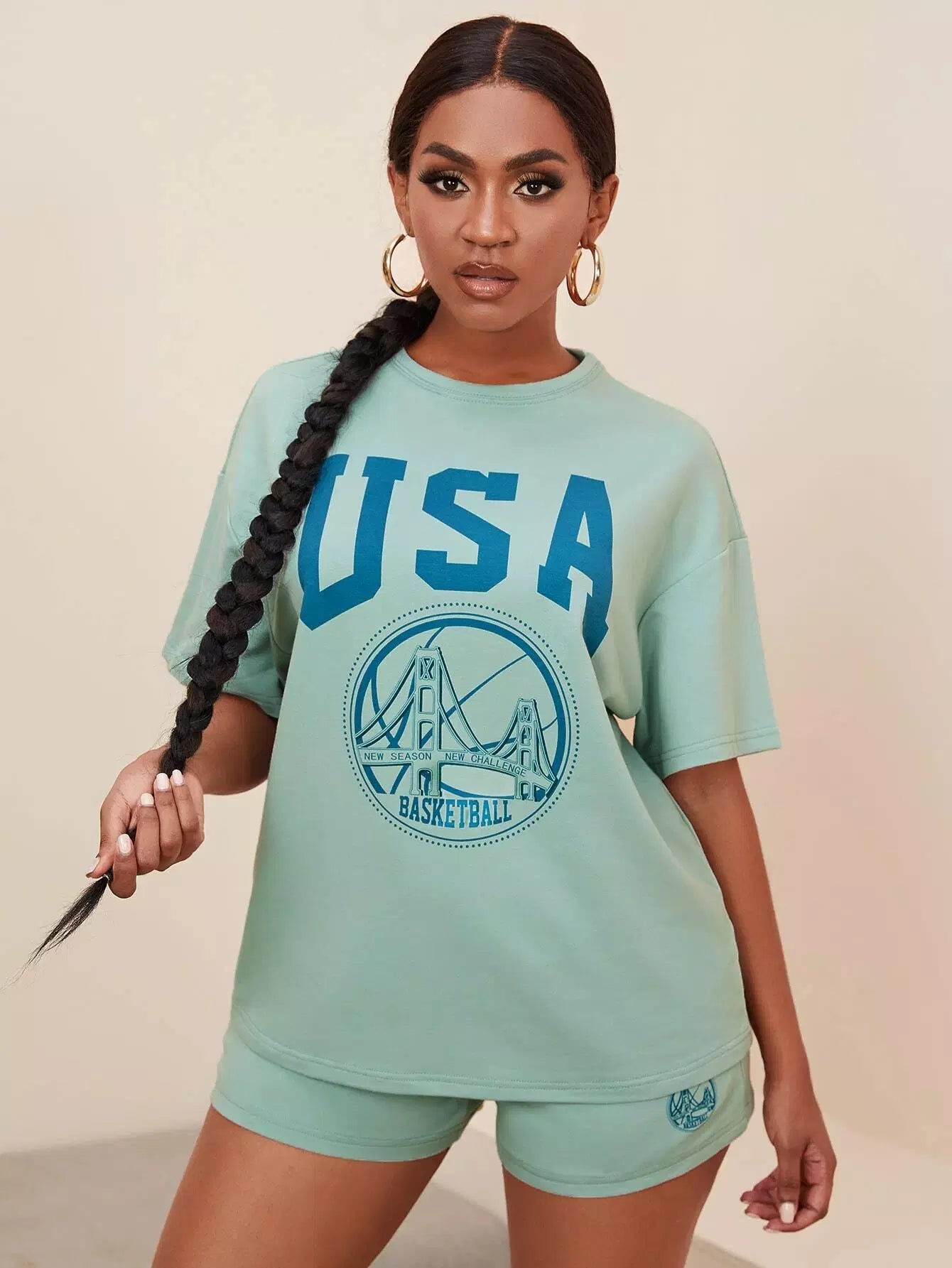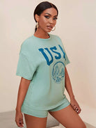 طقم بلوزة وشورت مطبوع عليه رسومات حروف وشورت
