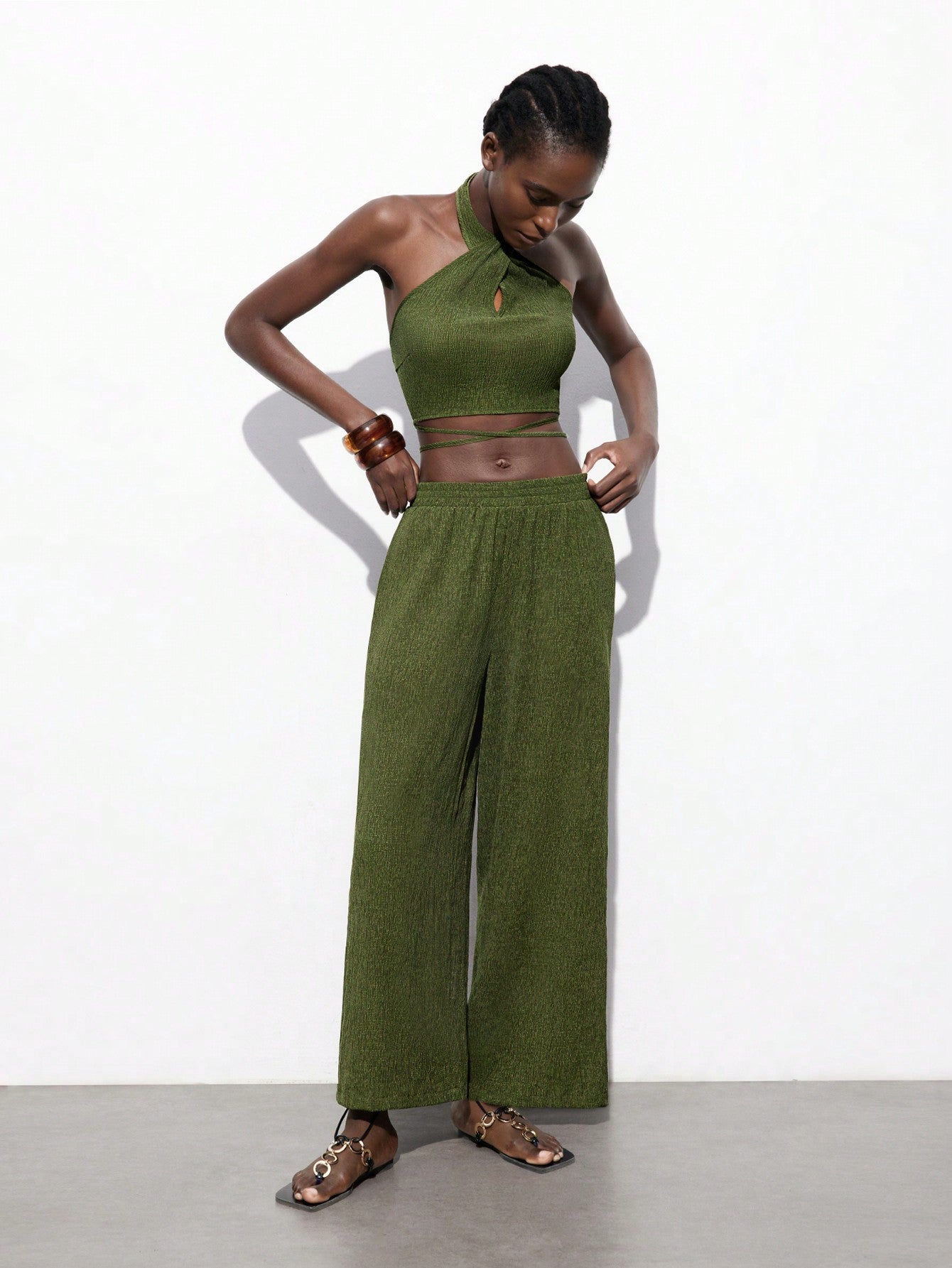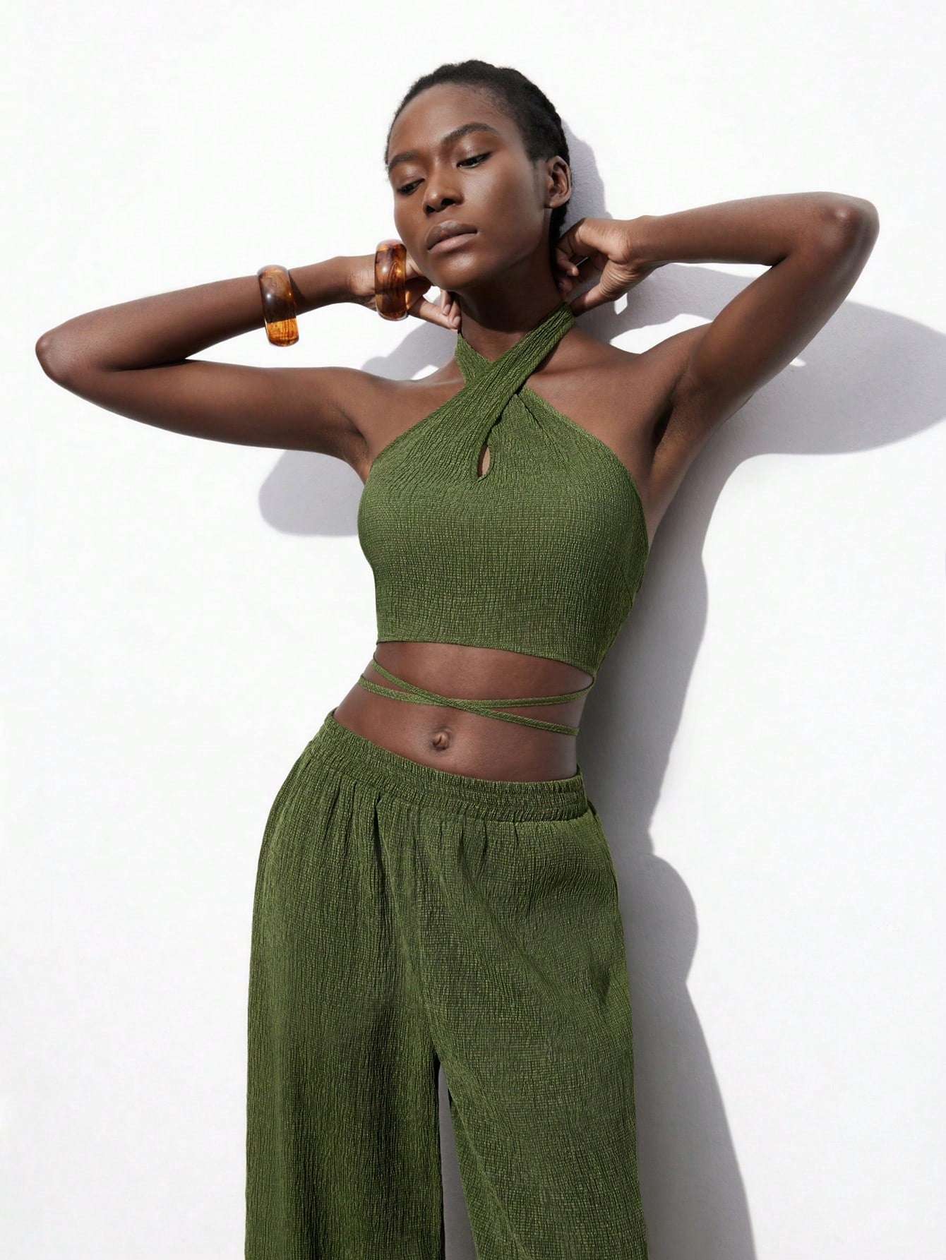 women Maija 2pcs/Set Olive Green Cruise Travel Outfit For Women