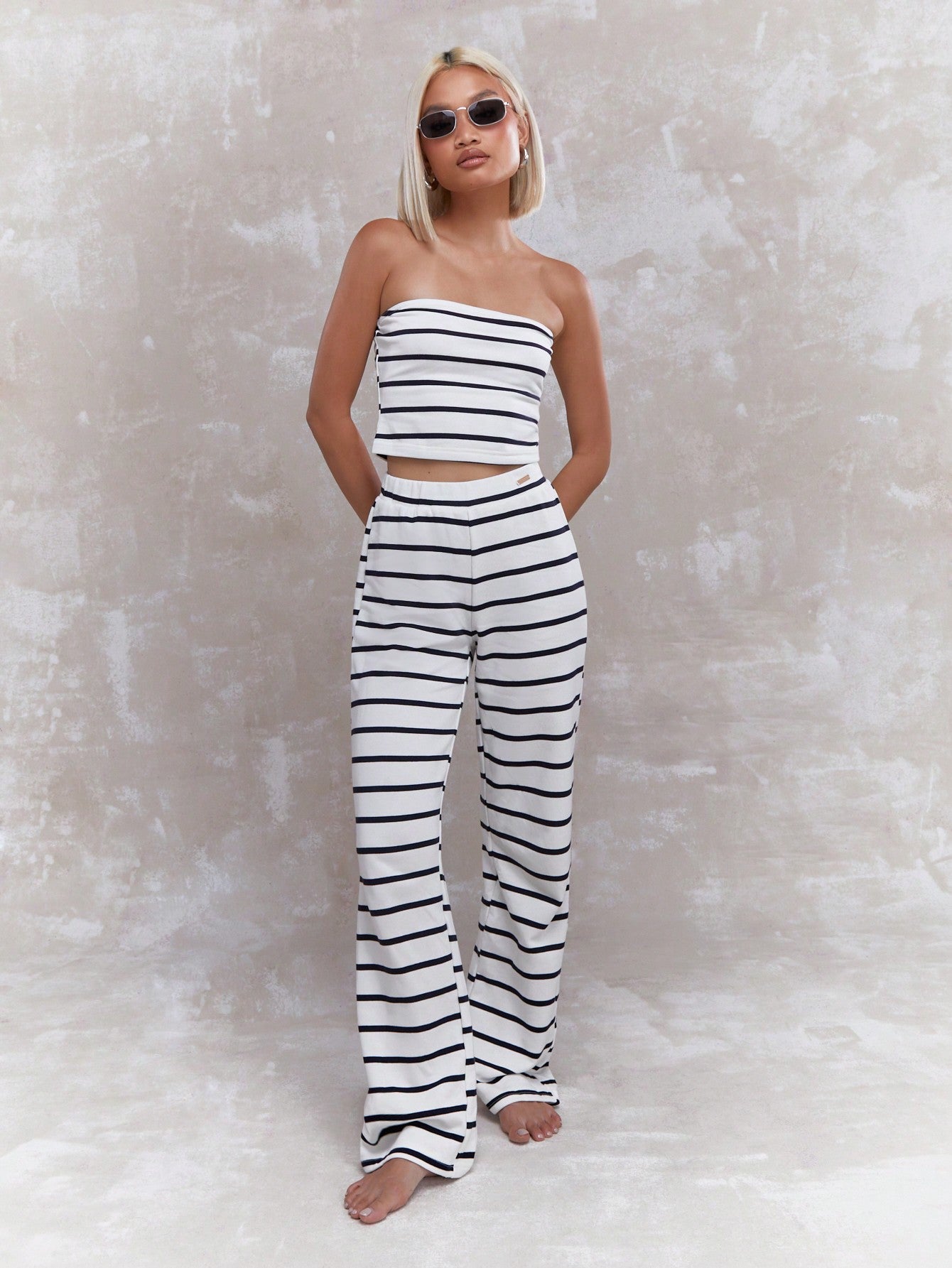 MISSGUIDED Striped Bandeau Top And Flared Pants Co-Ord Set