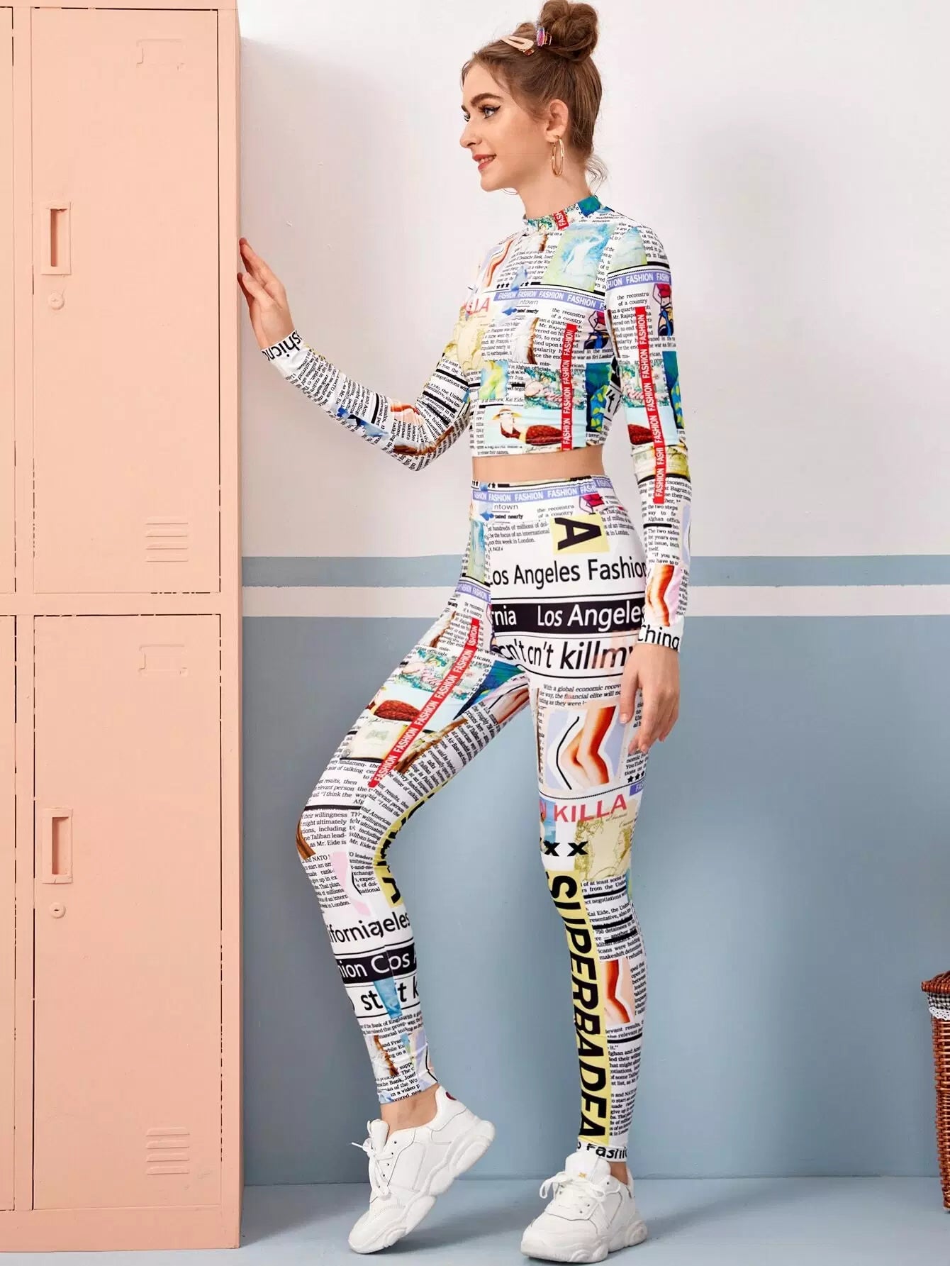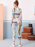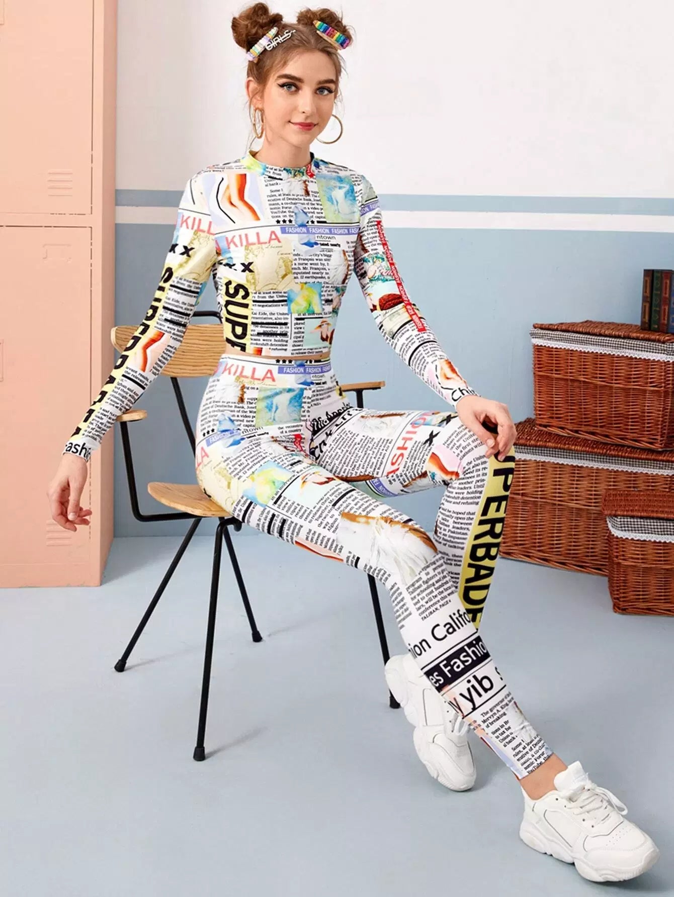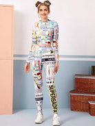 طقم بلوزة بطبعة فن البوب آرت برقبة وهمية وبنطال ضيق