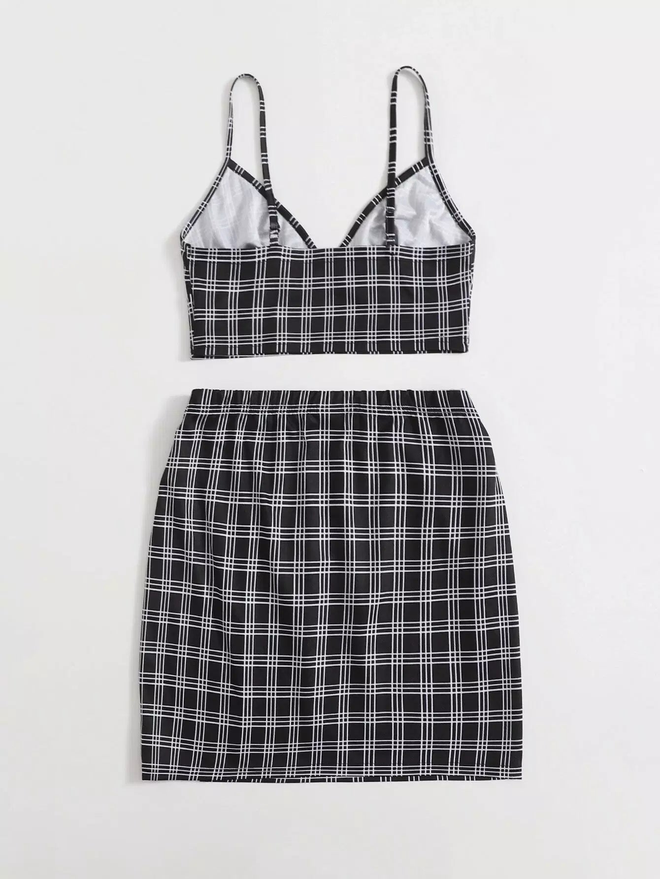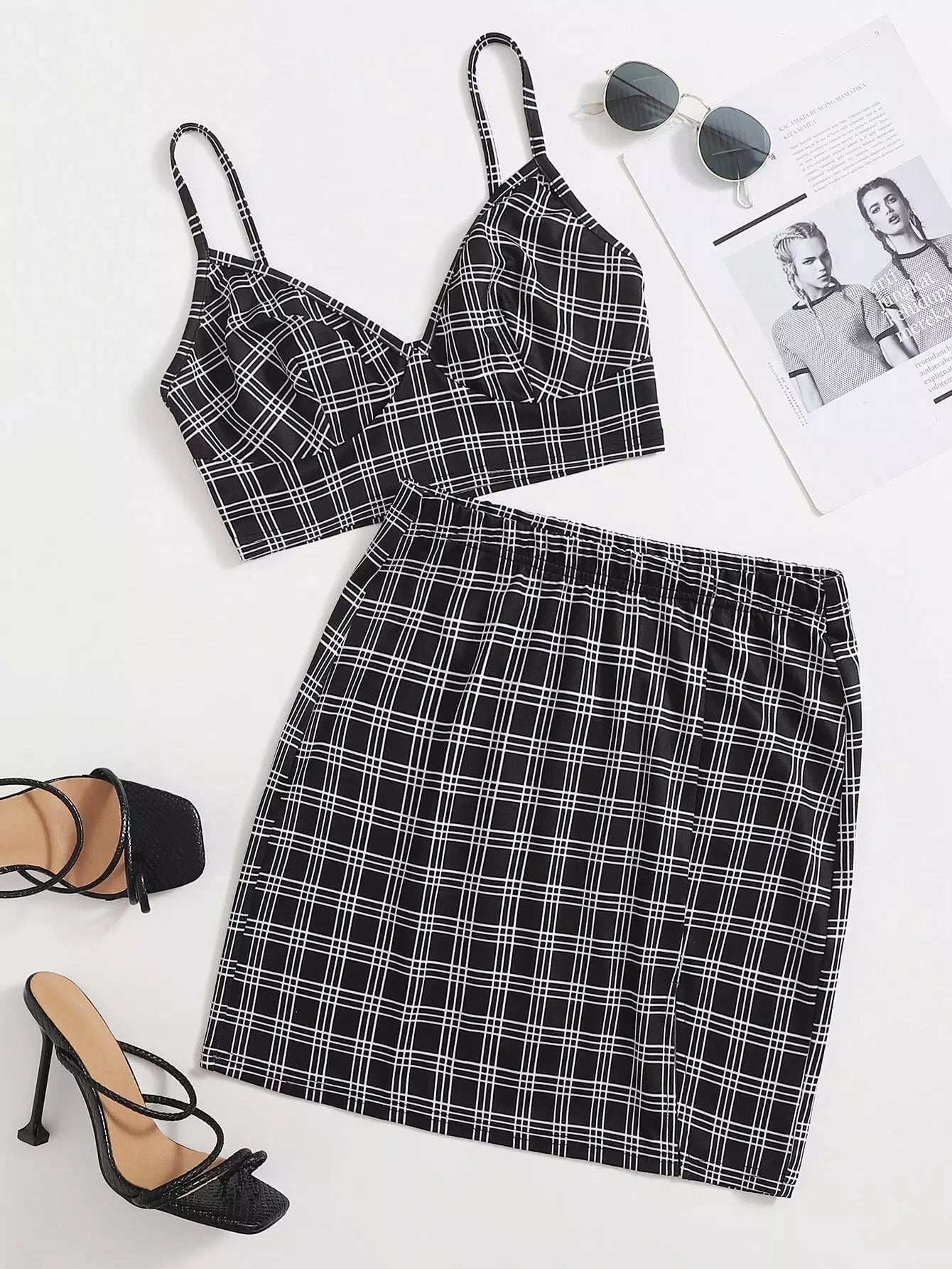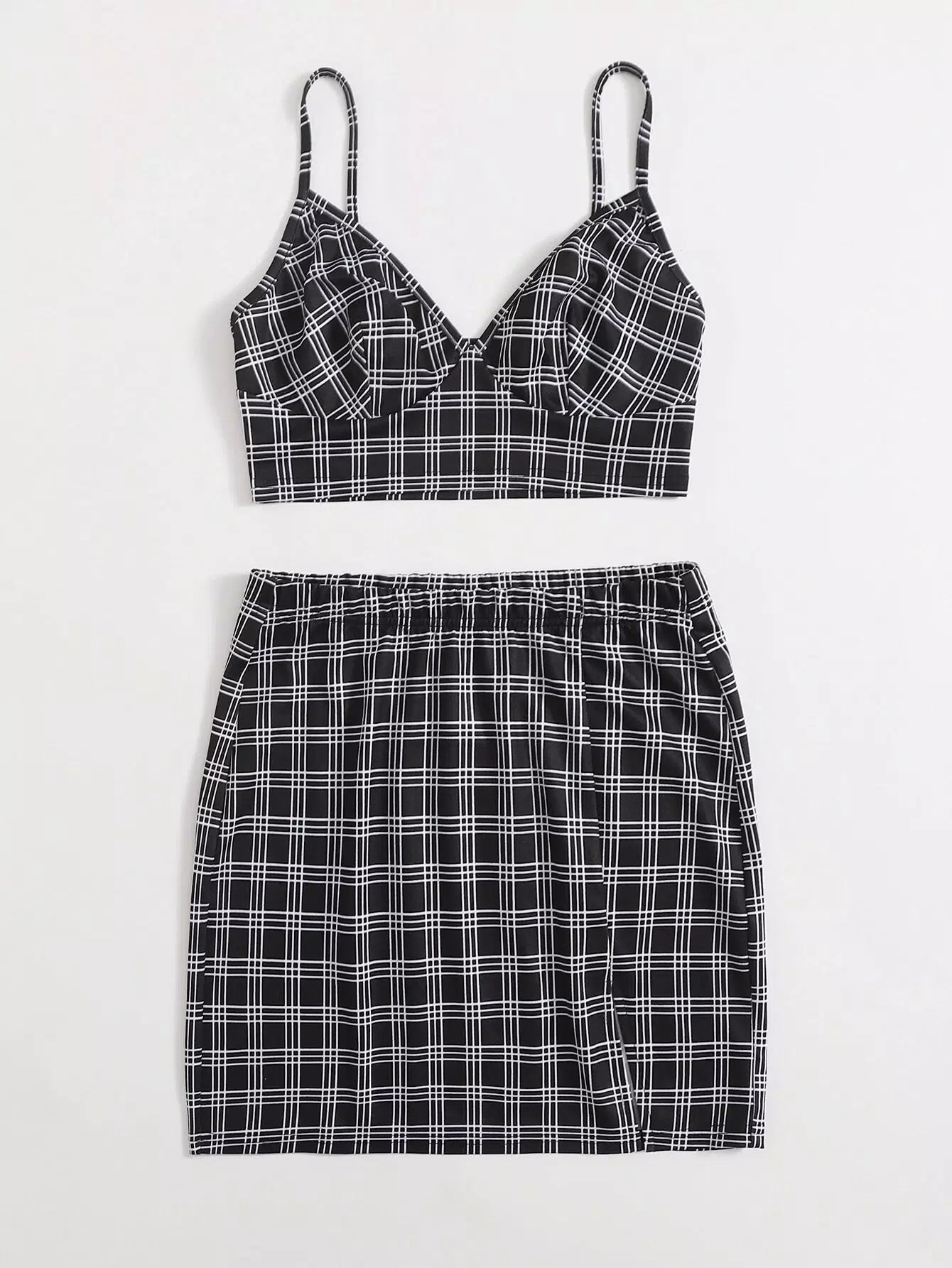 طقم بلوزة كامي منقوشة وتنورة بفتحة جانبية