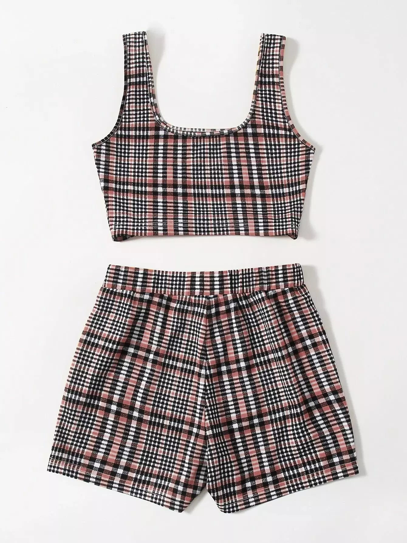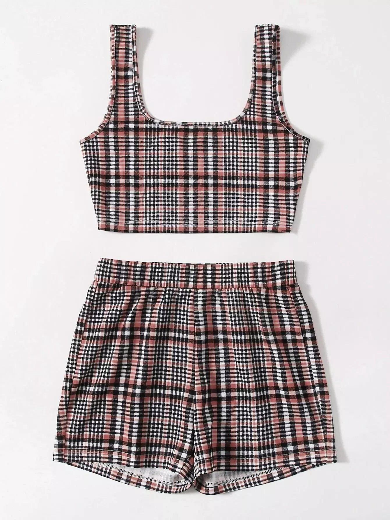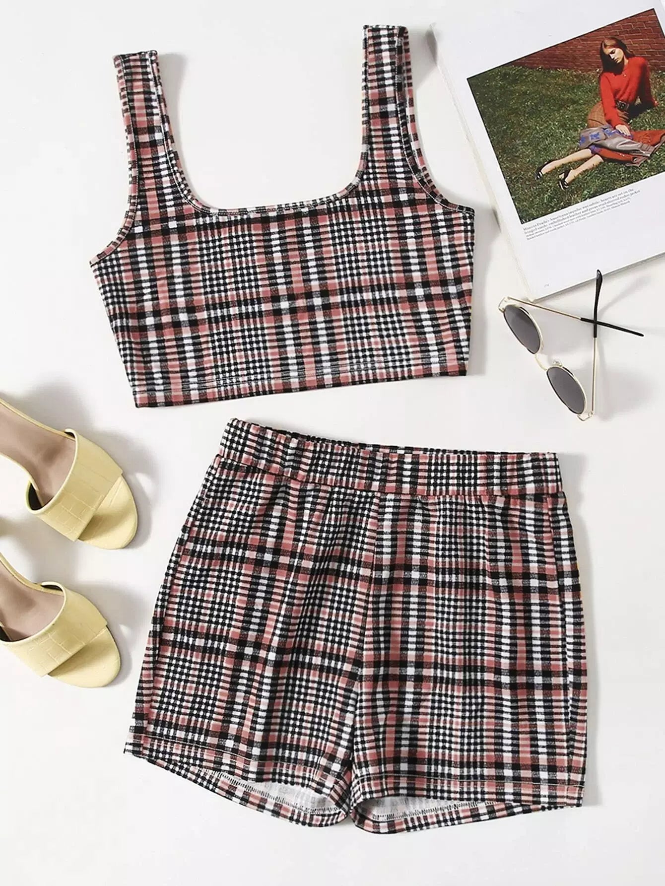 طقم تانك قصير منقوش وشورت بخصر مطاطي
