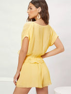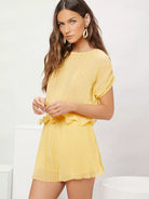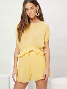 طقم بلوزة وشورت بحافة كشكش مطوي بطيات