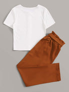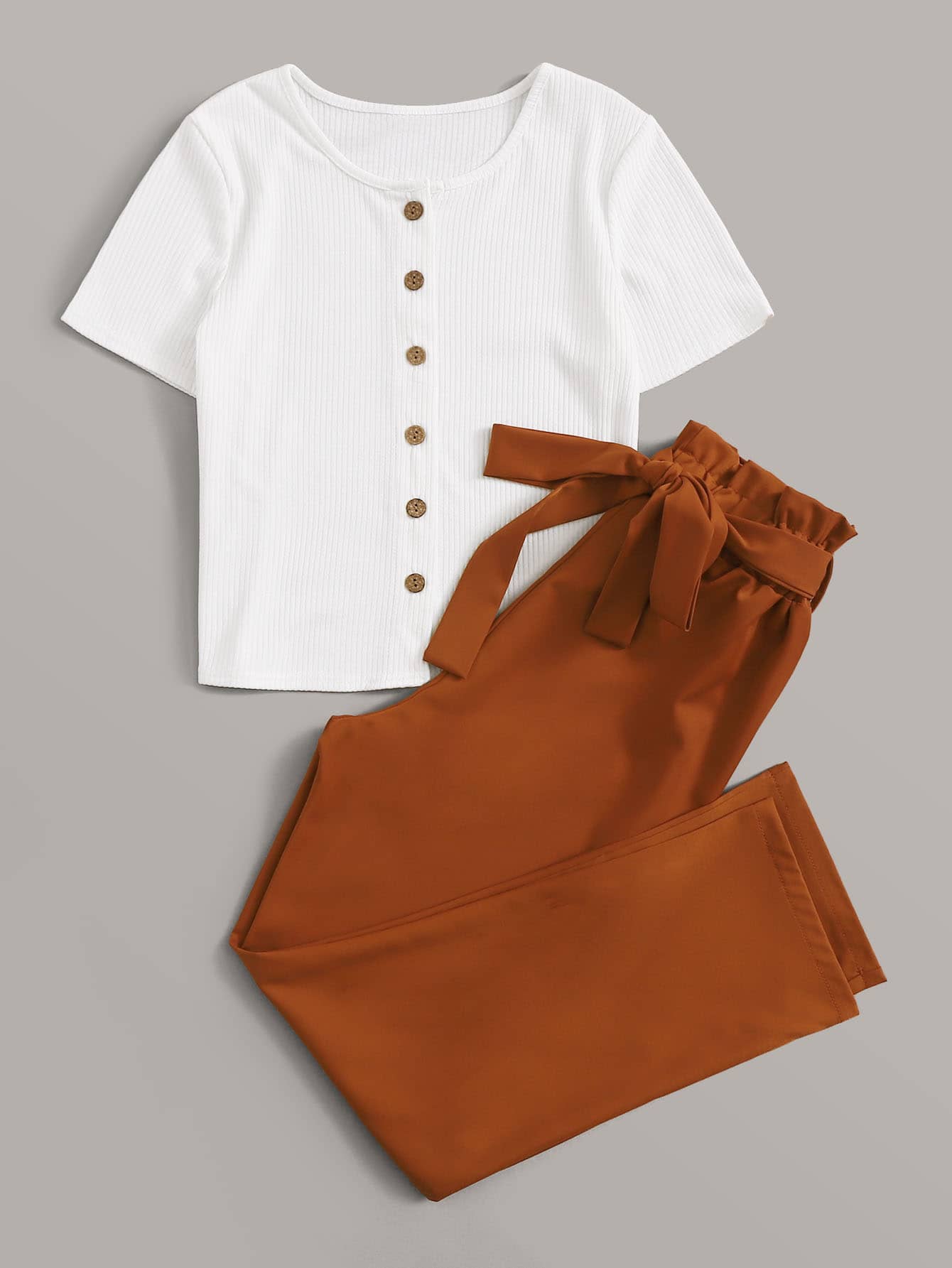 طقم تي شيرت وسروال بأزرار بدون حزام