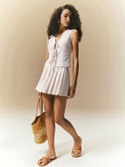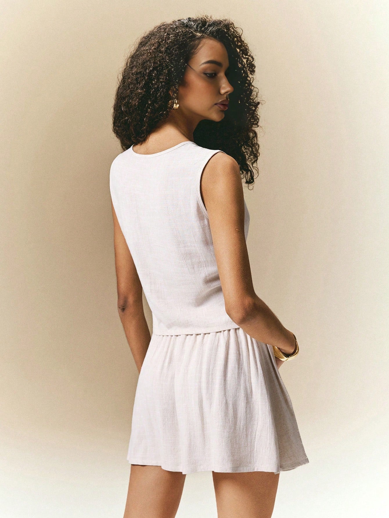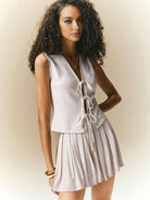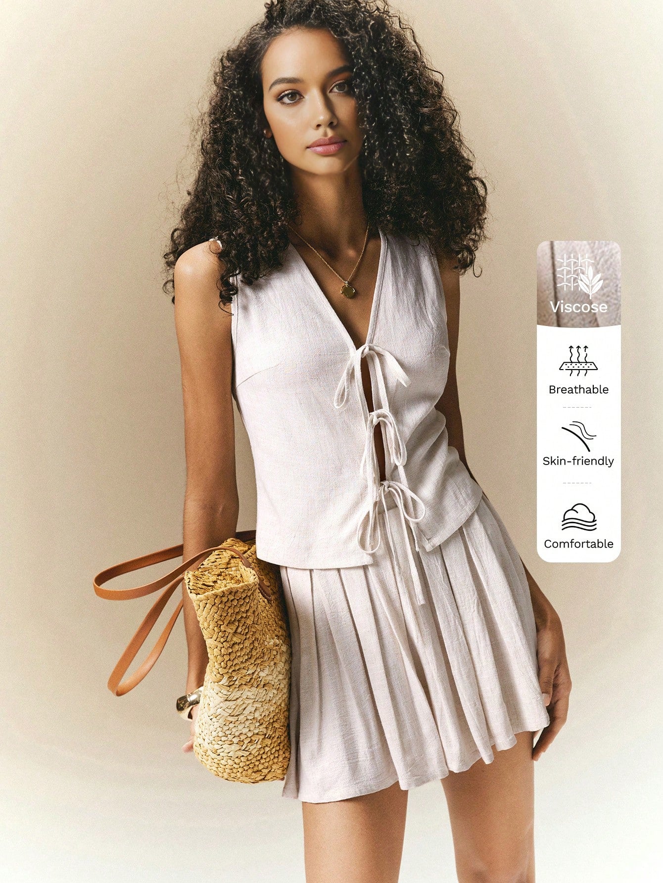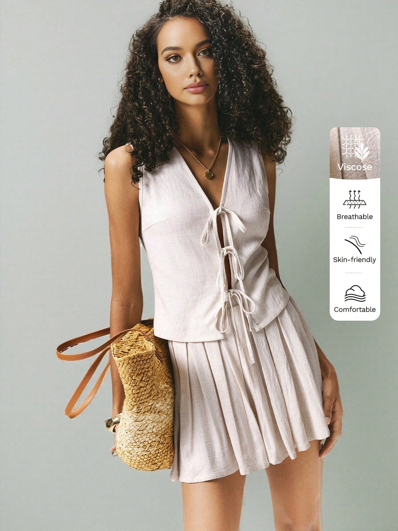 طقم تنورة وقميص Poï½selle الأنيق بدون مجهود برباط أمامي على شكل حرف V - مثالي لأيام الصيف الدافئة