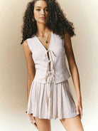 women Poï؟½selle Effortlessly Chic Tie Front V-Neck Top And Skirt Set - Perfect For Warm Summer Days