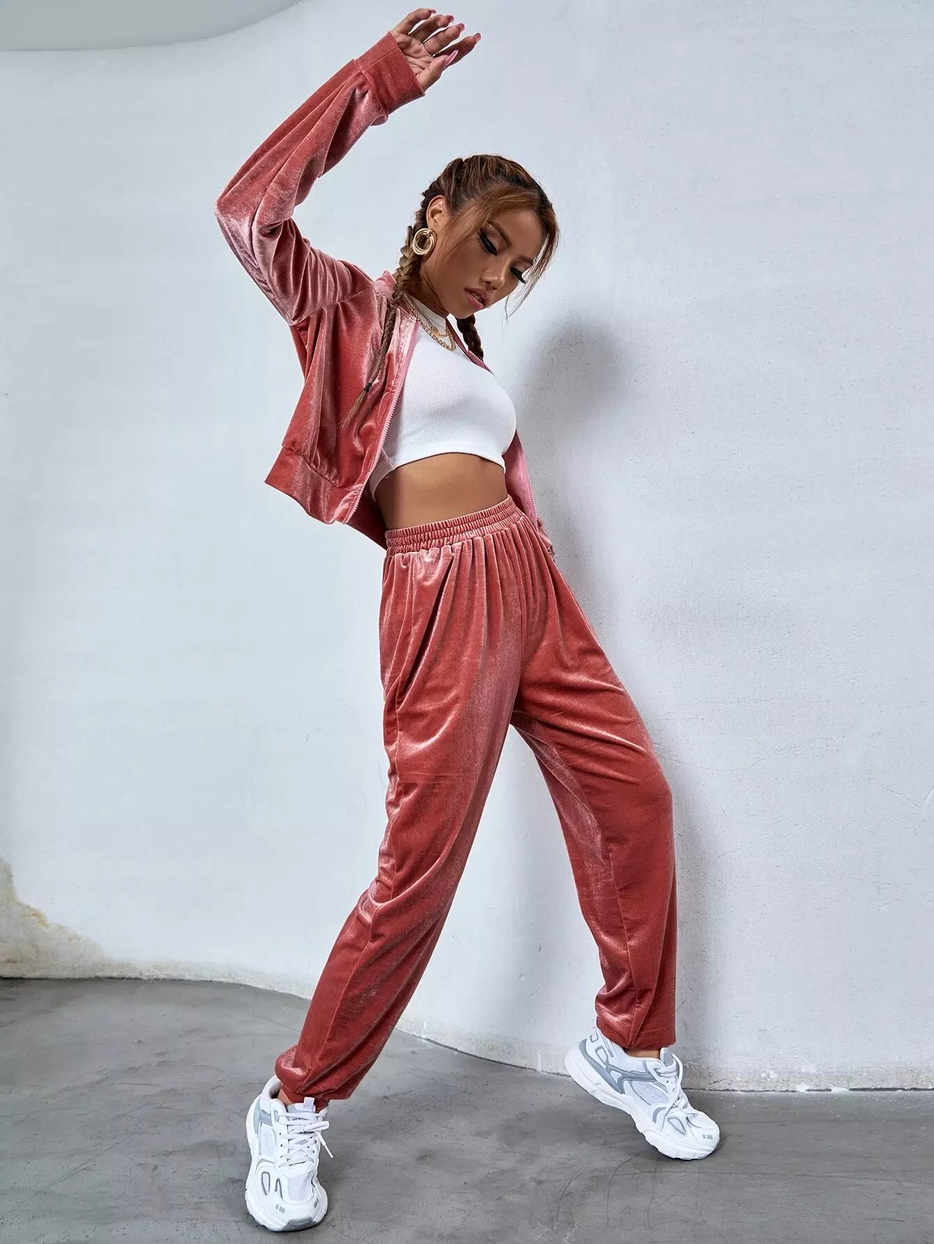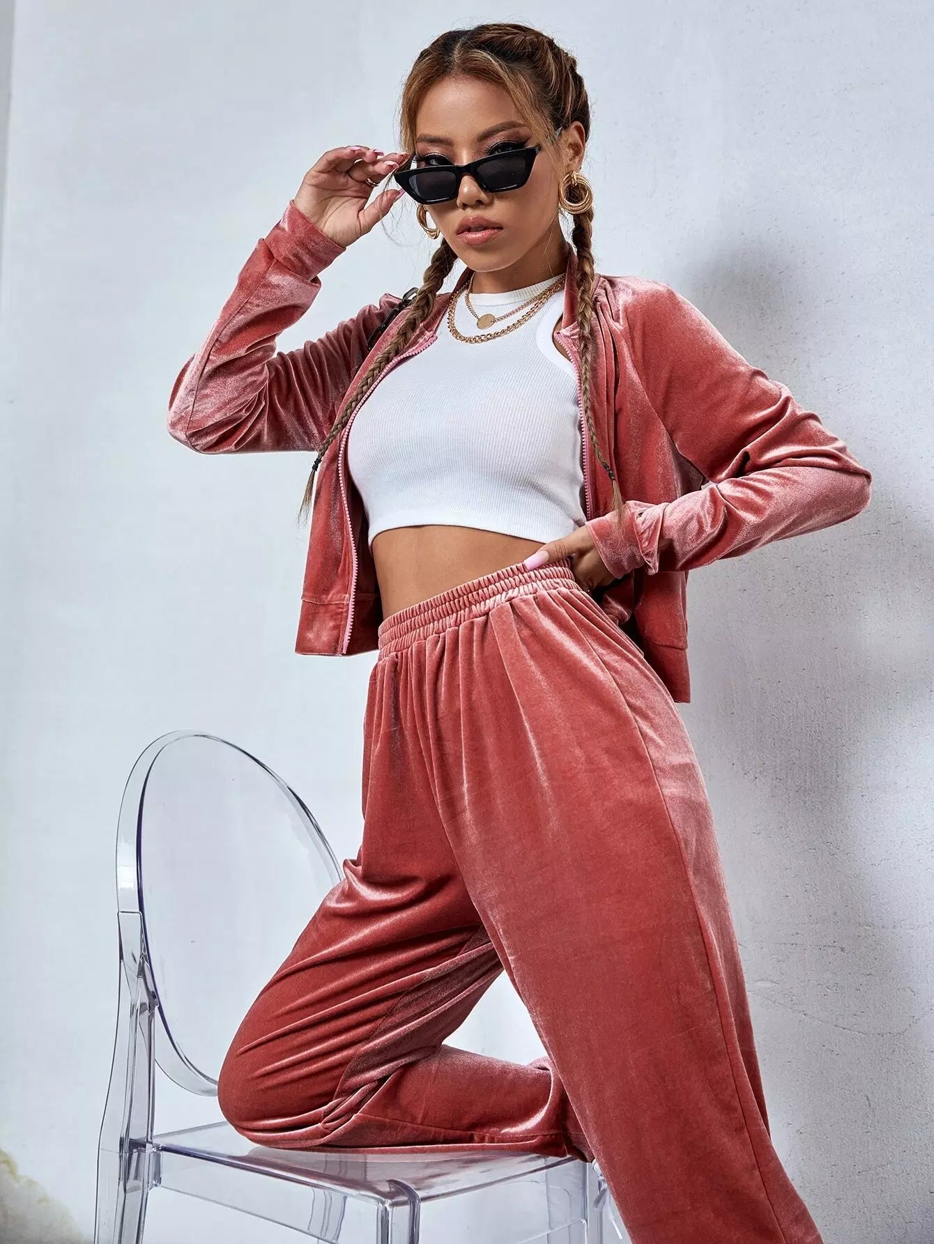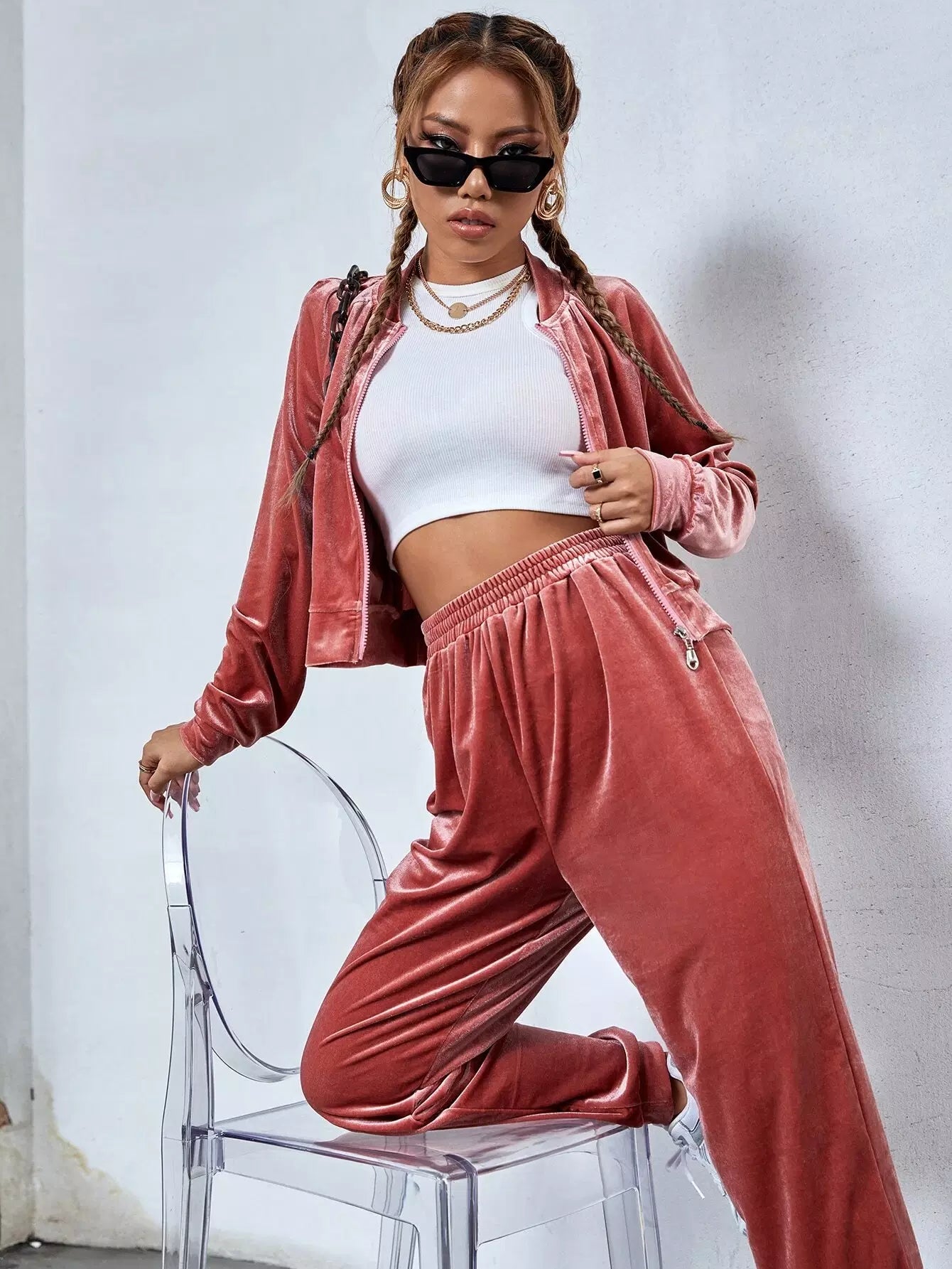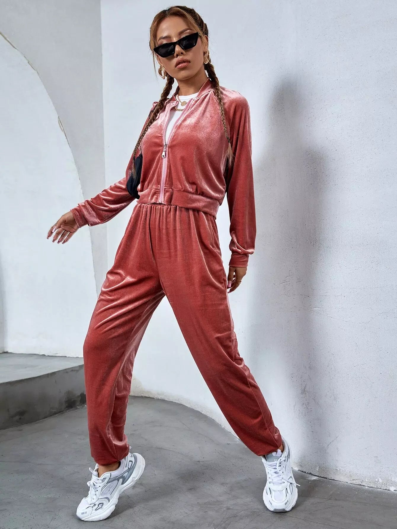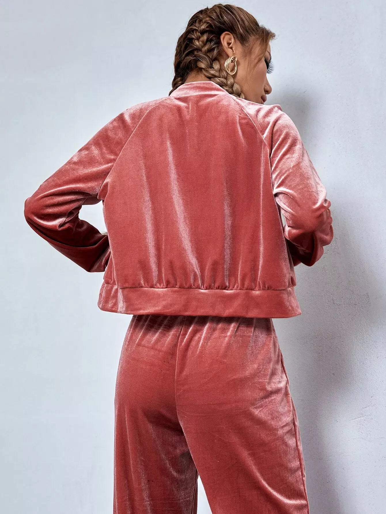 جاكيت وبنطلون مخملي بأكمام راجلان مخملي