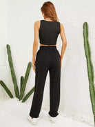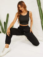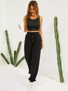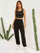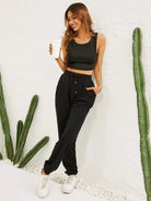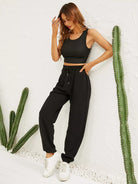 تانك قصير محبوك مضلّع وسروال رياضي بخصر مربوط