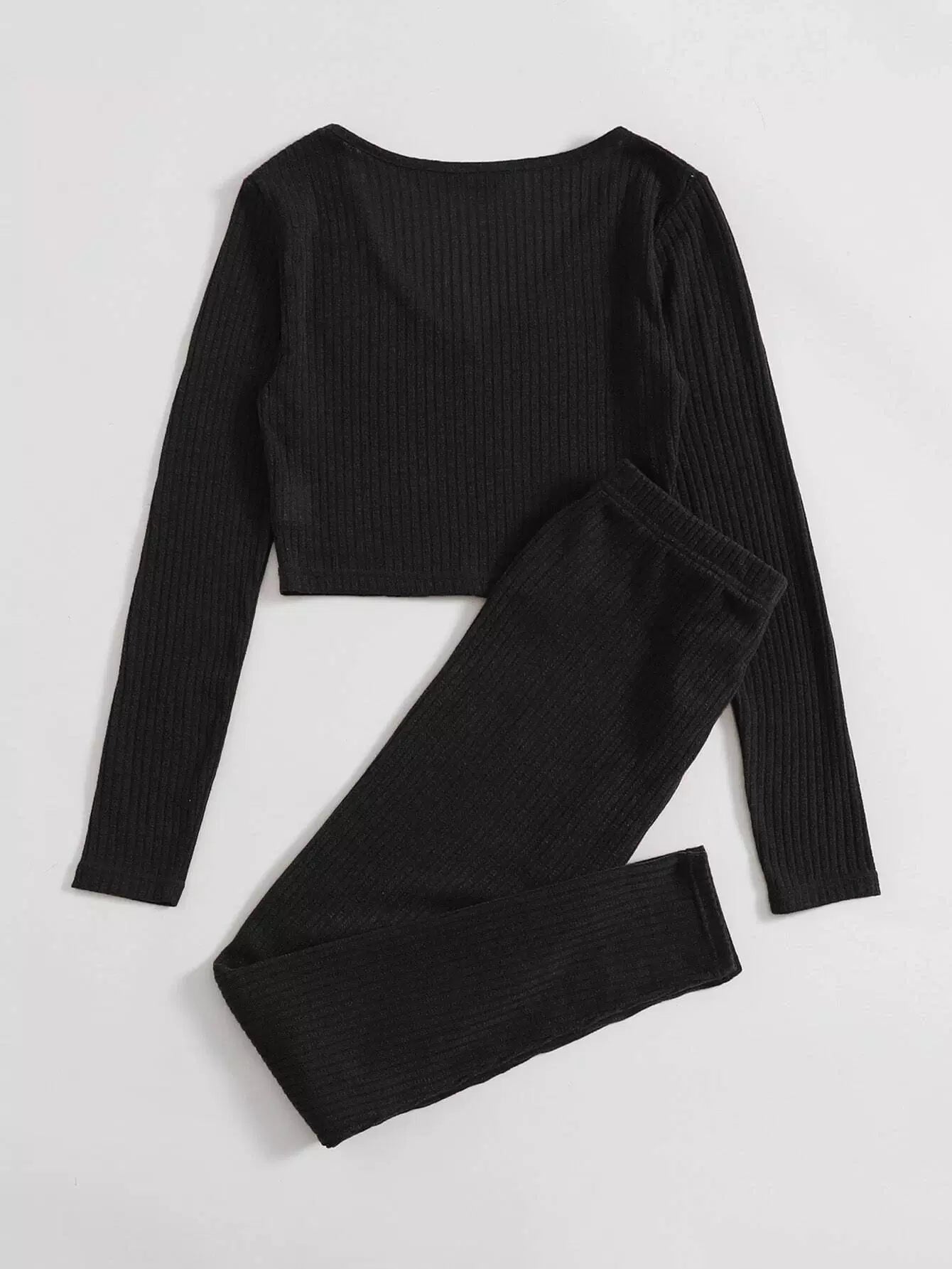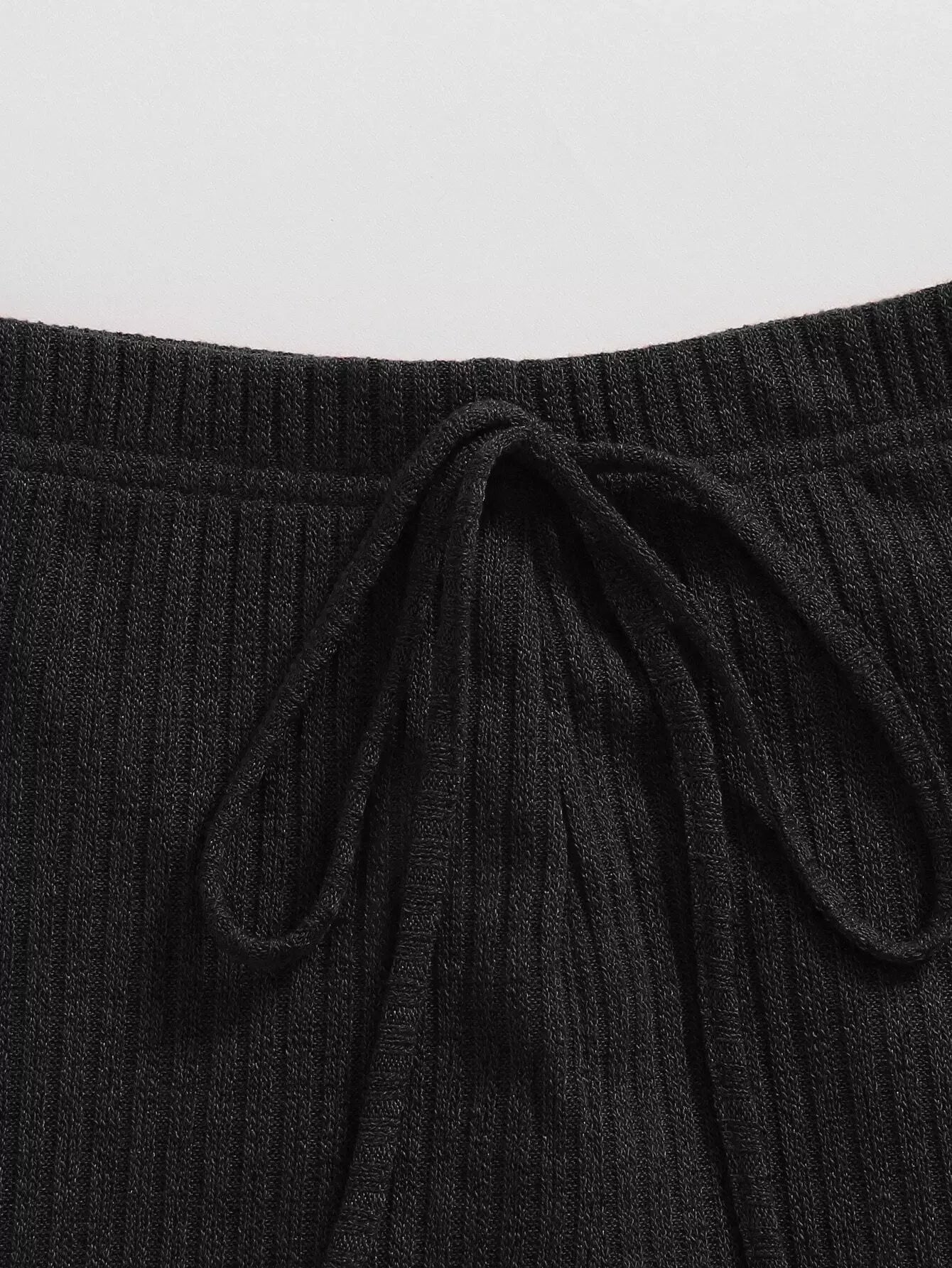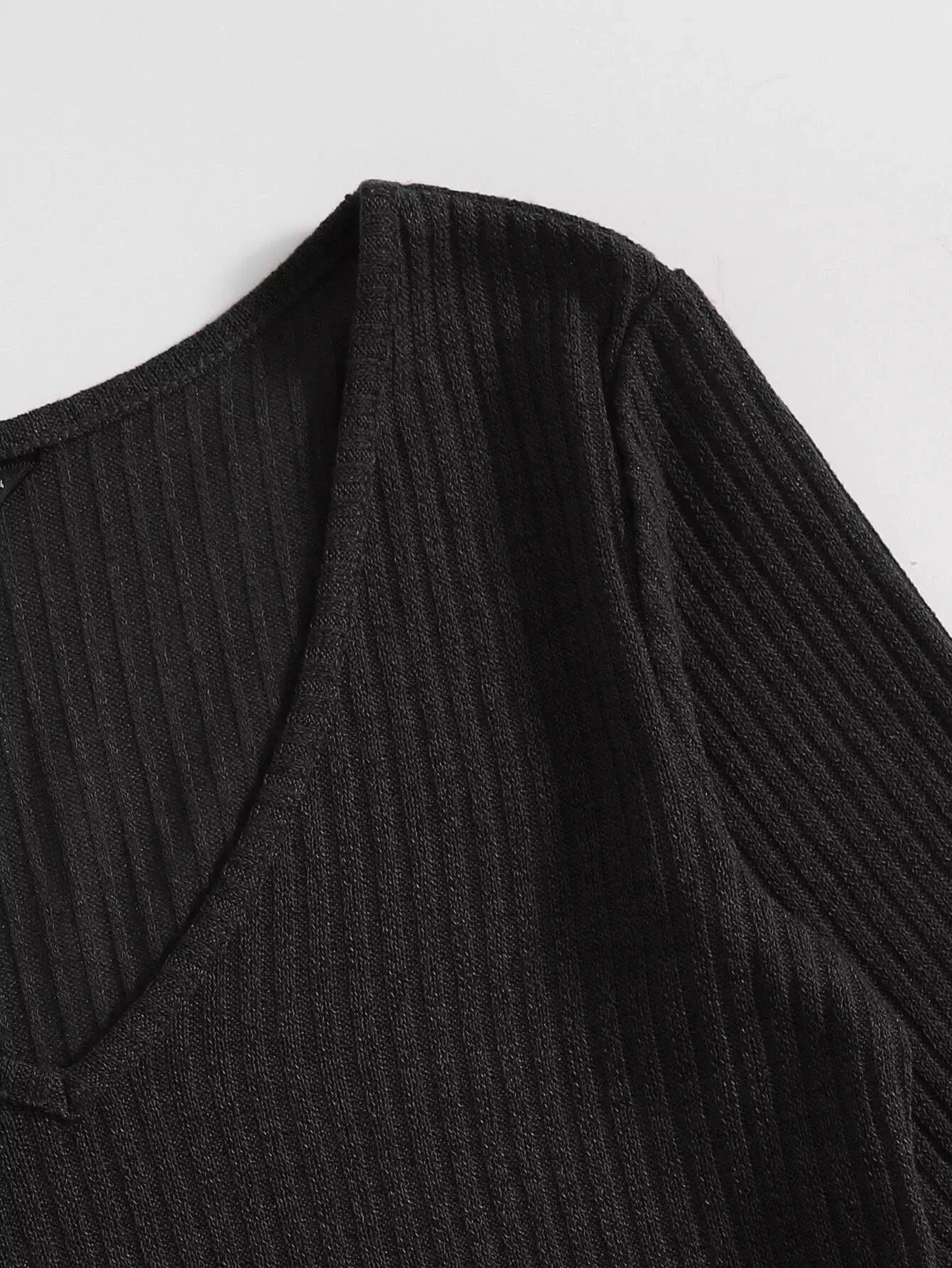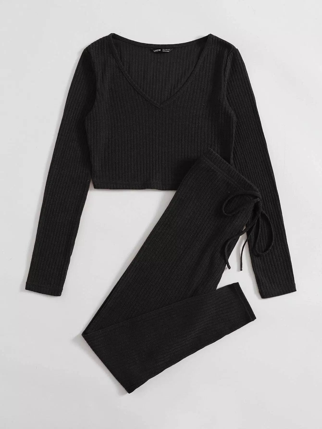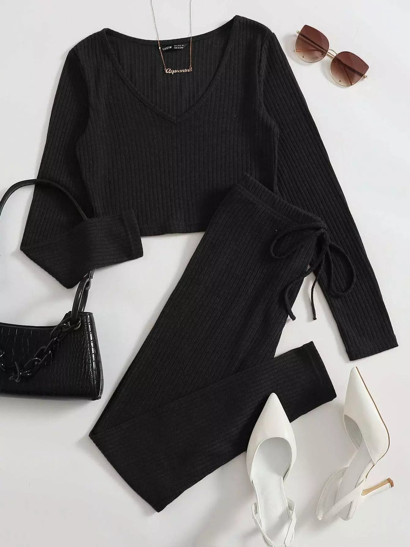 طقم تي شيرت برقبة على شكل حرف V ورباط ضيق مضلع