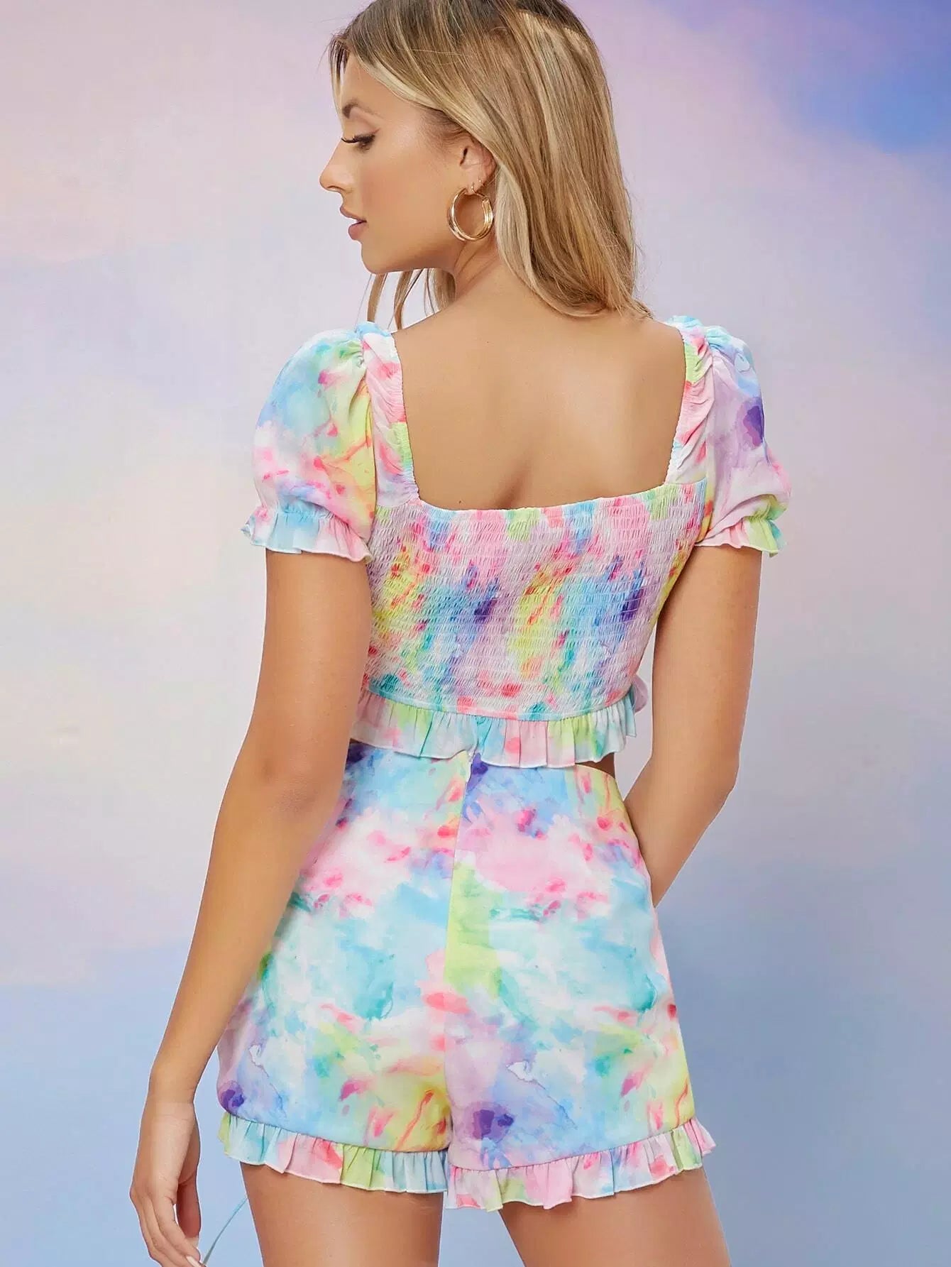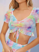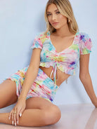 طقم بلوزة قصيرة مكشكشة مكشكشة وشورت قصير مكشكش